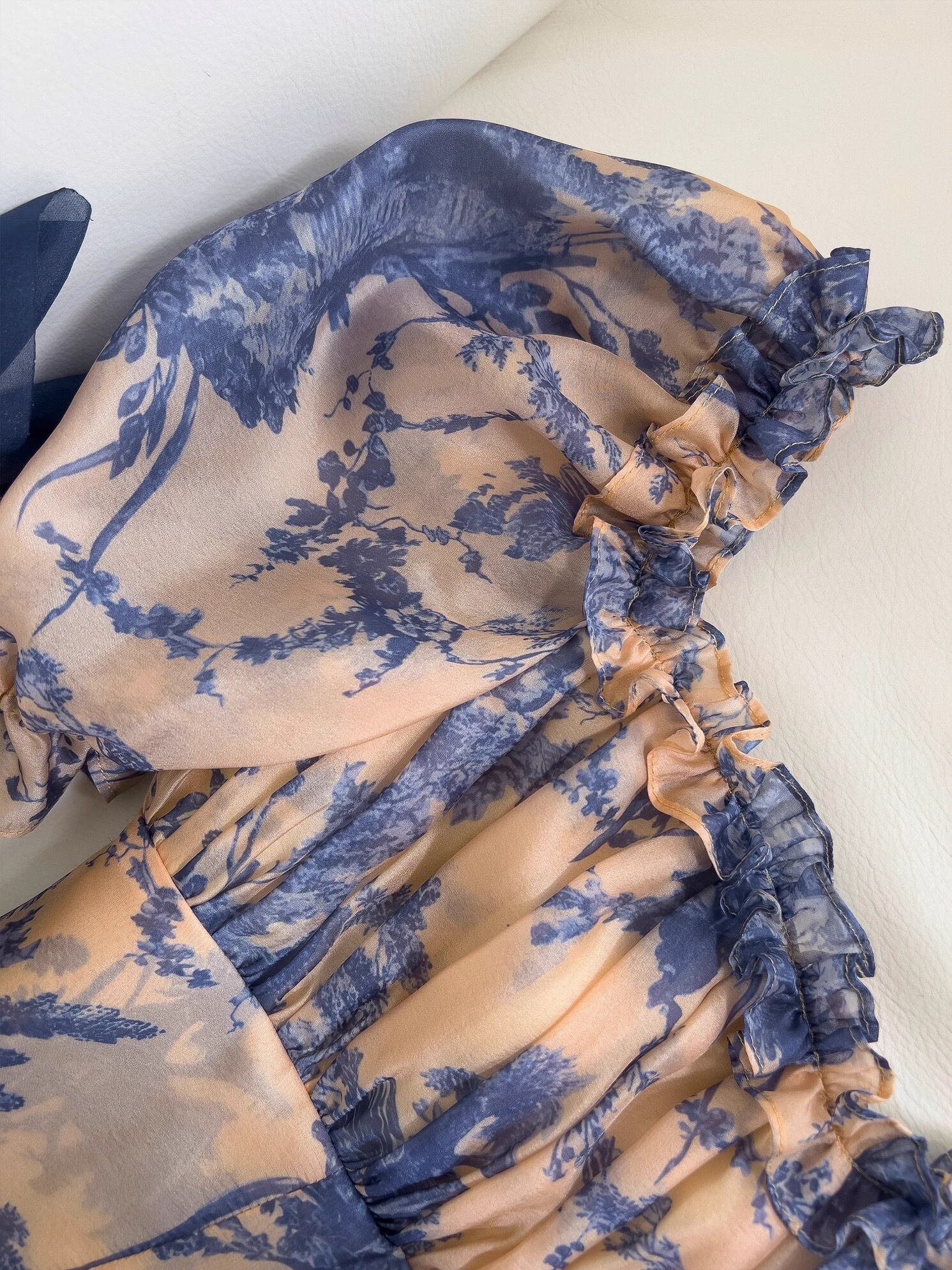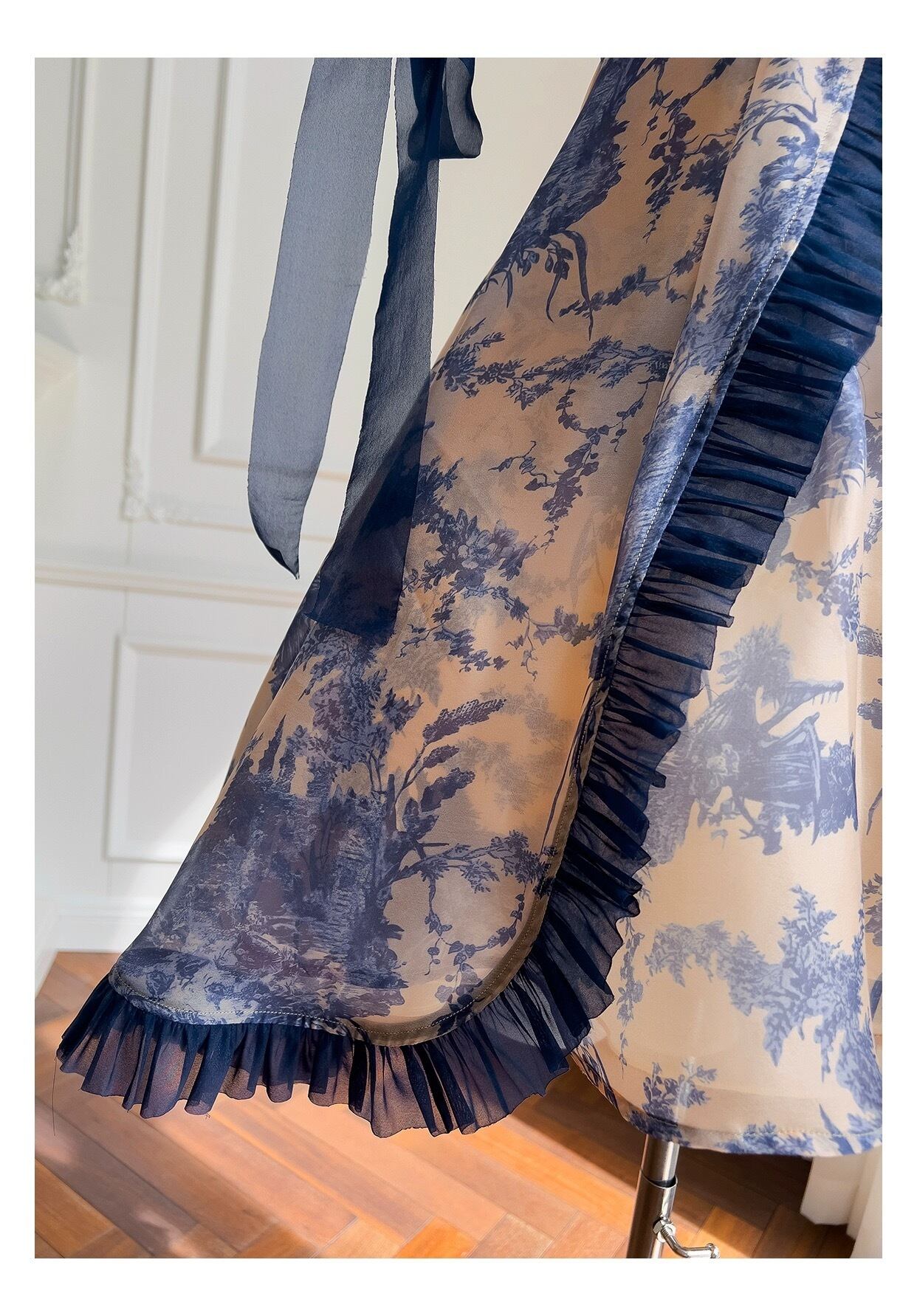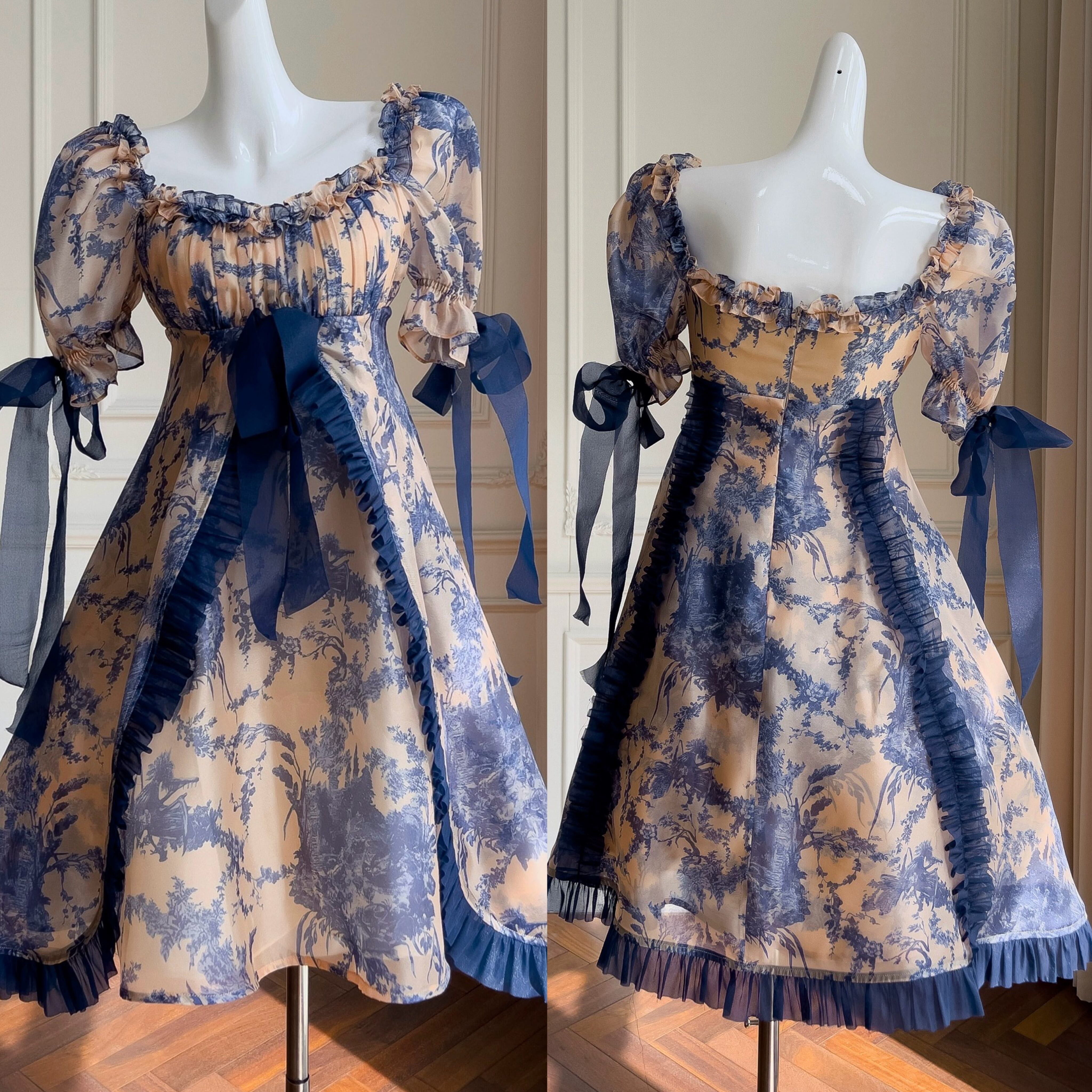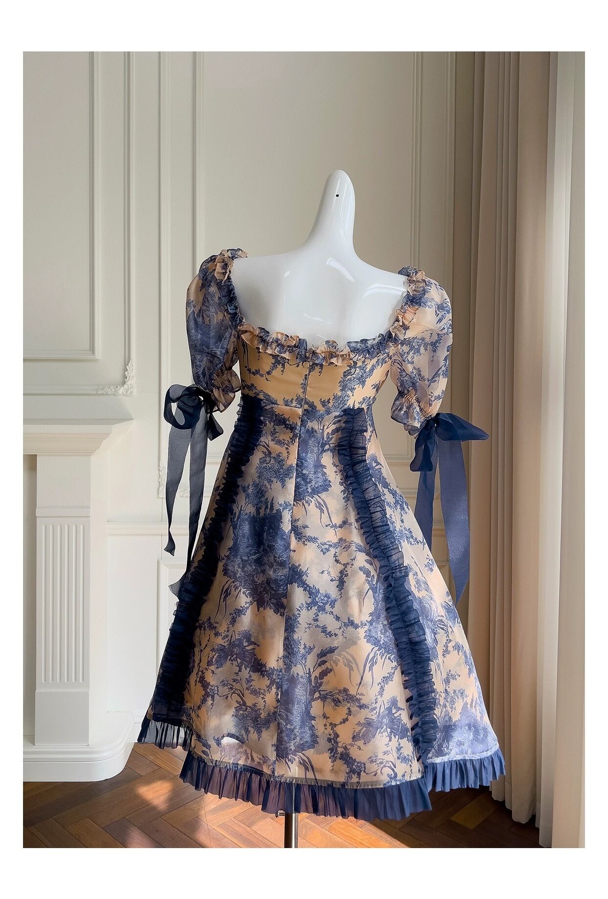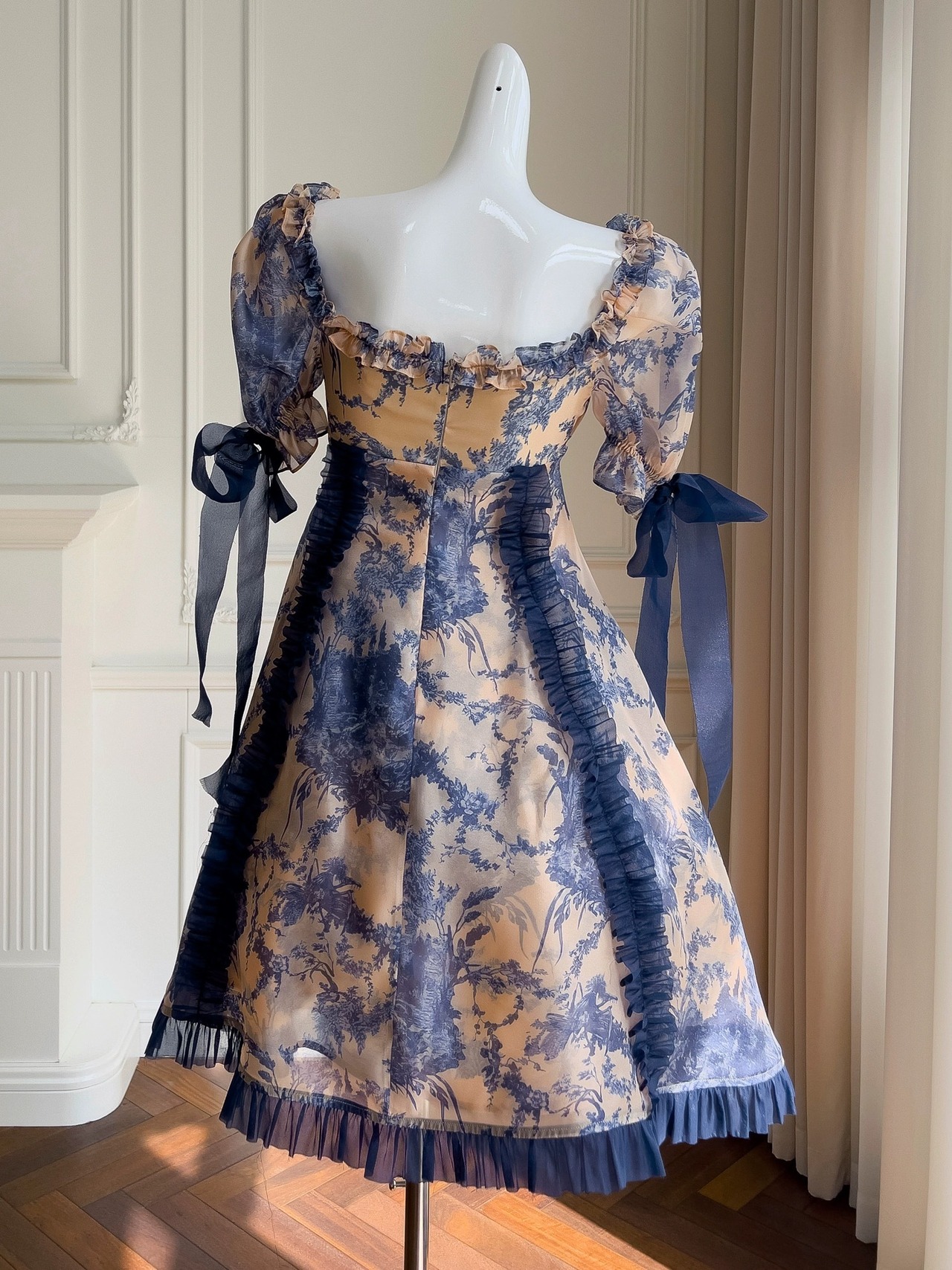 ネイビー クラシック リボン ワンピース ガーリー 花柄 フラワー