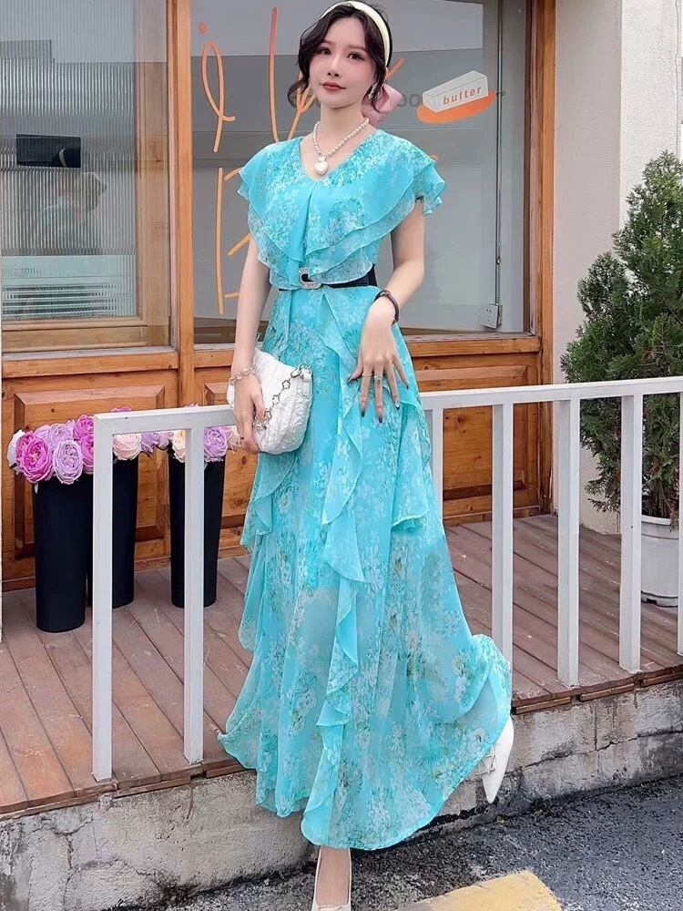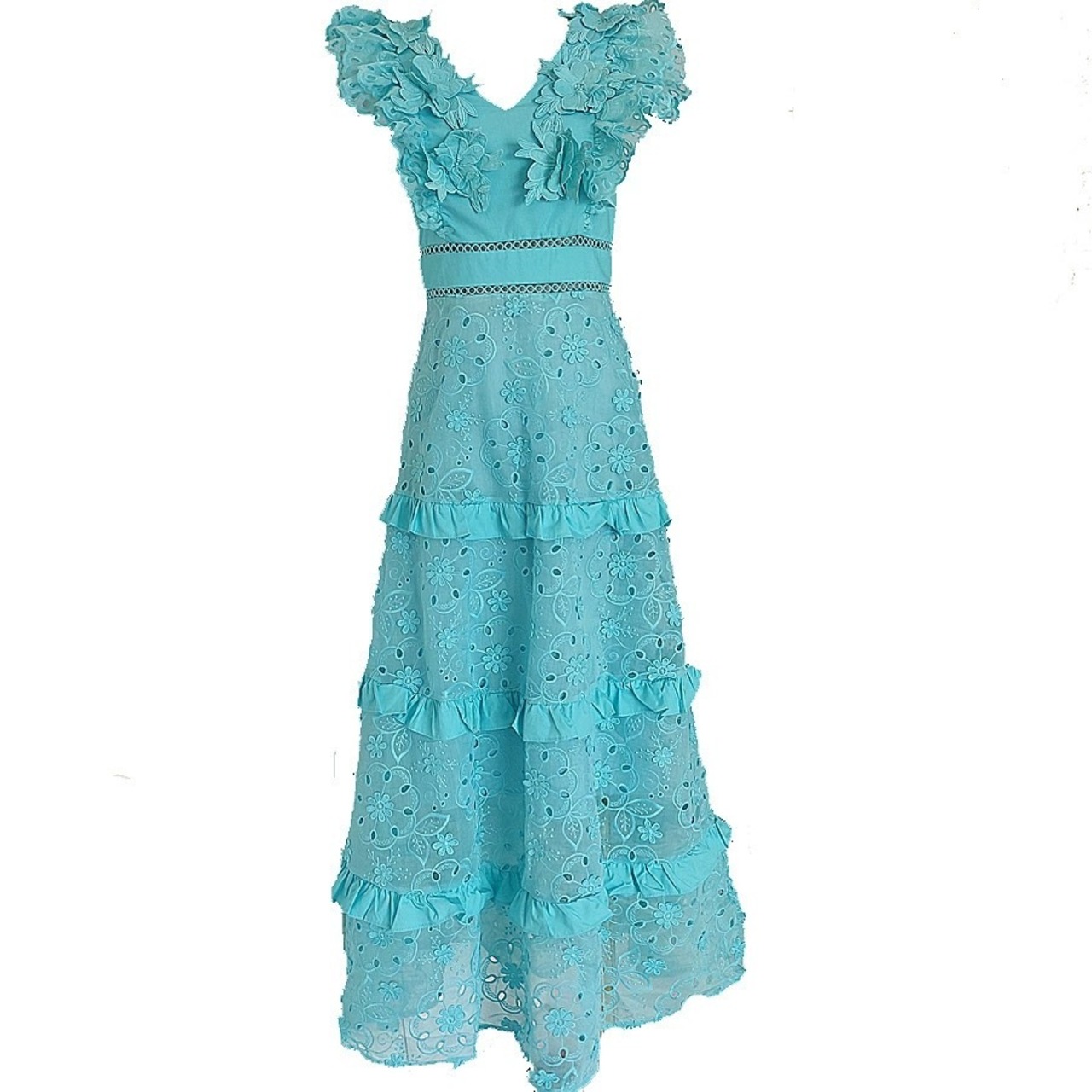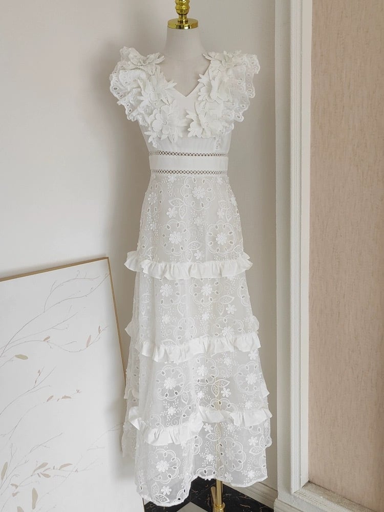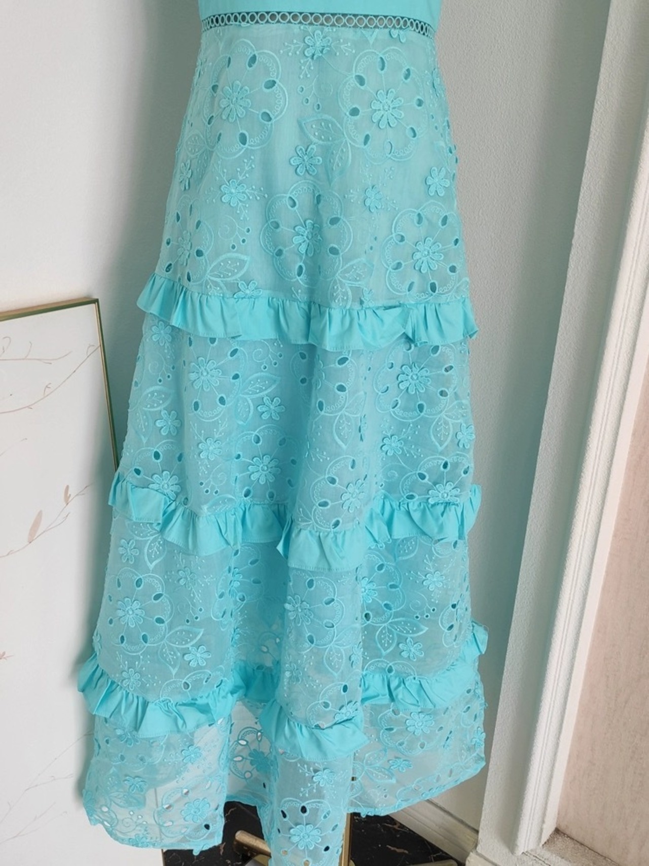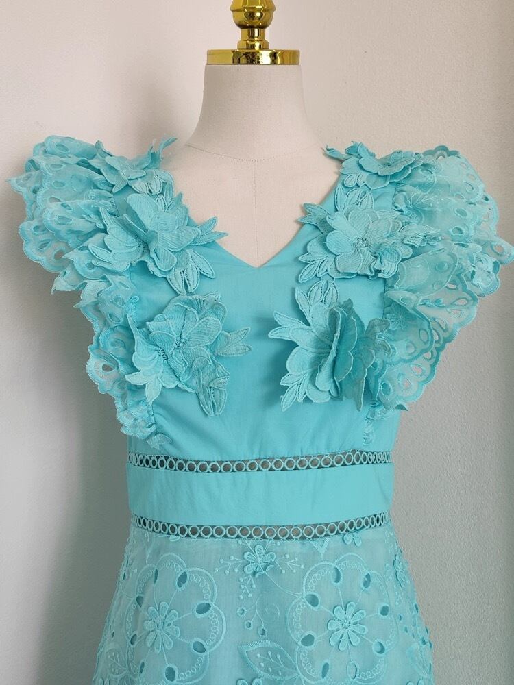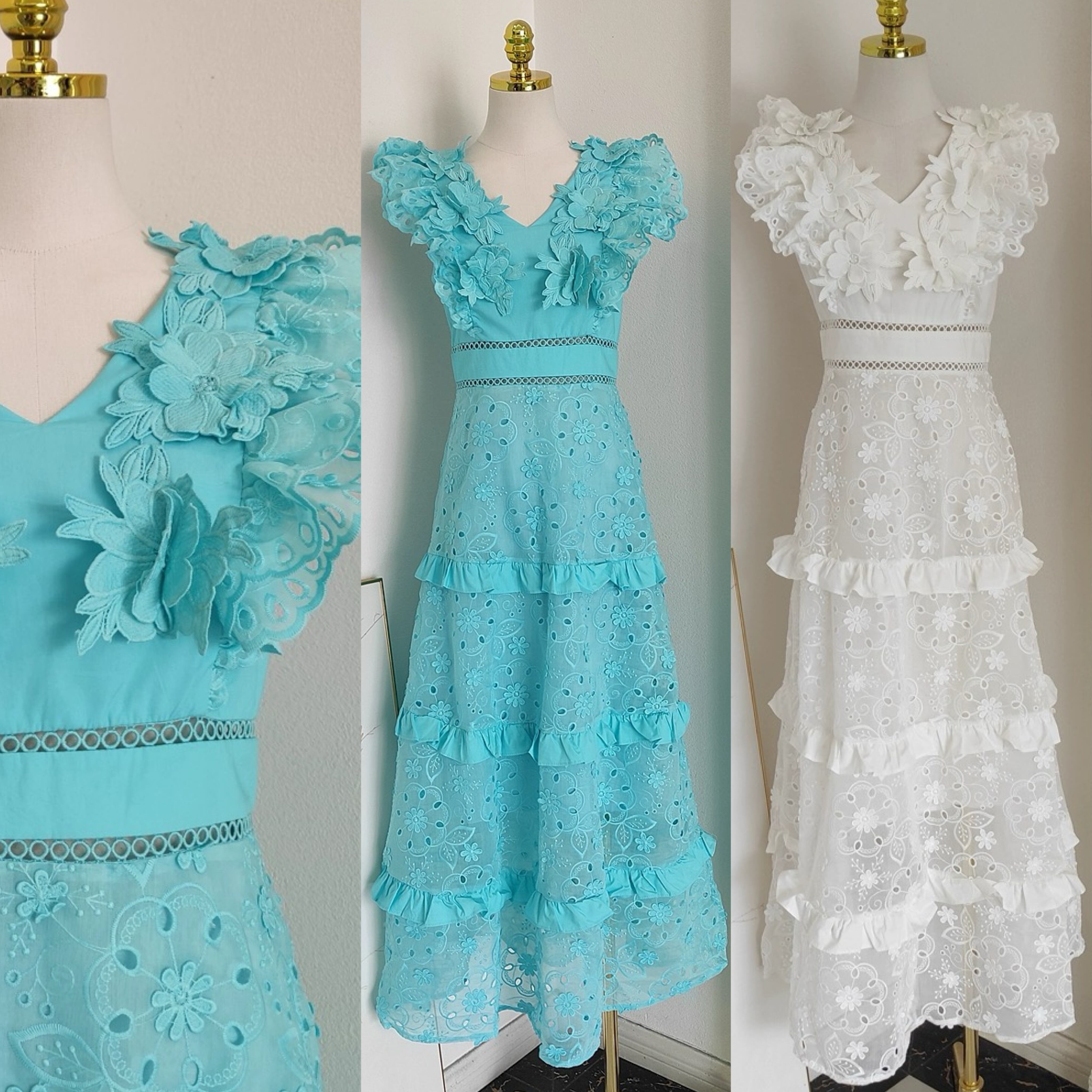 白 フラワー 花柄 水色 爽やか ワンピース デコレーション