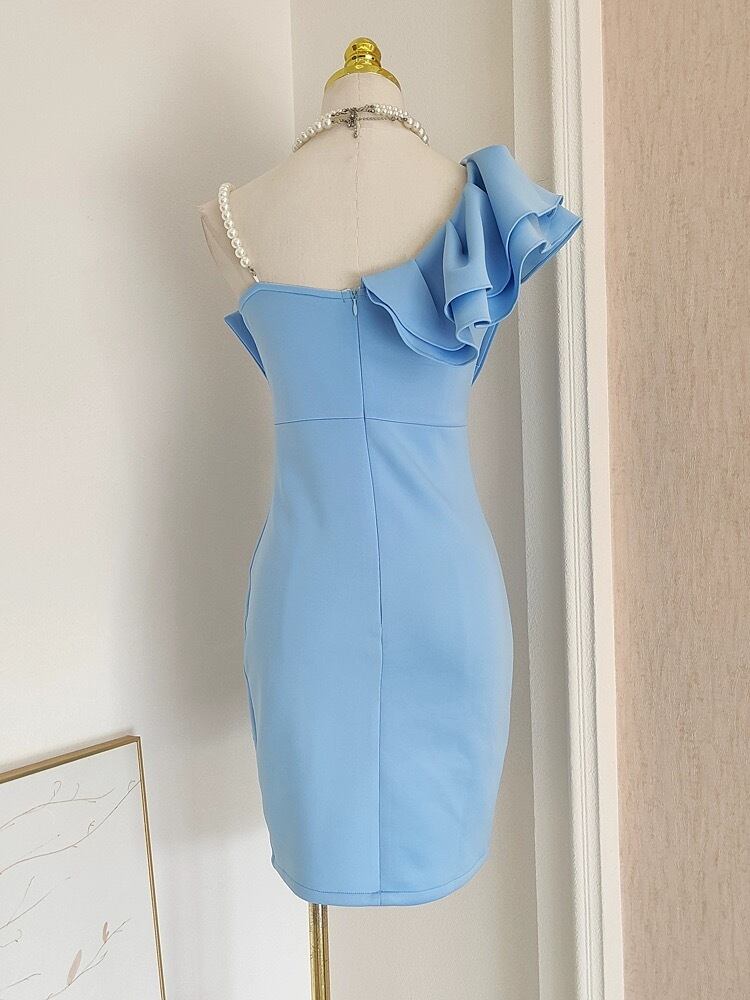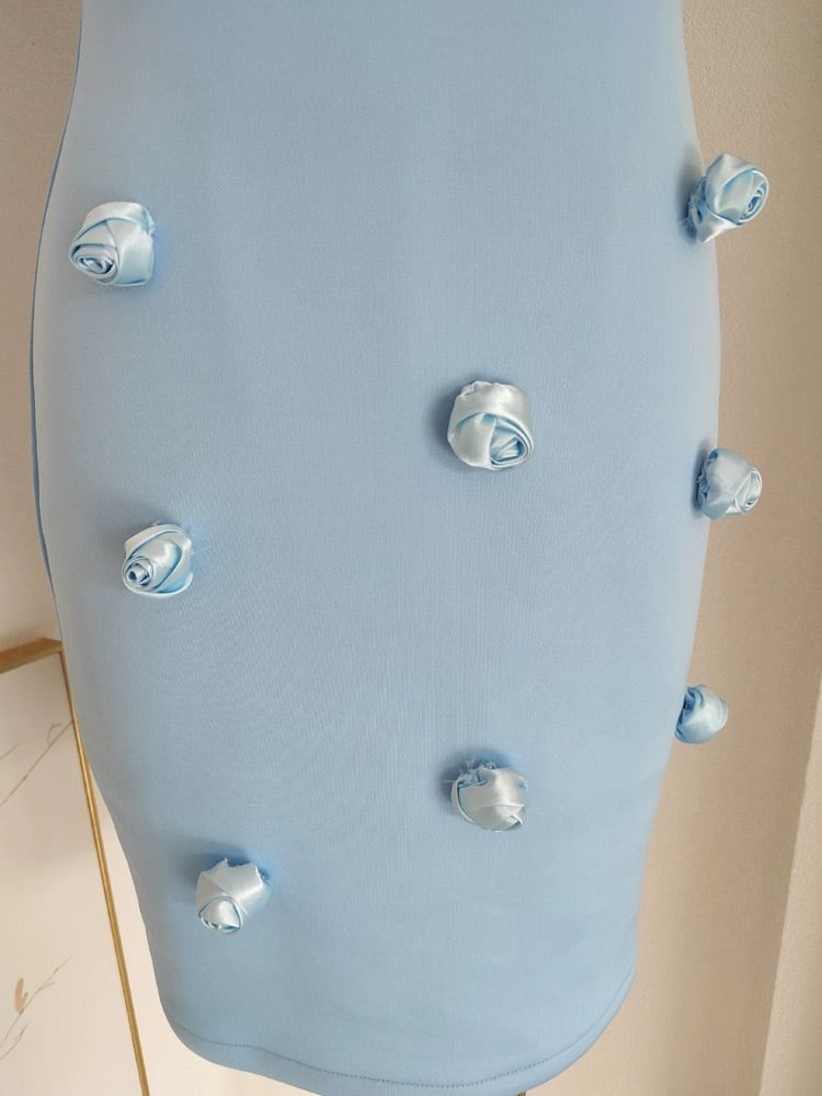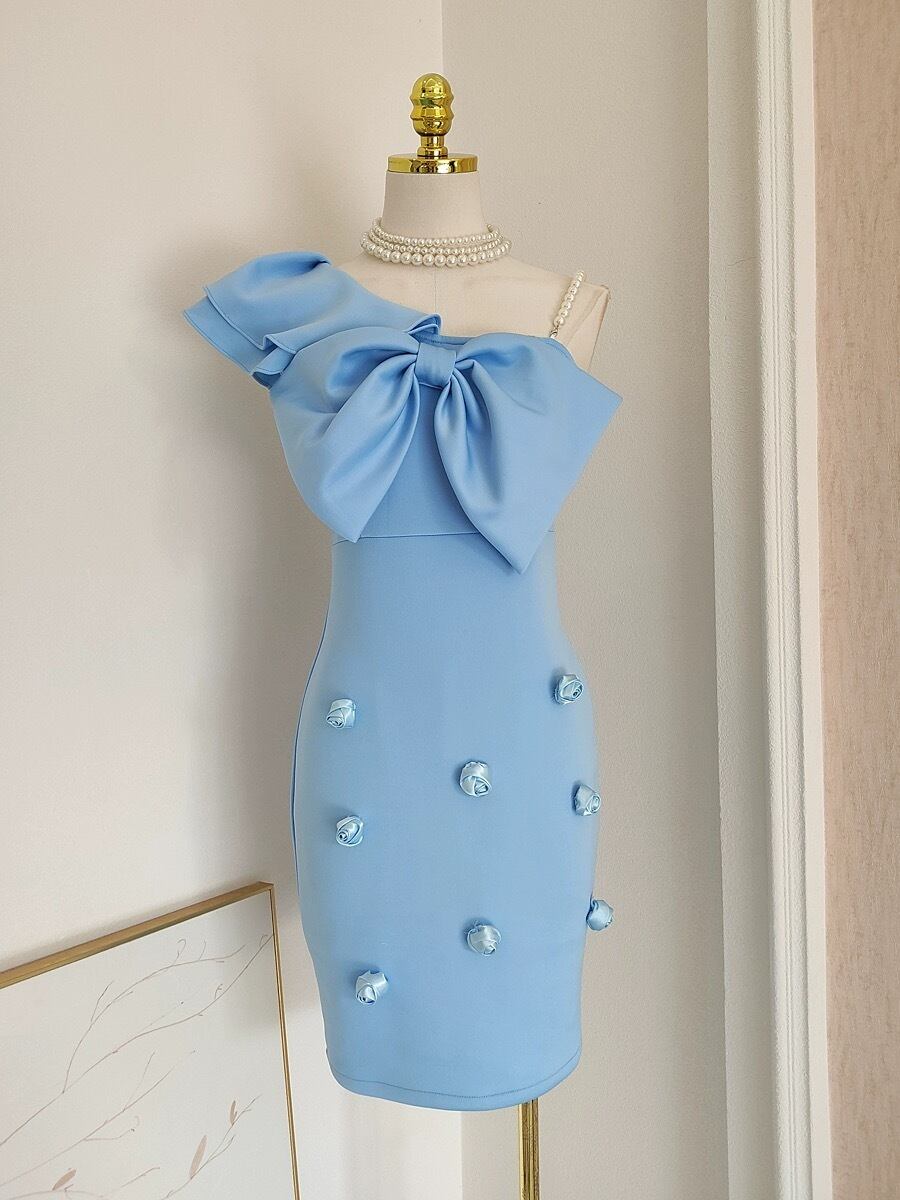 オフショルダー 水色 カメリア バラ 薔薇 フラワー デコレーション ワンピース ドレス