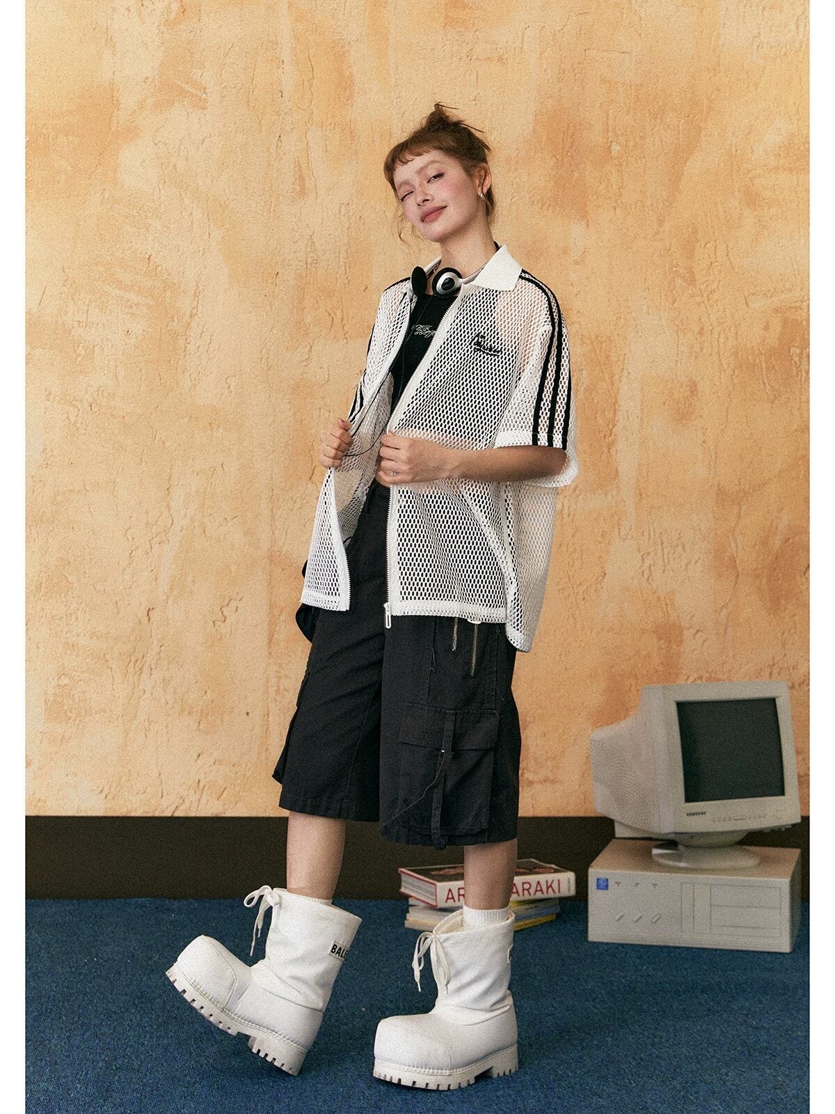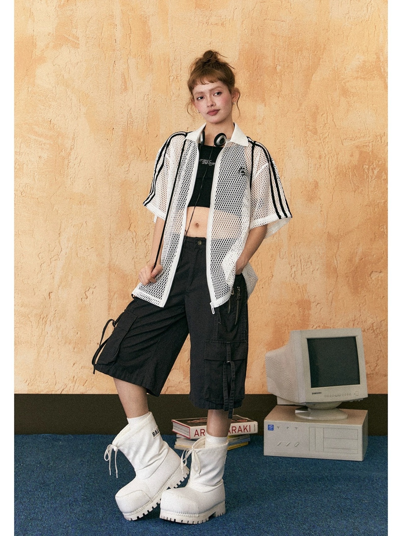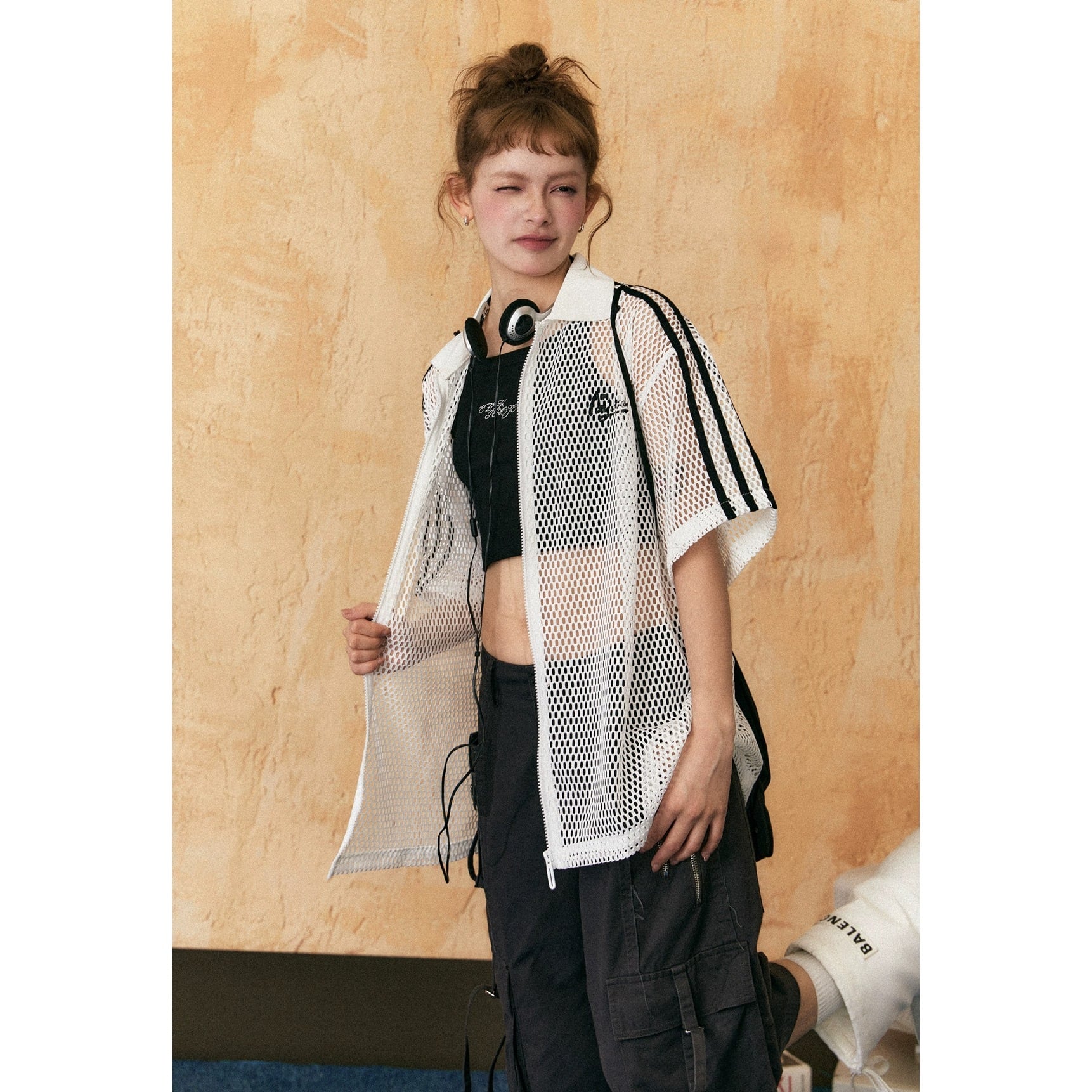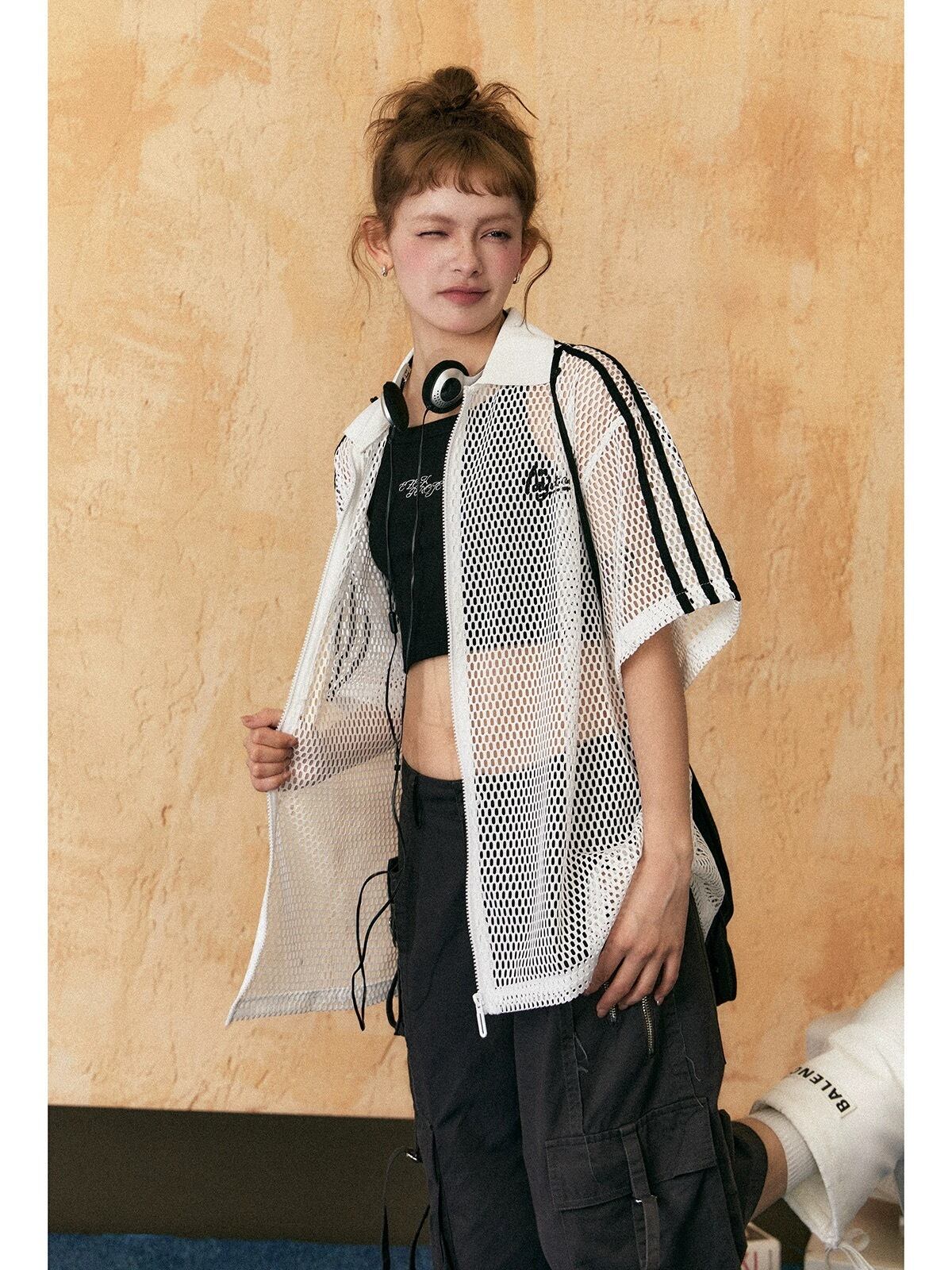 メッシュ スウェット カジュアル ジャージ ブラウス 白 黒 シャツ カーディガン