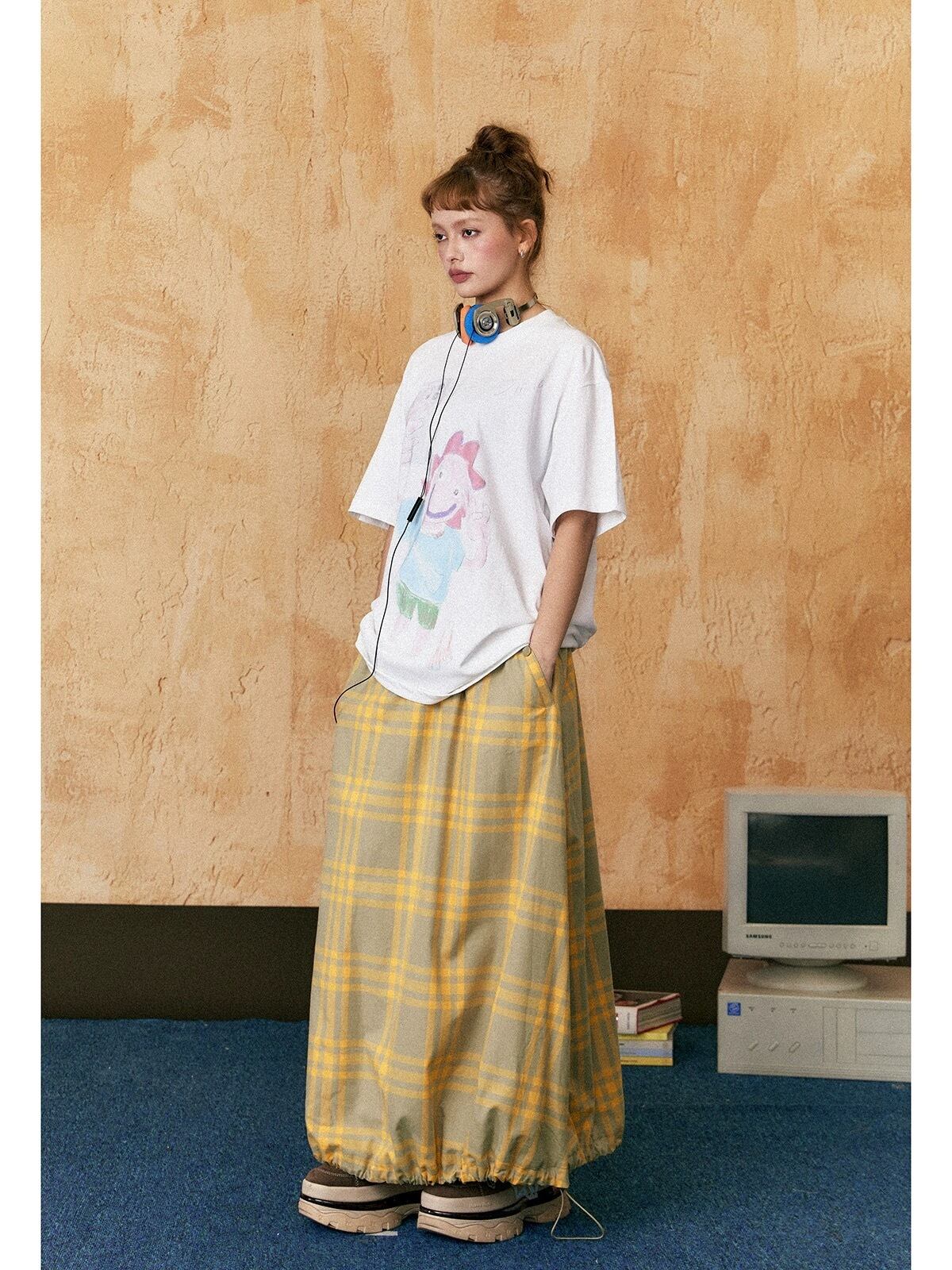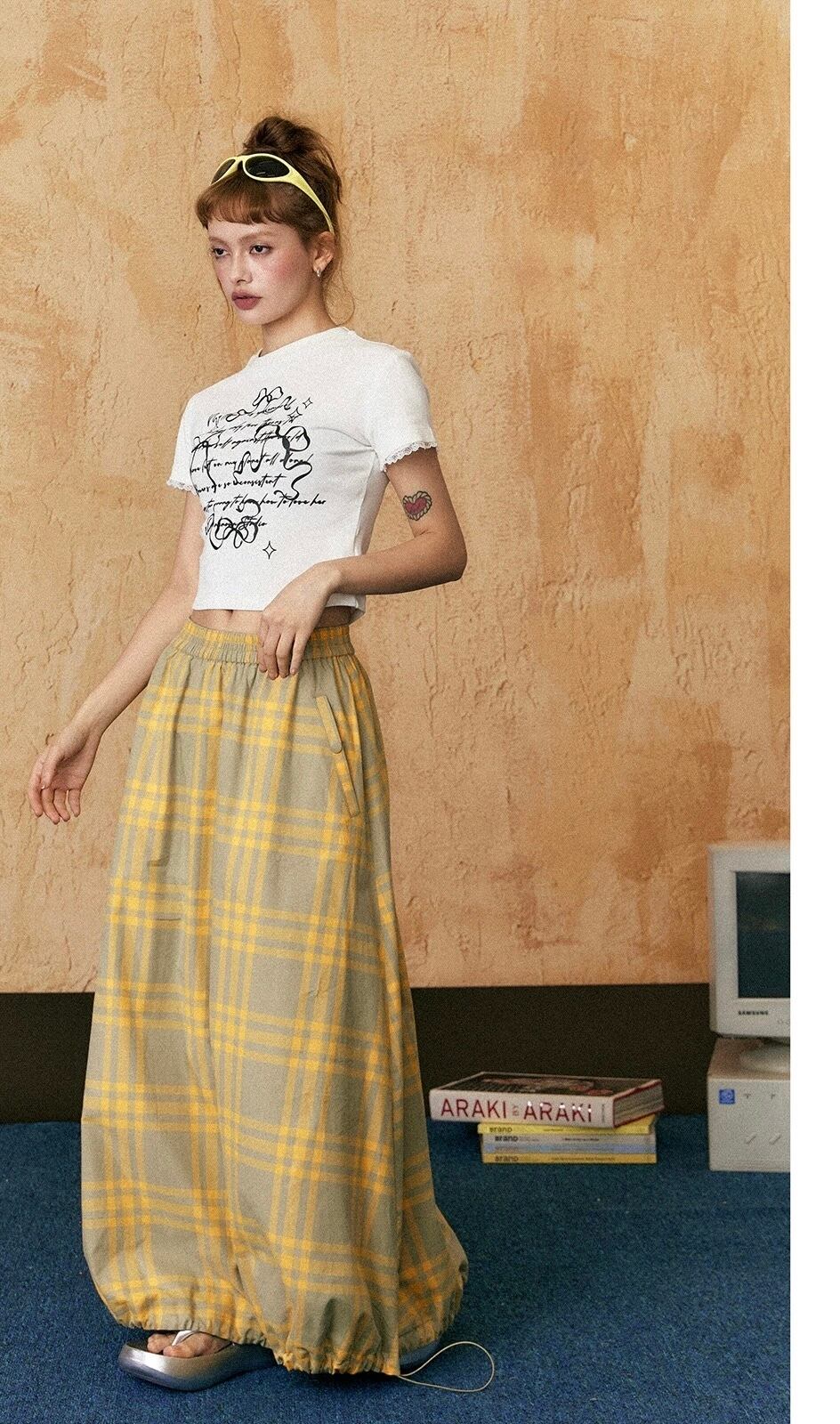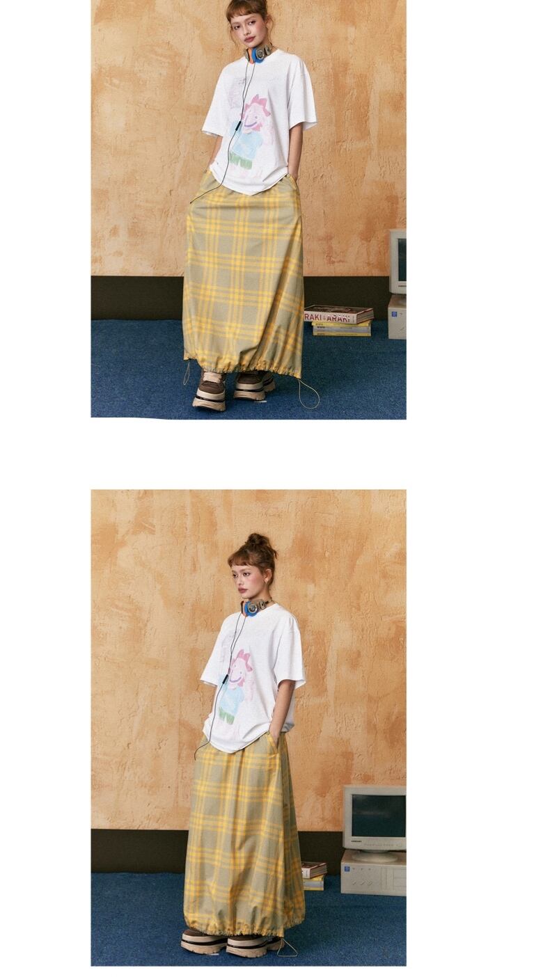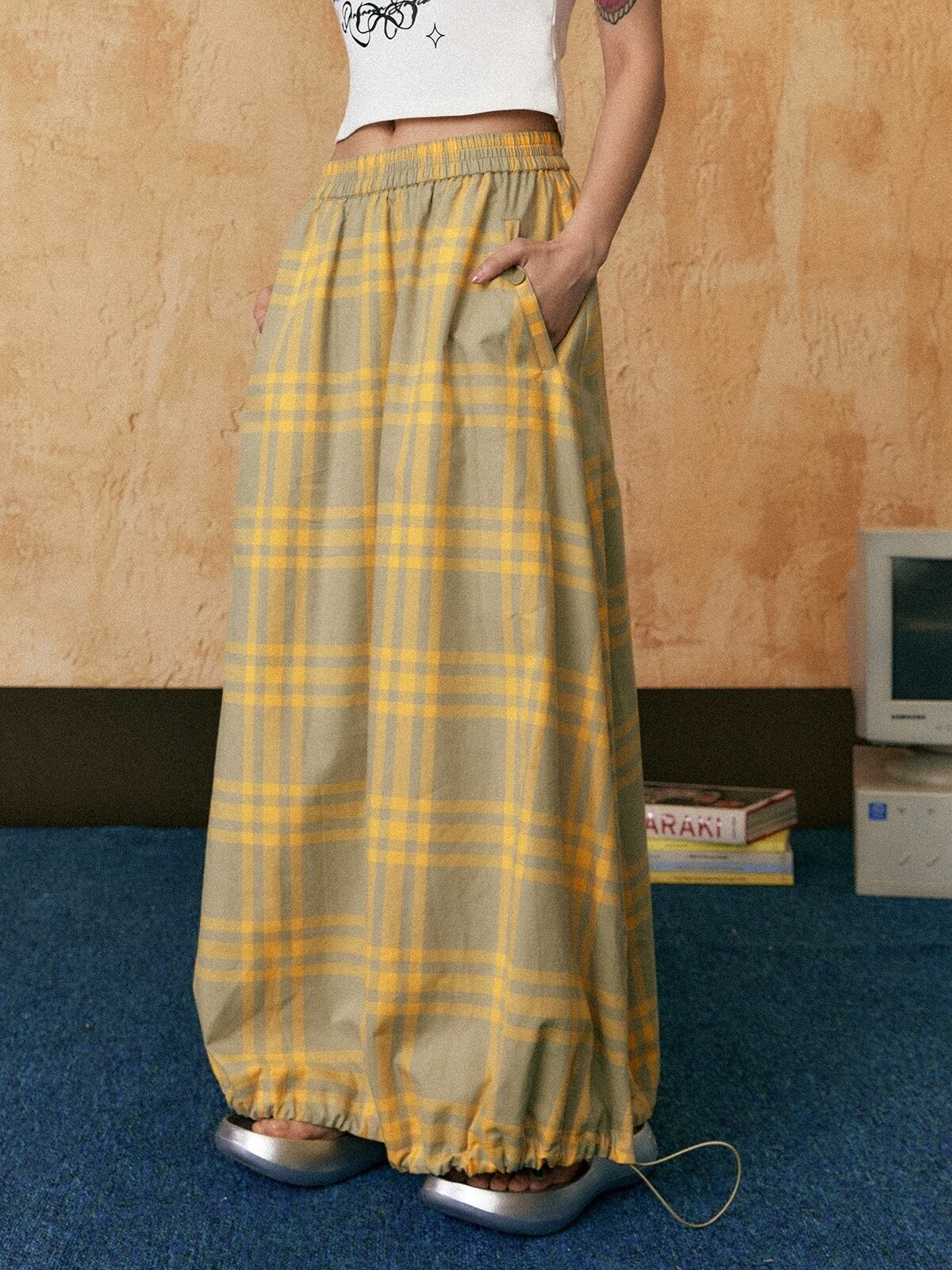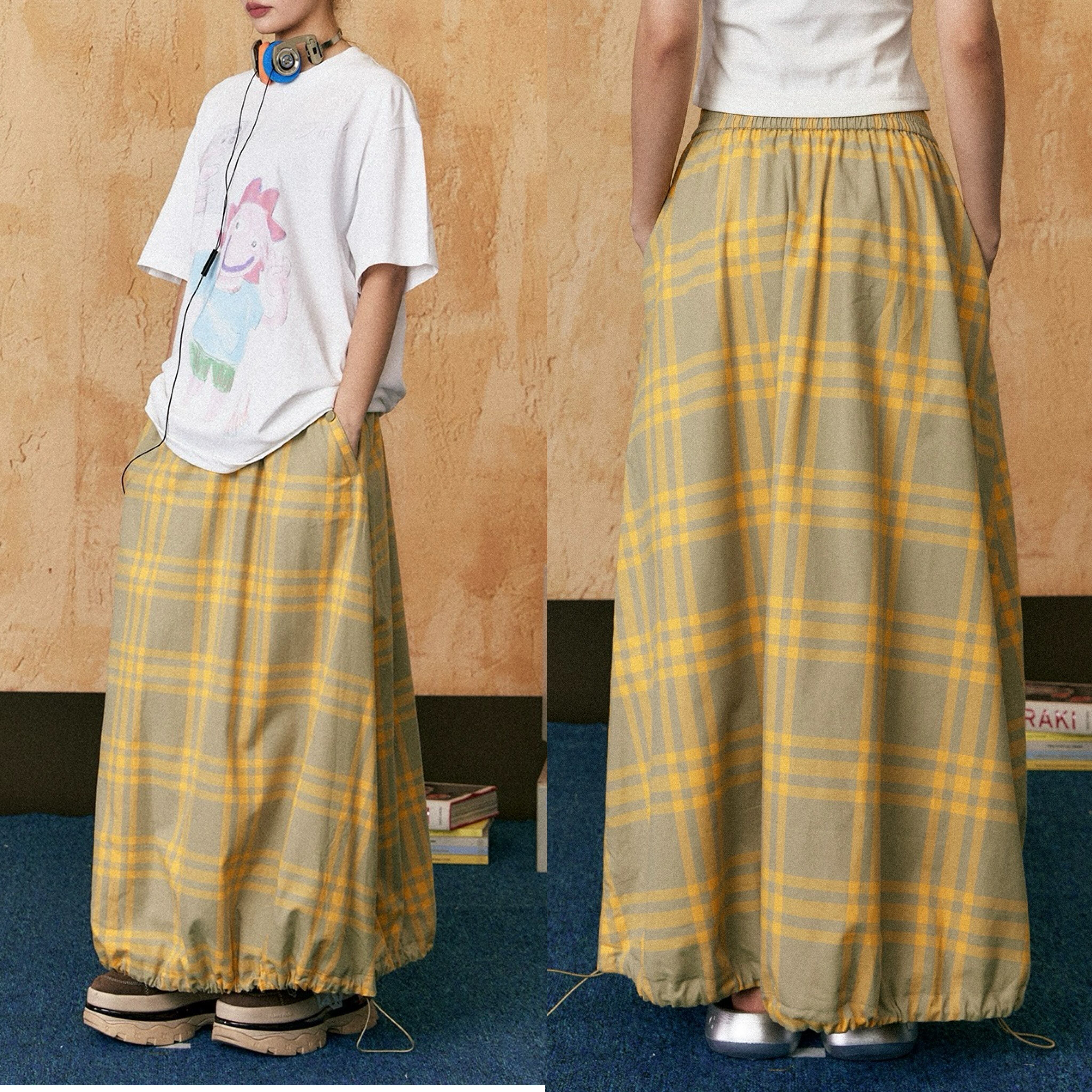 黄色 チェック スカート ボトムス ガーリー 可愛い 黄色