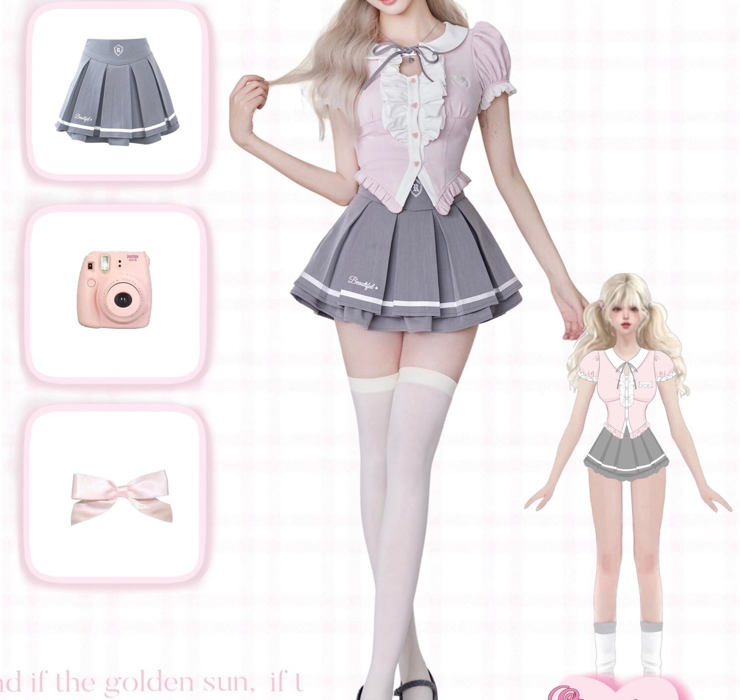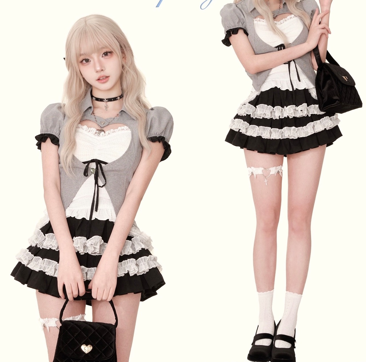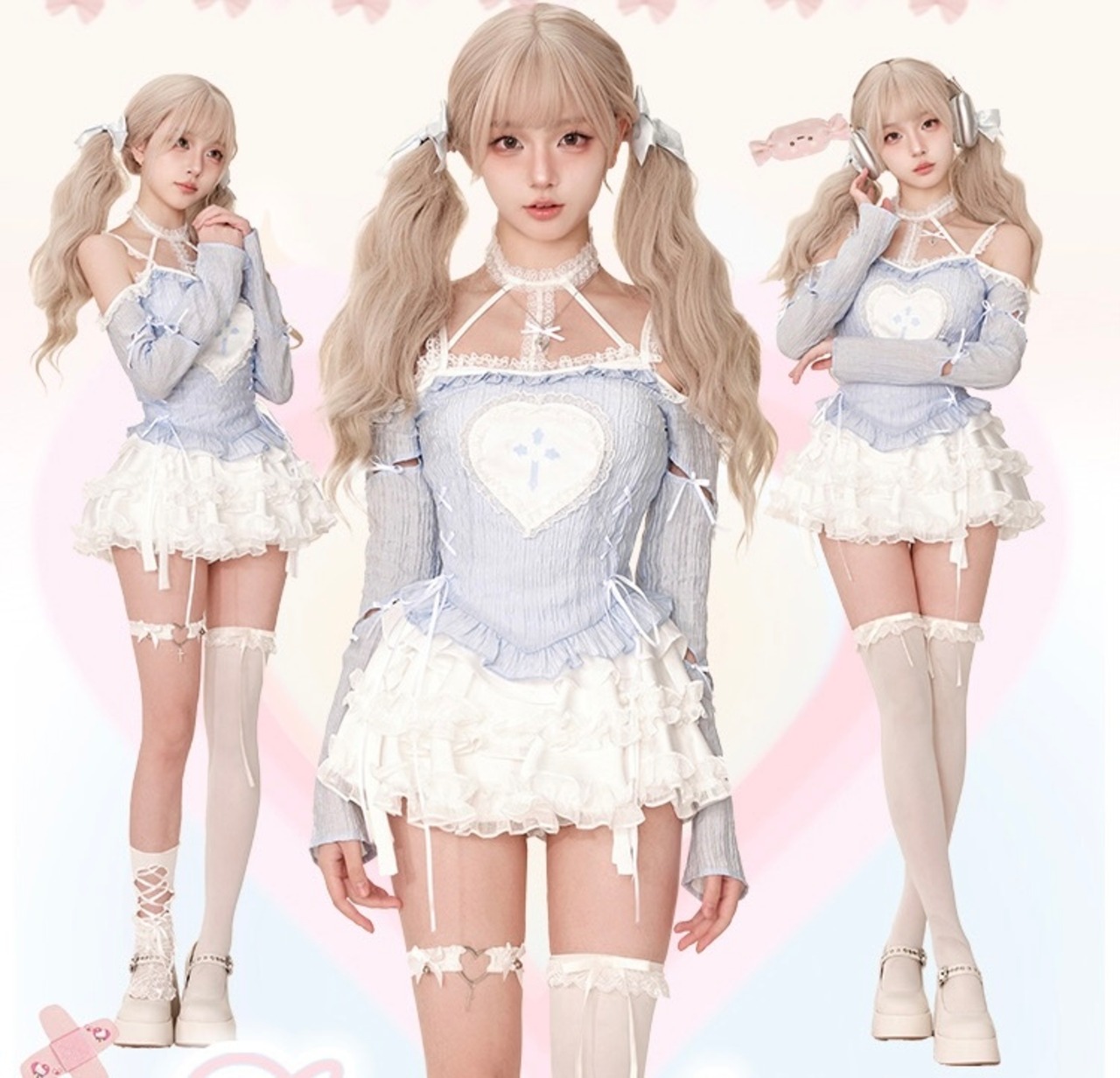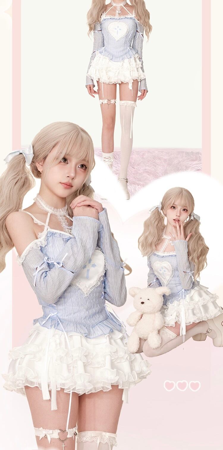 水色 ピンク グレー ハート ガーリー 姫 可愛い