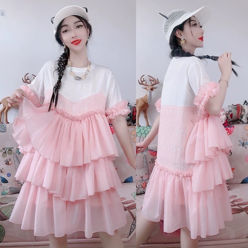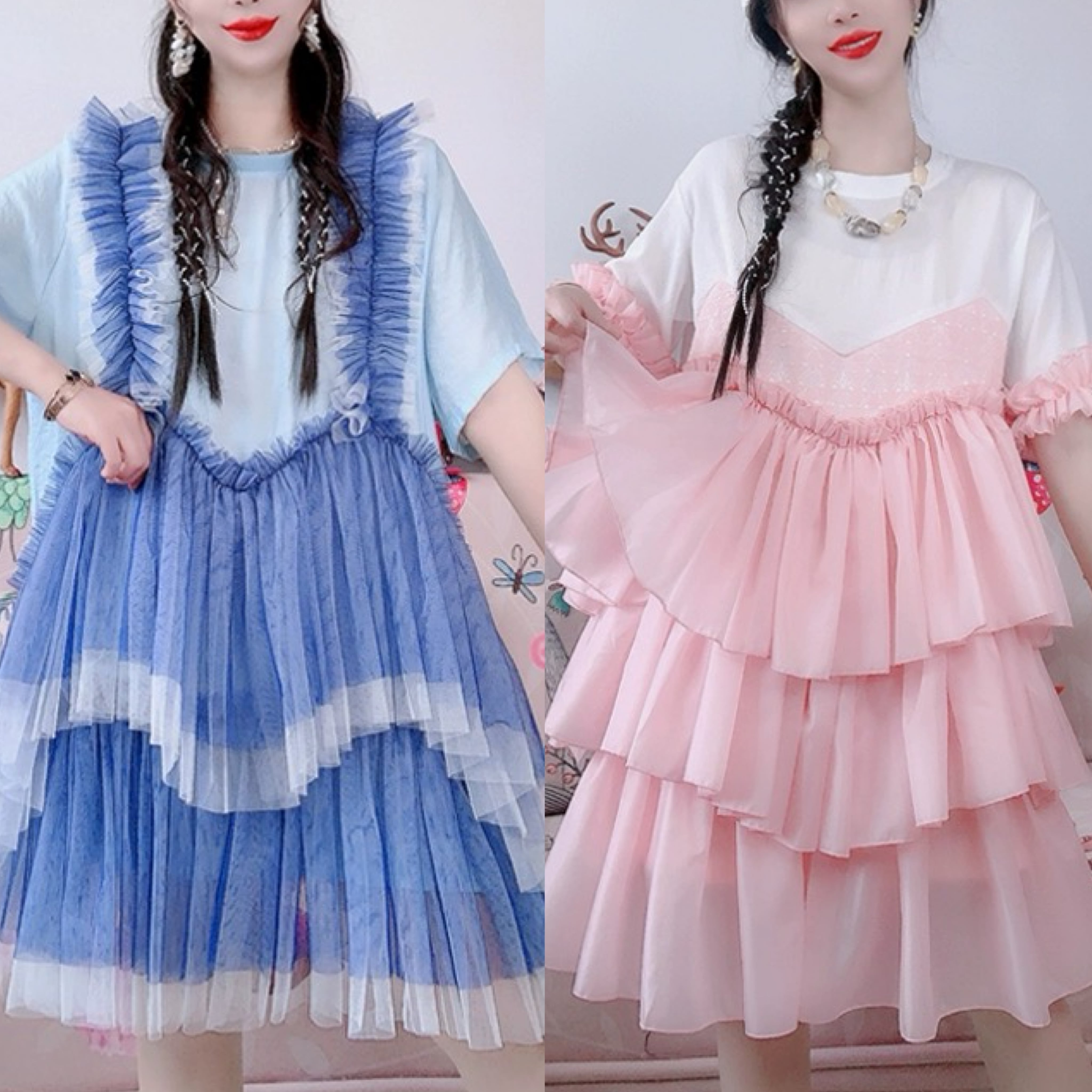 水色 白 ピンク カジュアル スウェット ガーリー ワンピース Tシャツ