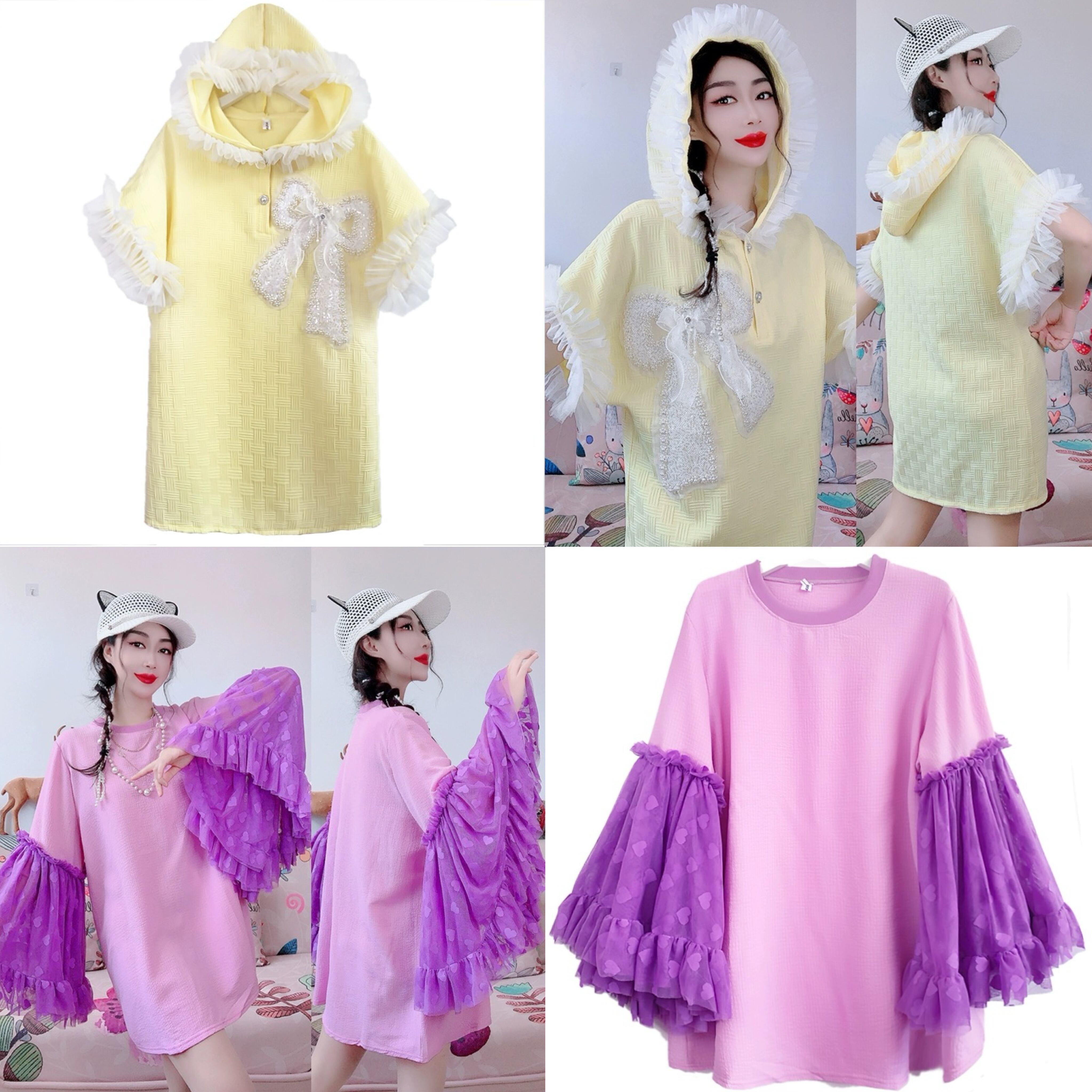 紫 カジュアル Tシャツ パーカー 黄色 ガーリー ワンピース