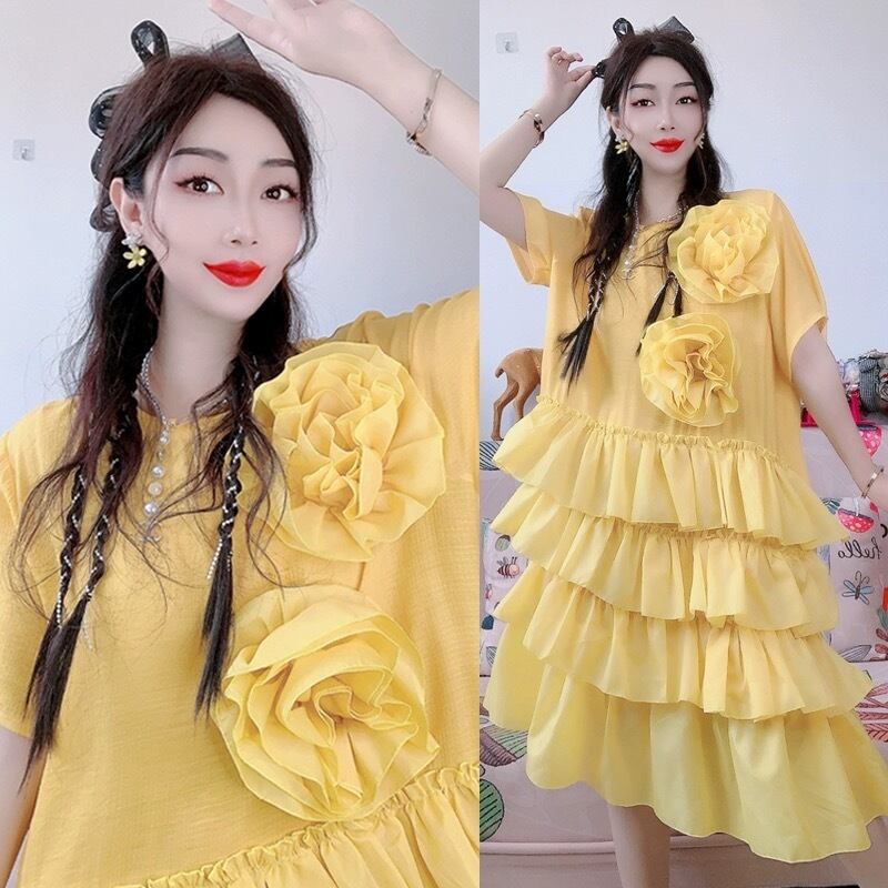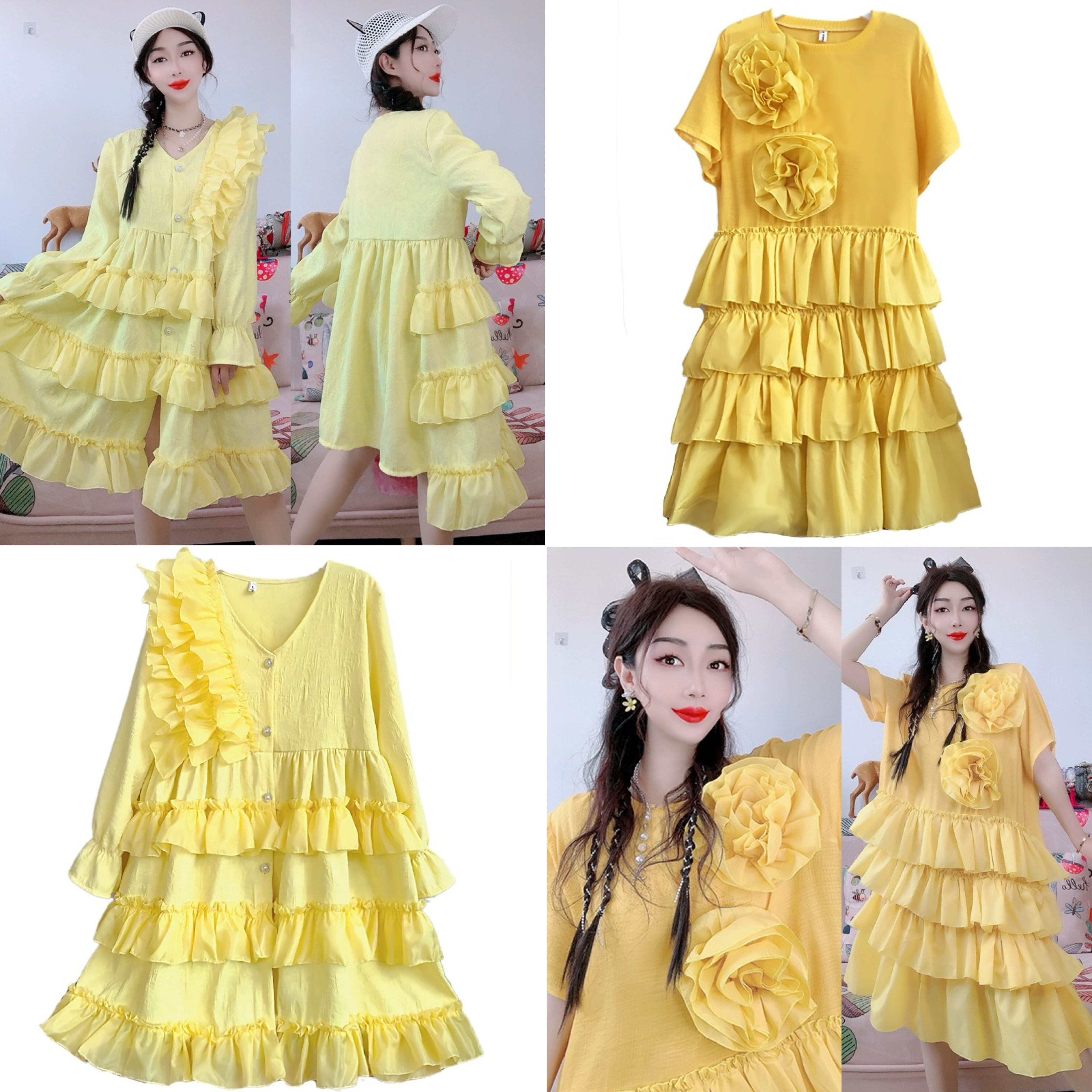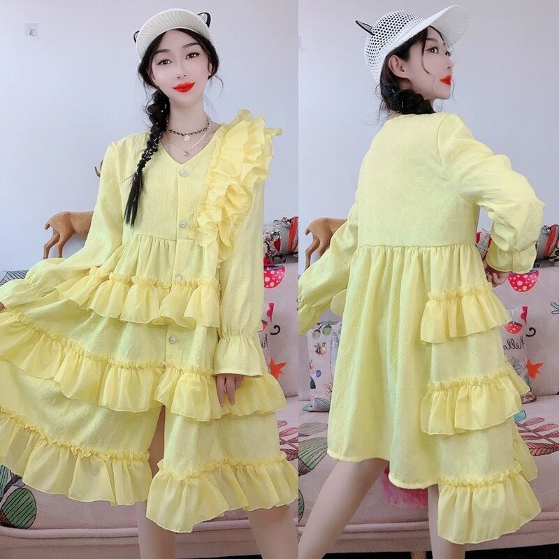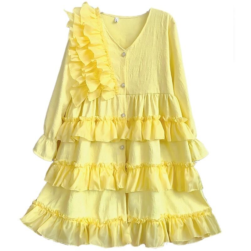 黄色 カメリア カーディガン ワンピース ガーリー ゆったり