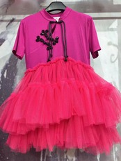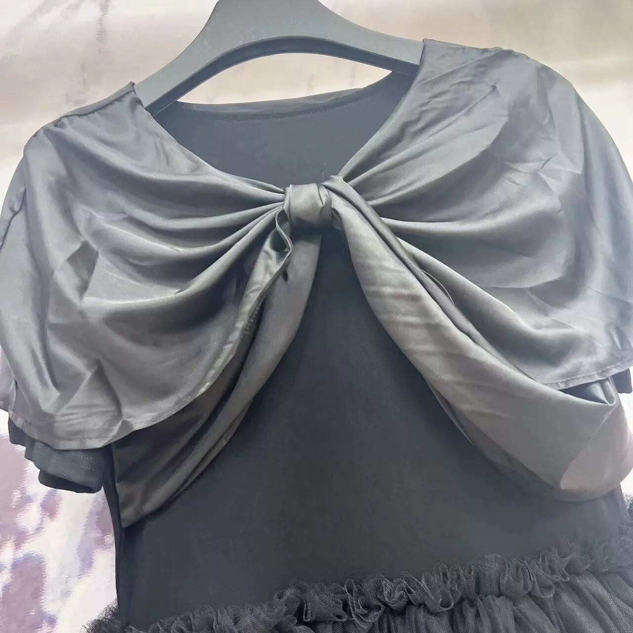 ブラウス ワンピース ピンク 桃 ネイビー 黒 リボン ゆったり チャイナ