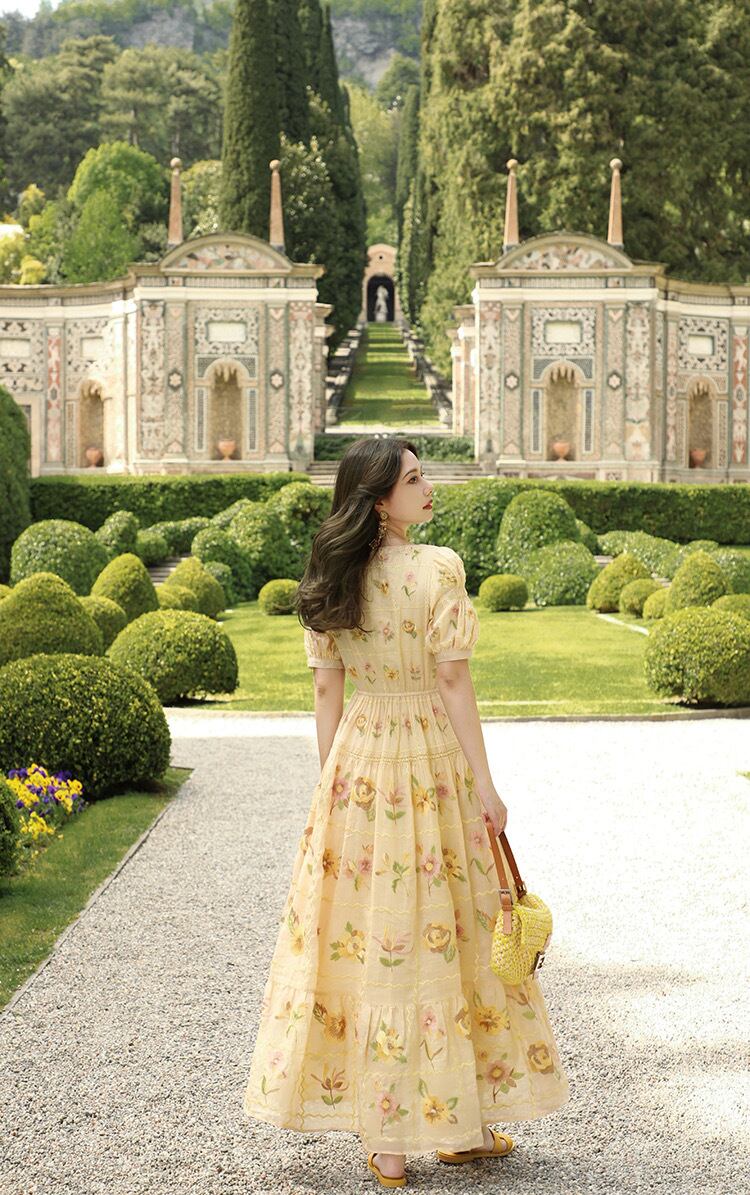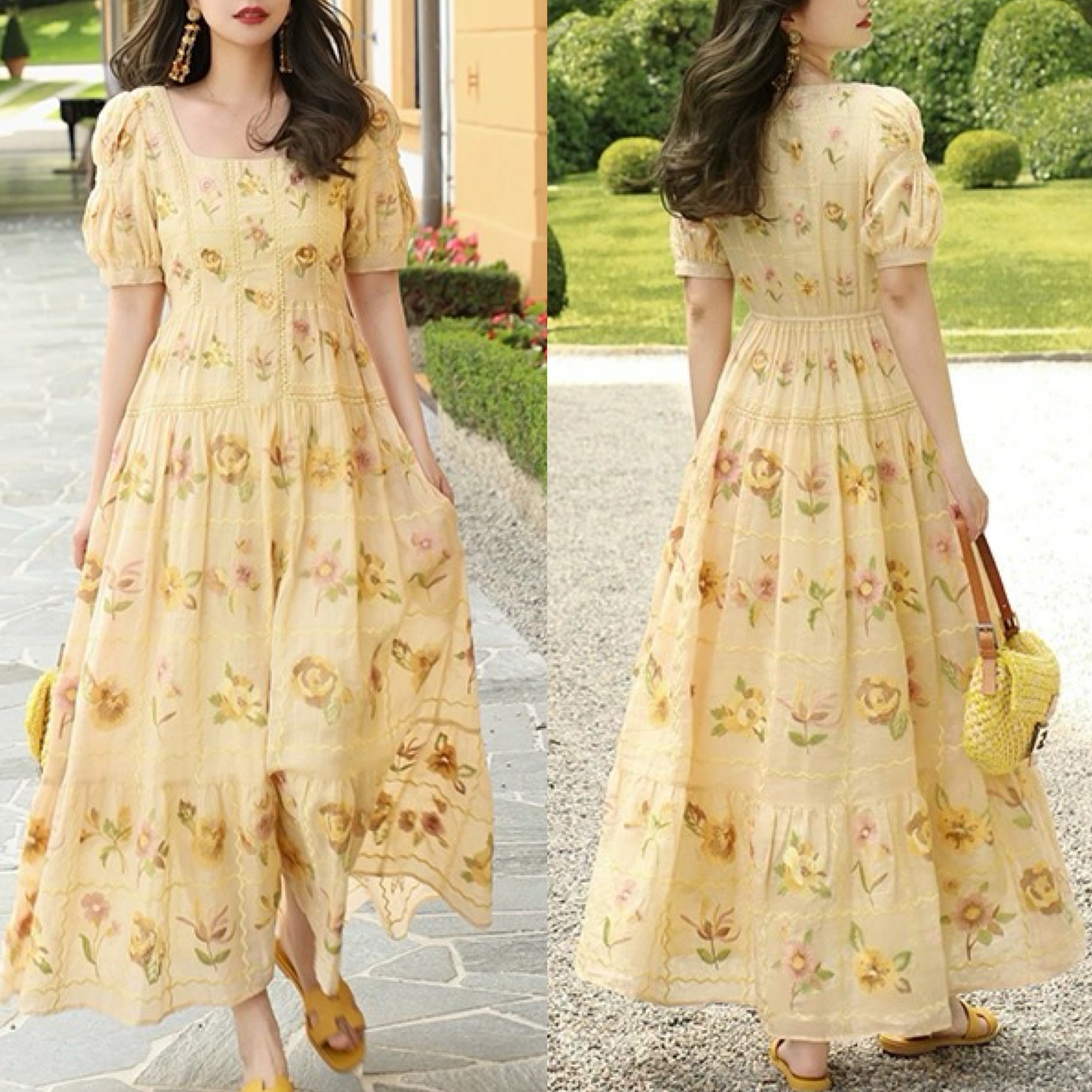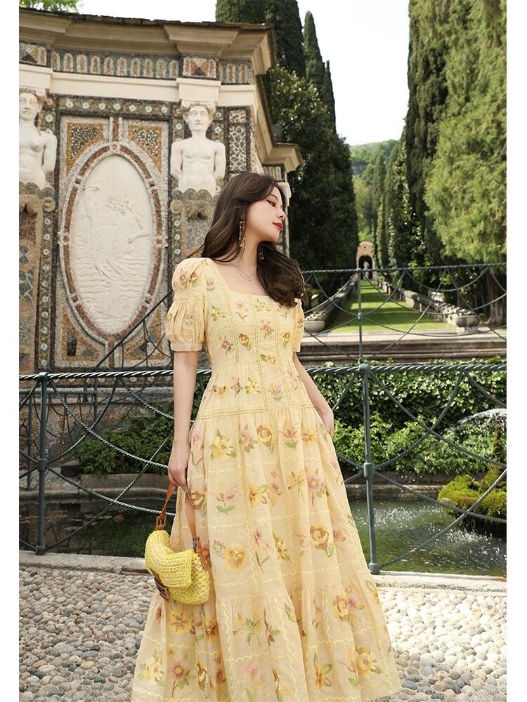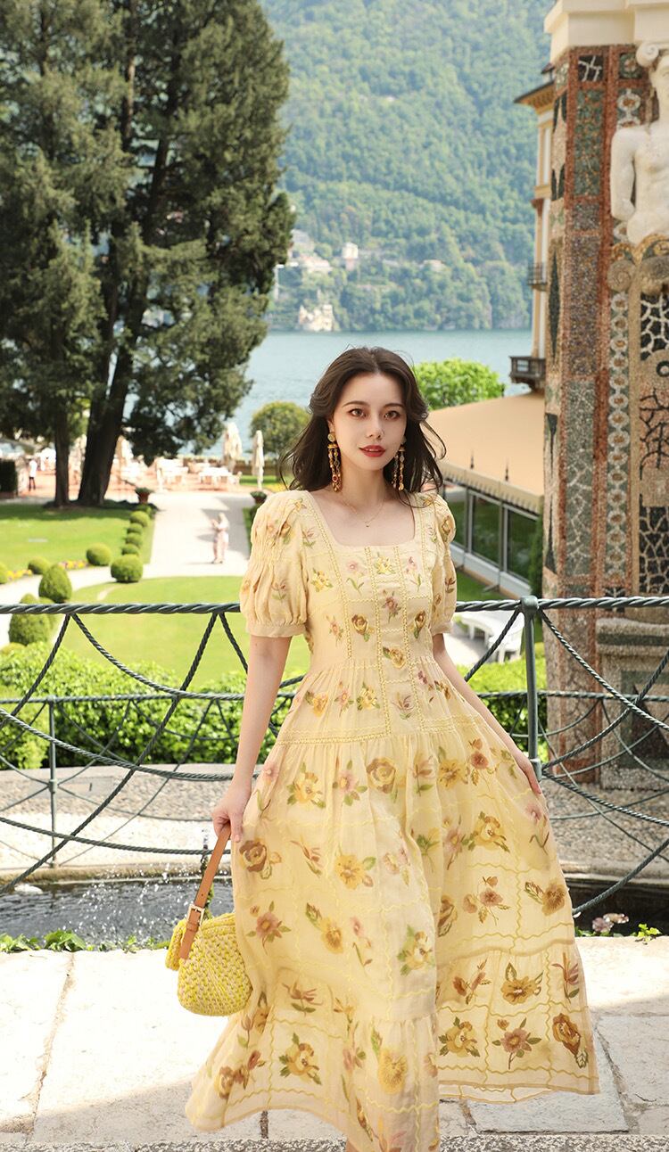 黄色 フラワー 花柄 ワンピース ゆったり エレガント