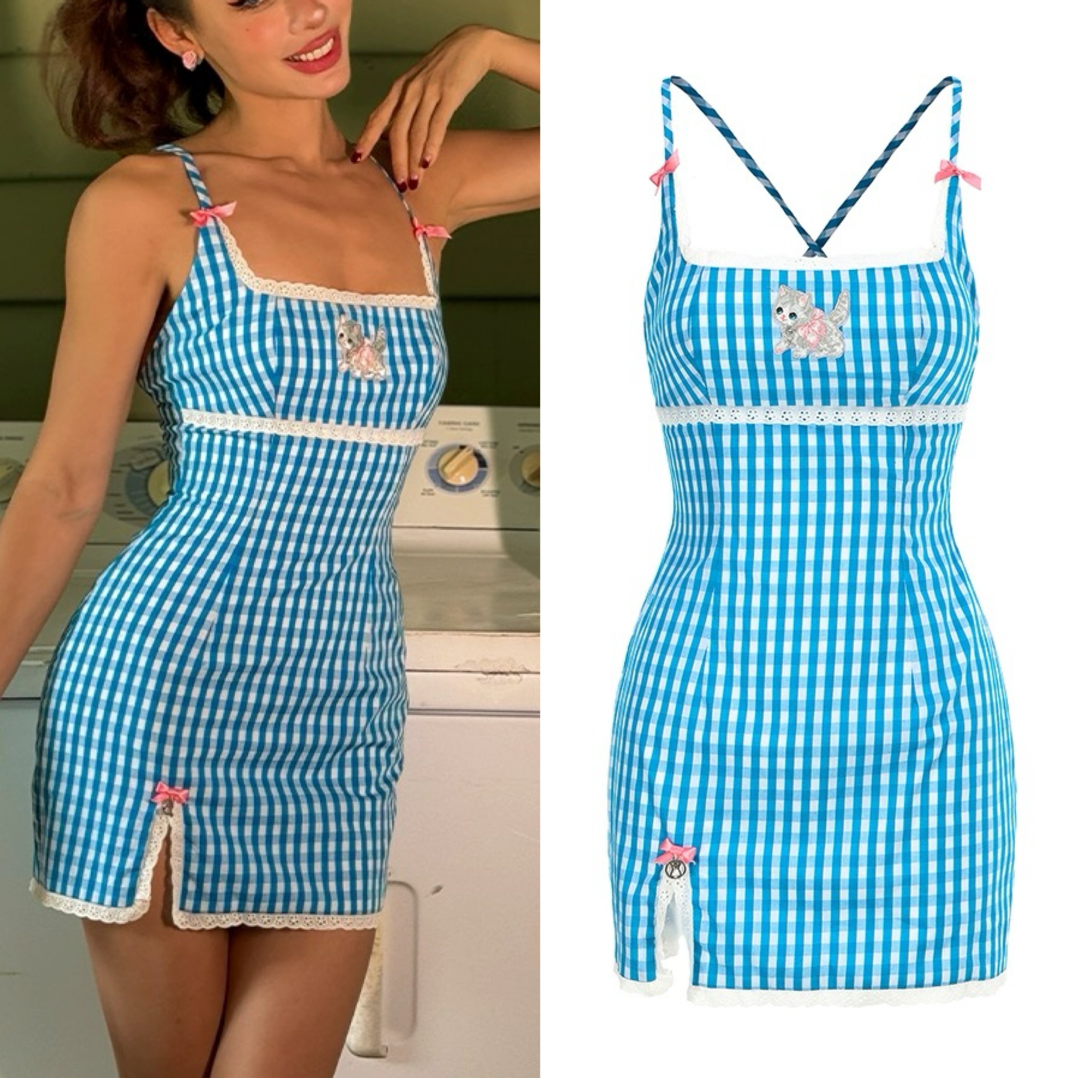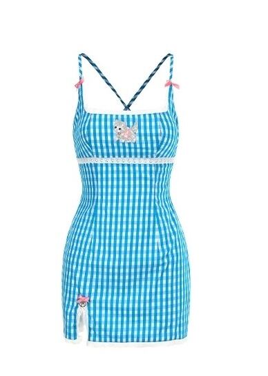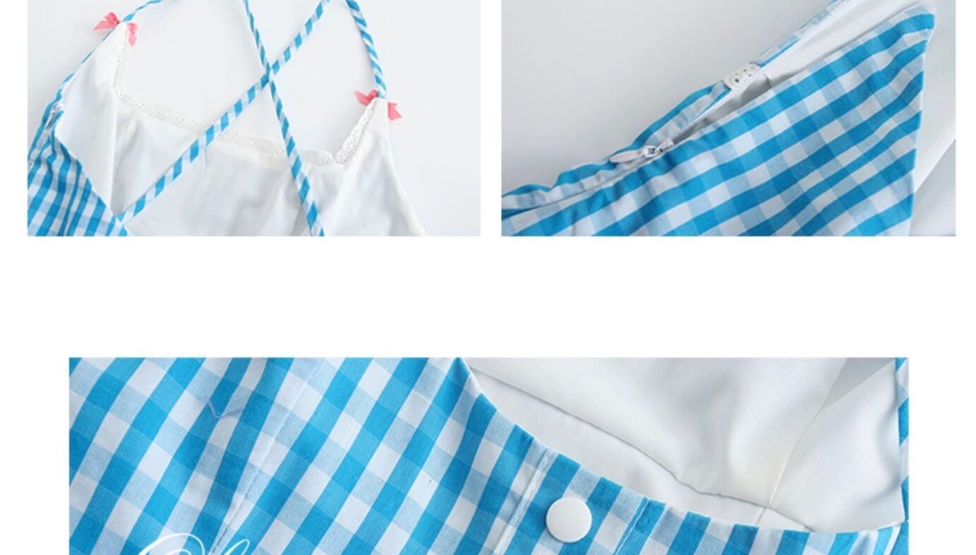 水色 チェック ワンピース キャミソール 可愛い 海 ギャル