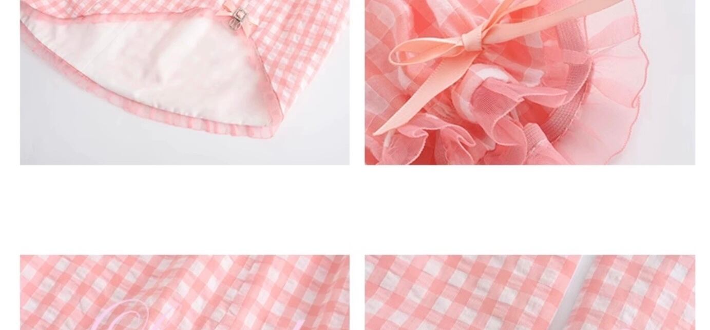 ピンク チェック ガーリー 半袖 ブラウス ワンピース リボン