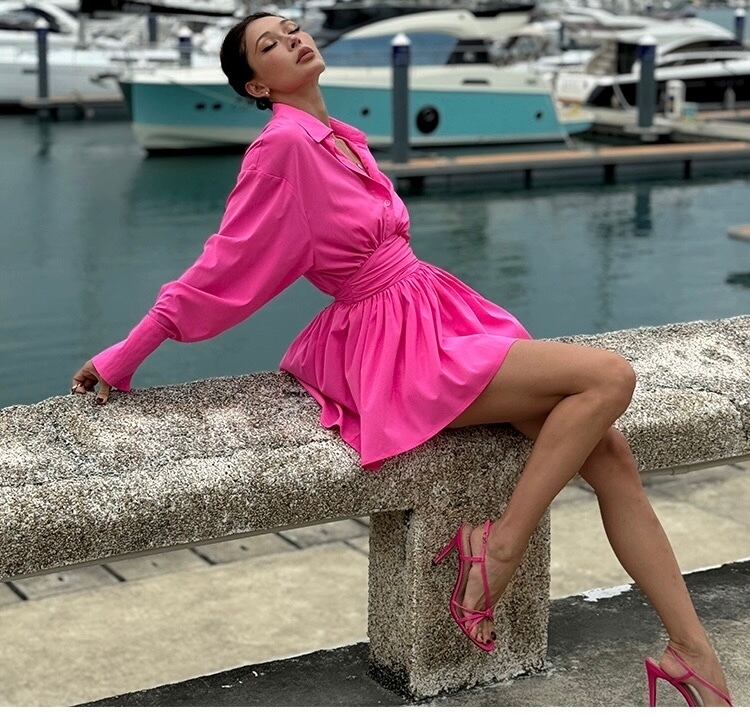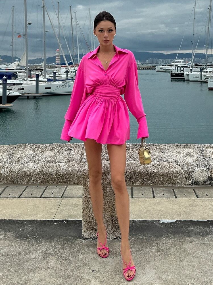セットアップ ブラウス ミニスカート ワンピース ピンク