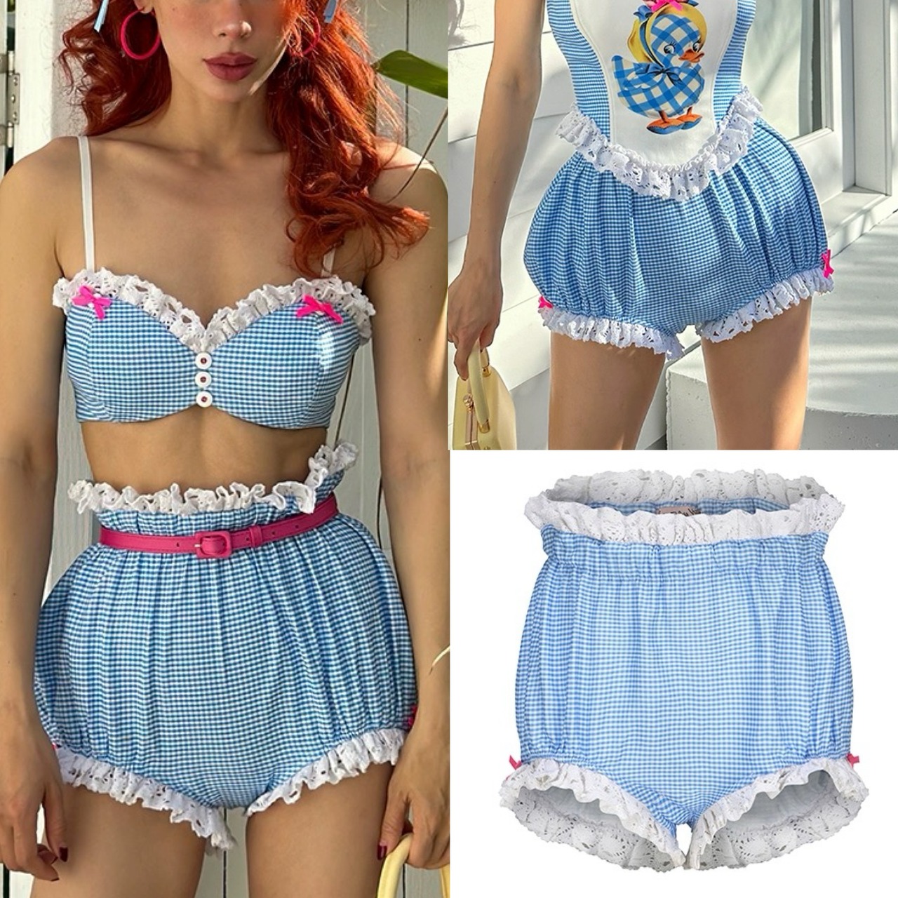 【ショートパンツ】水色 パンツ ブルマ チェック ボトムス