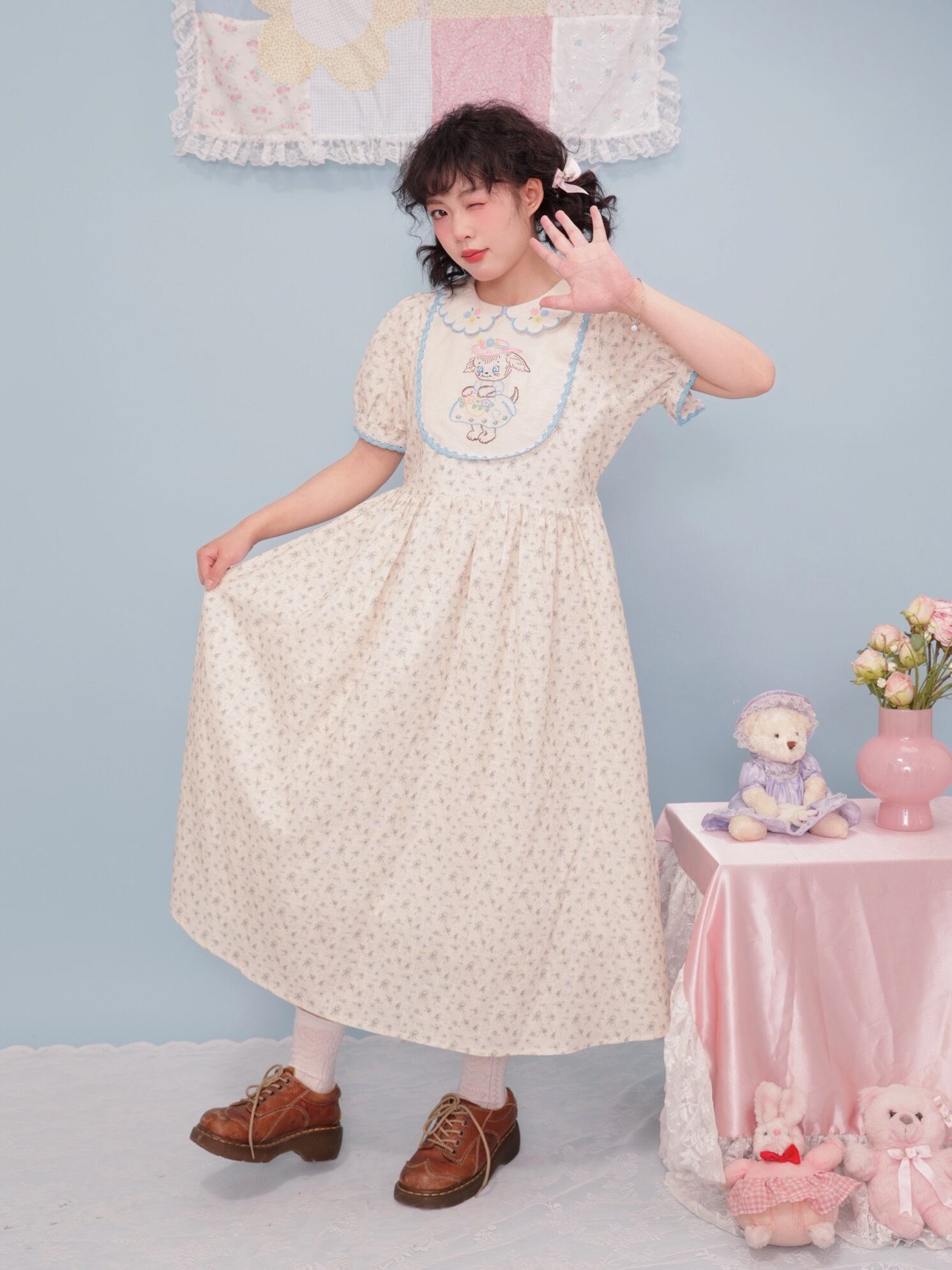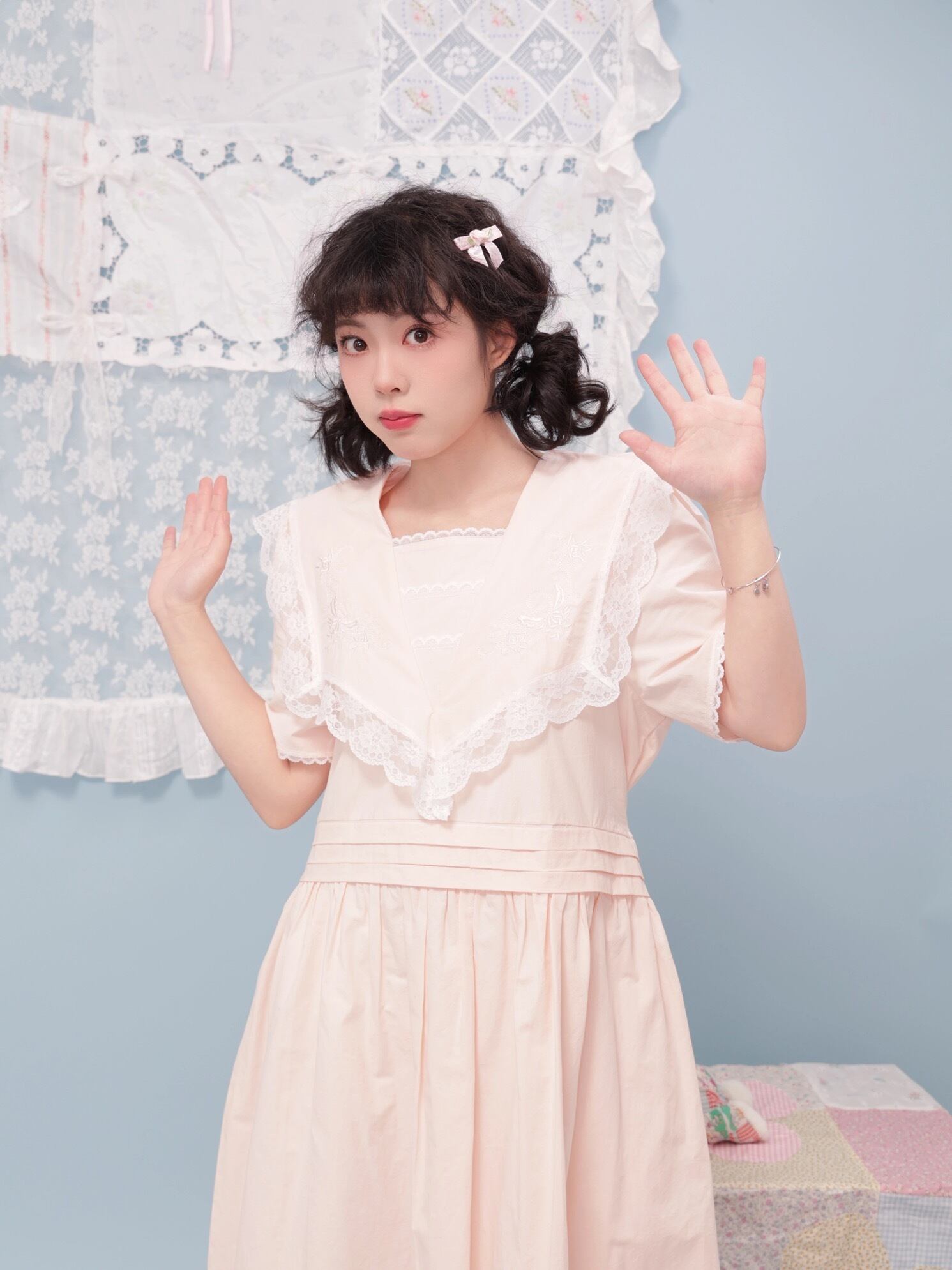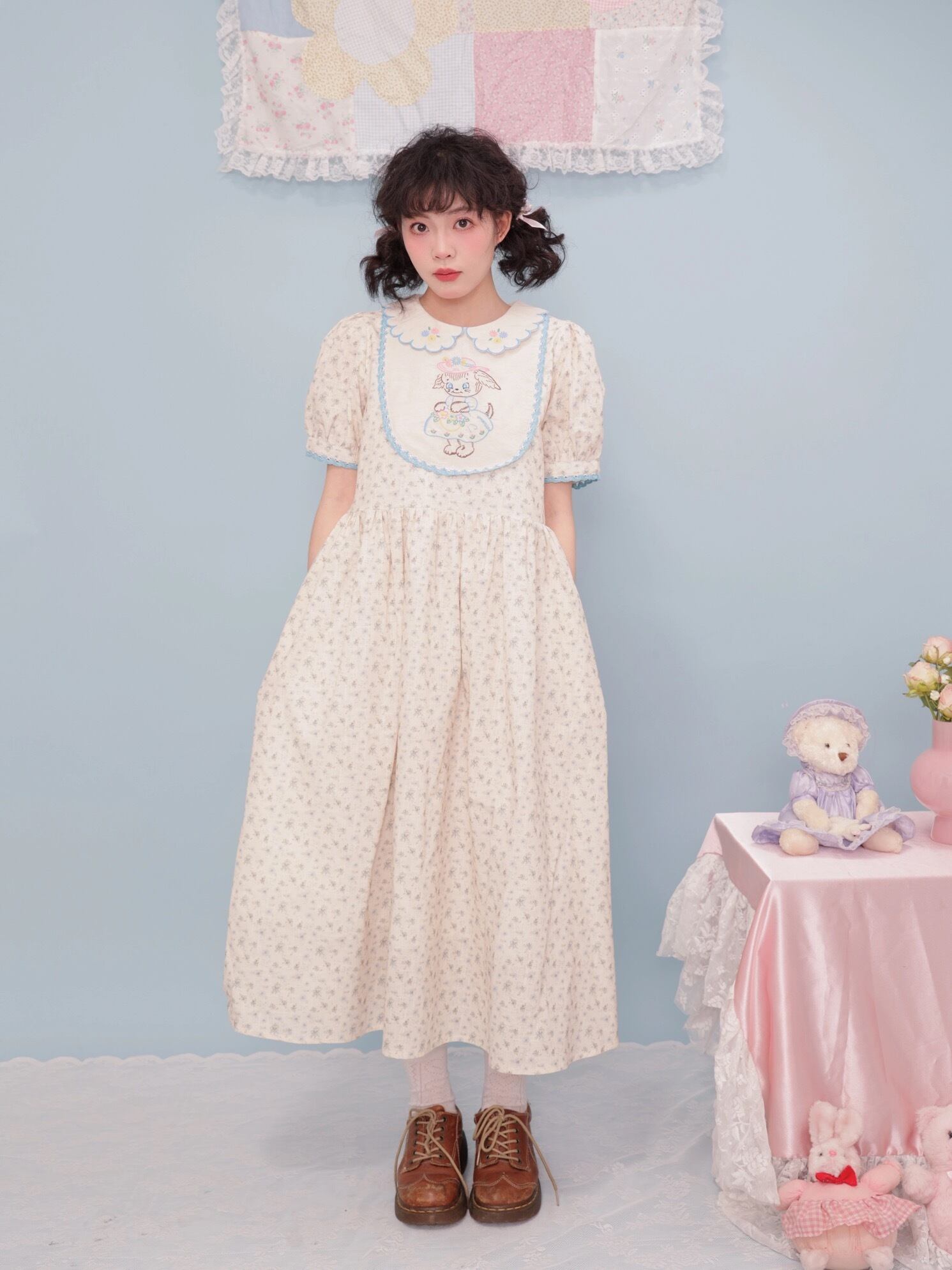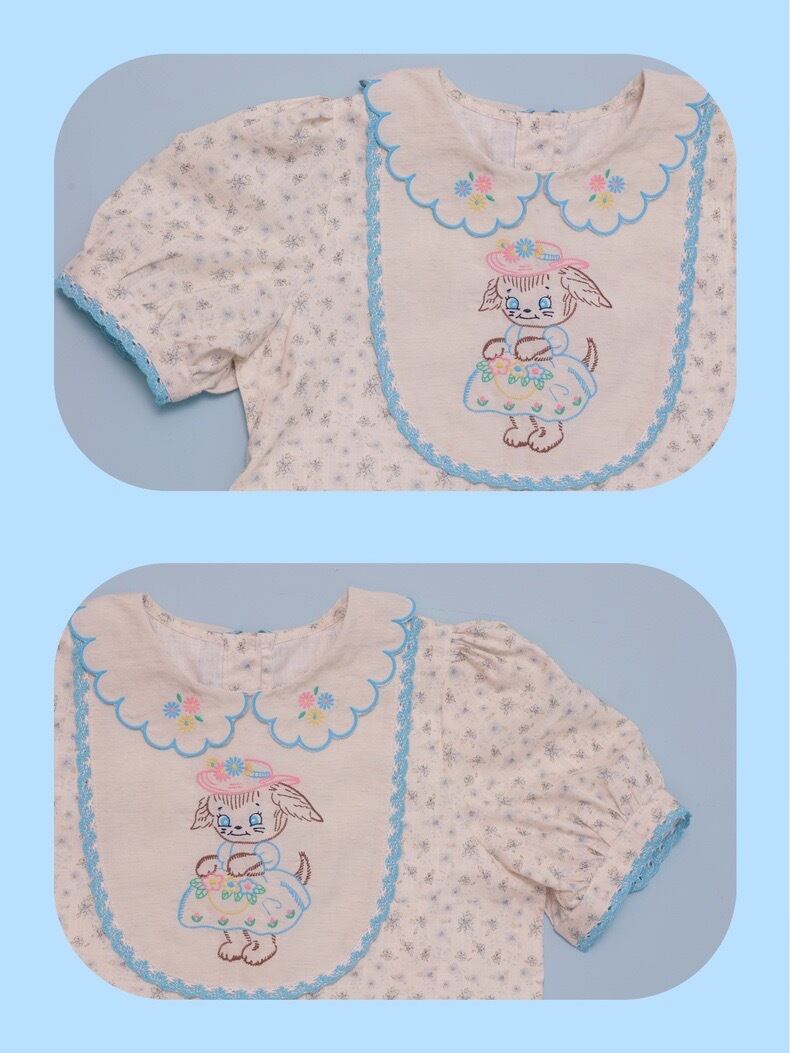 ガーリー ゆったり くま いぬ ピンク 襟 ワンピース ブラウス 水色 原宿