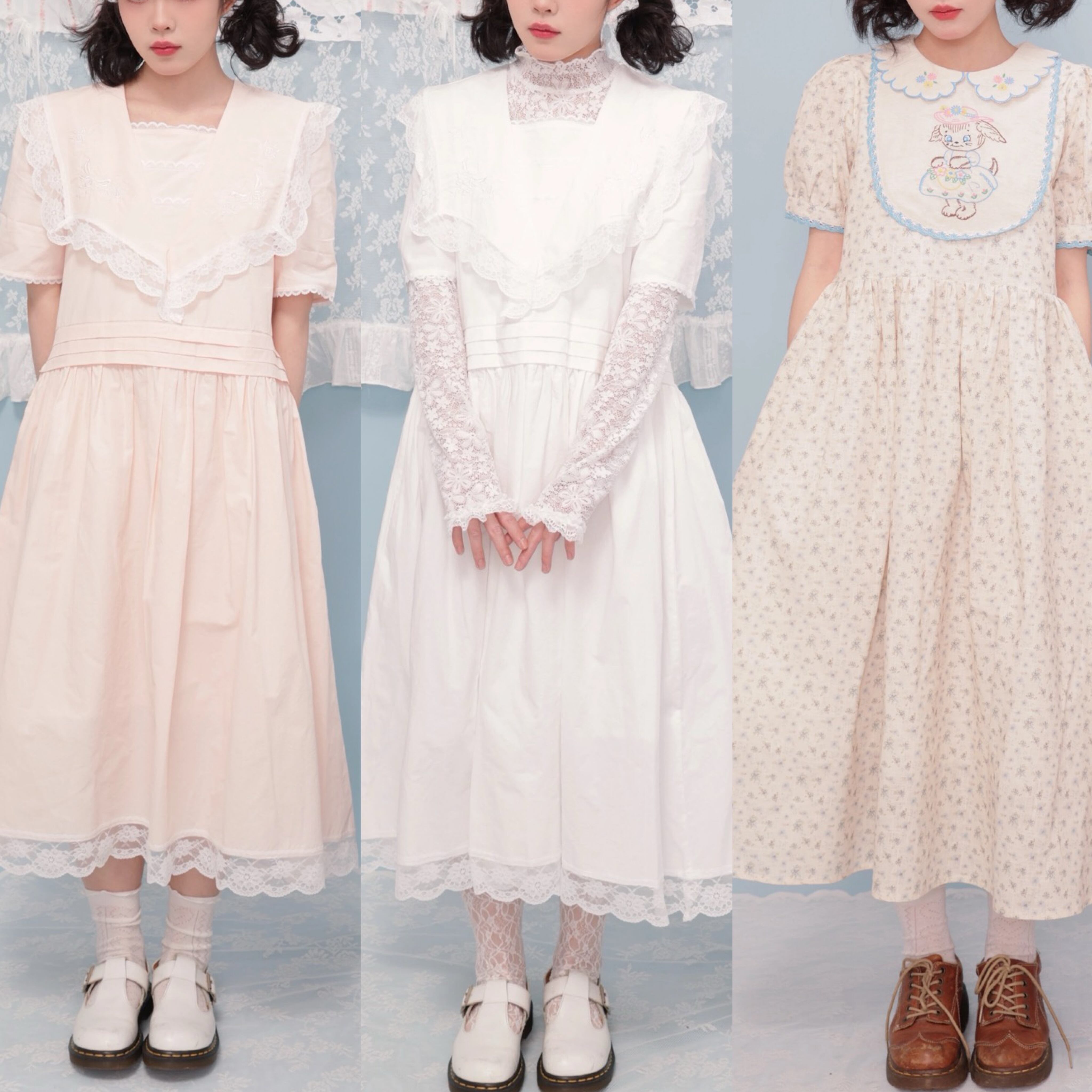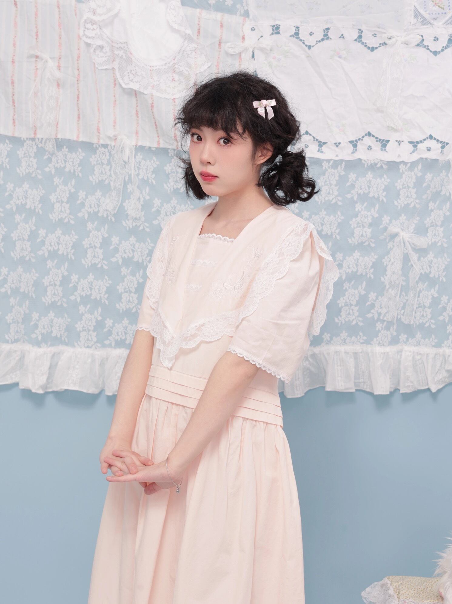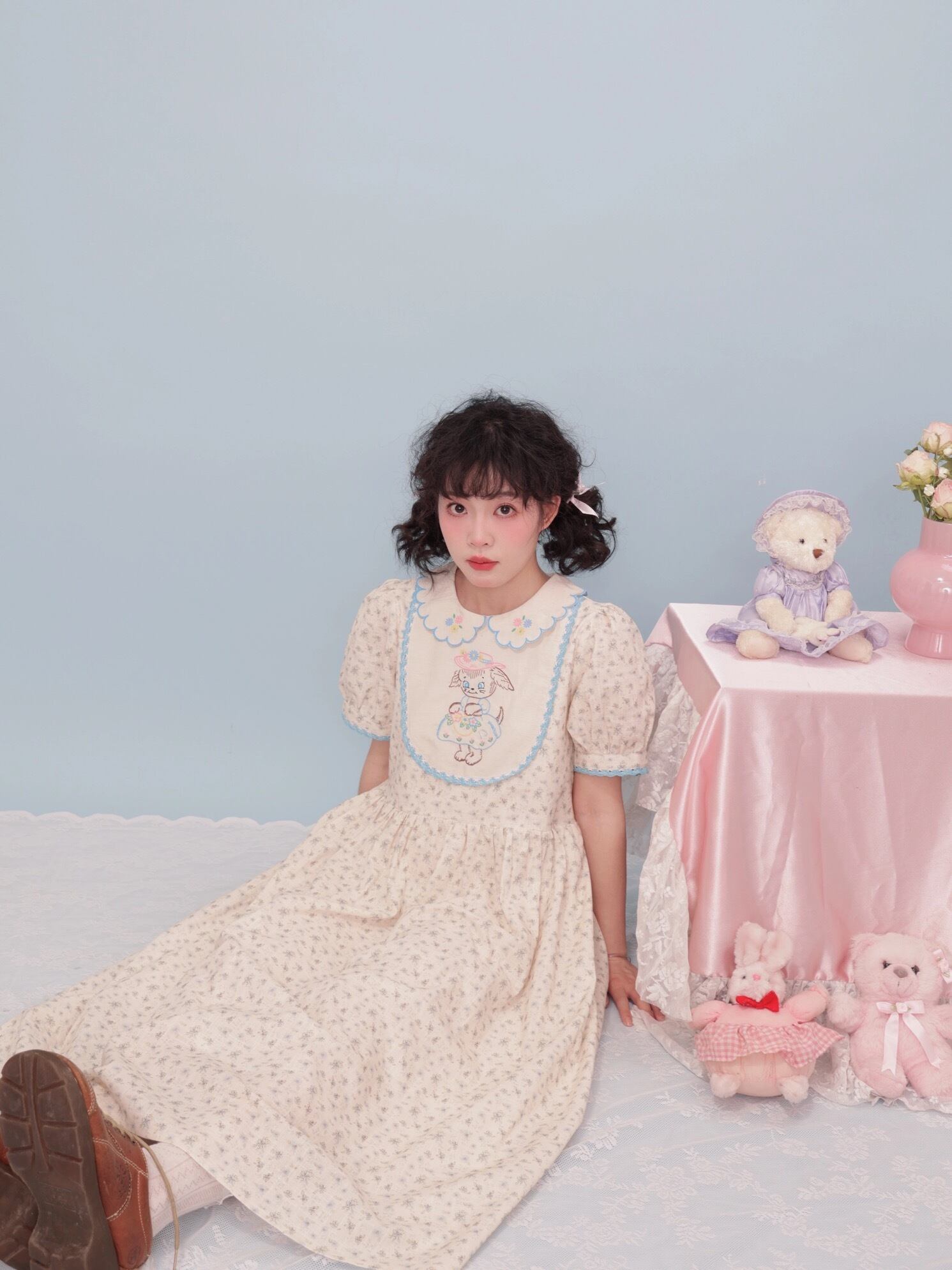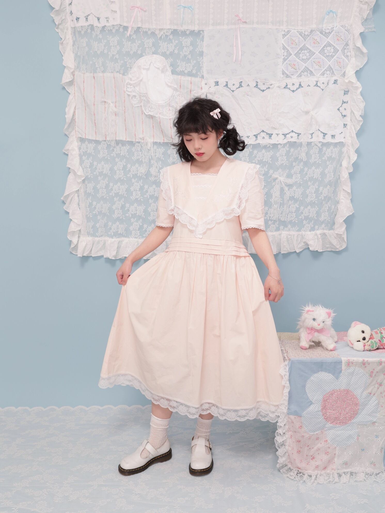 ガーリー ゆったり くま いぬ ピンク 襟 ワンピース ブラウス 水色 原宿
