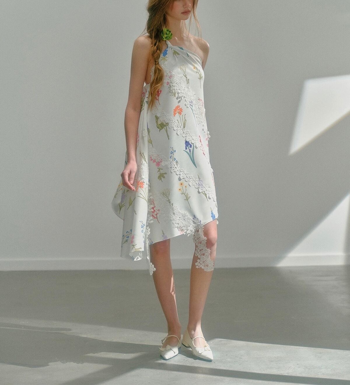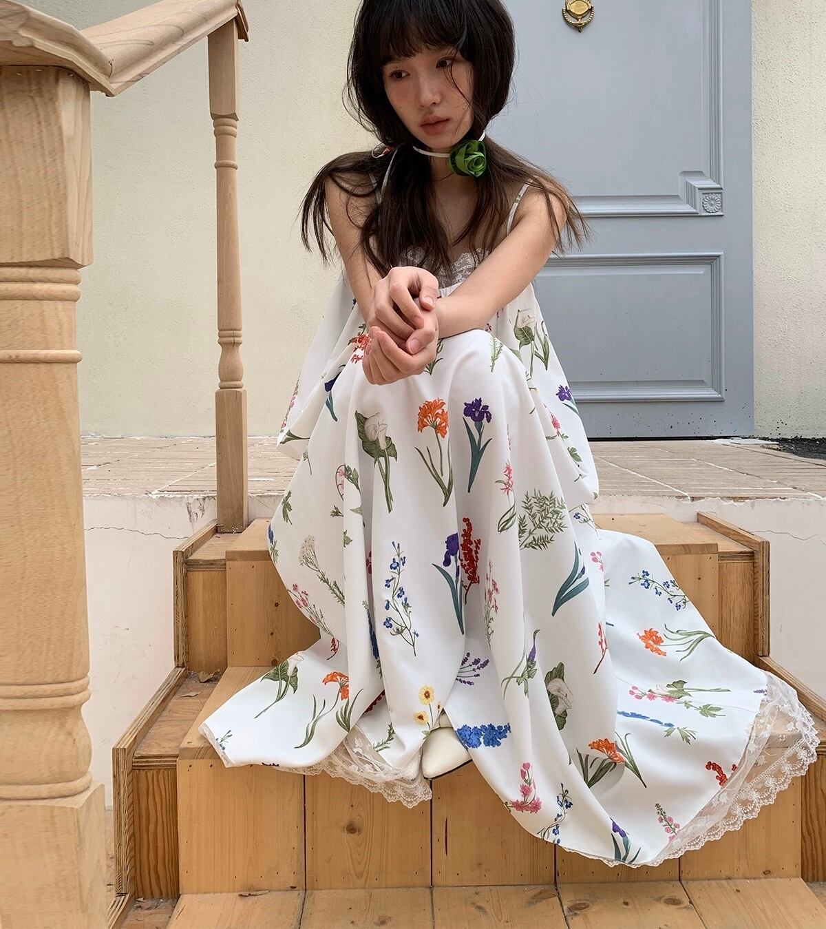 花柄 白 ホワイト キャミソール ワンピース エレガント