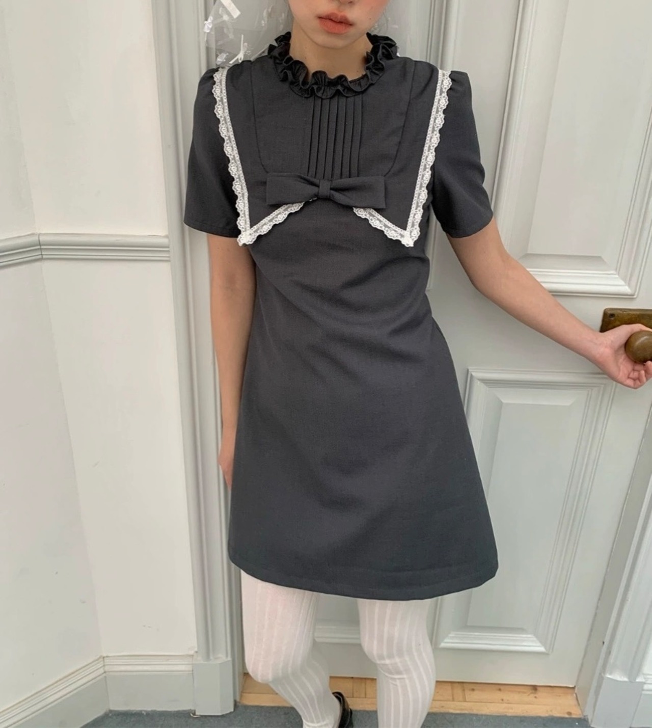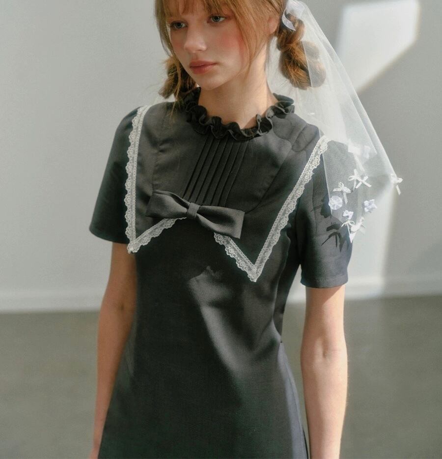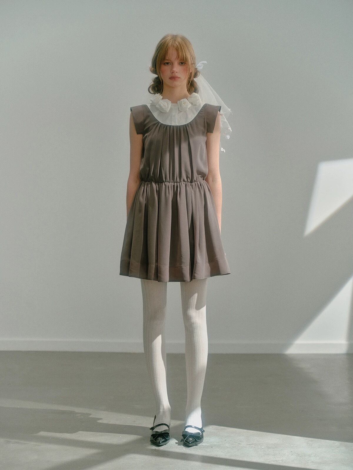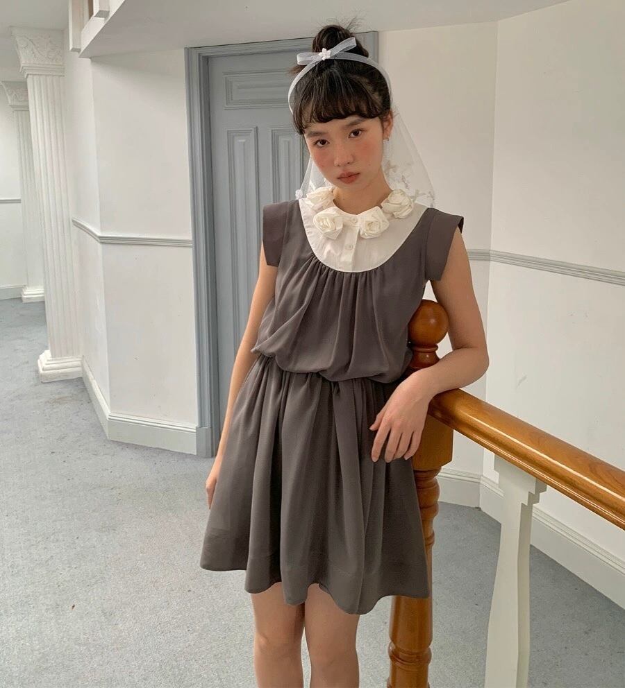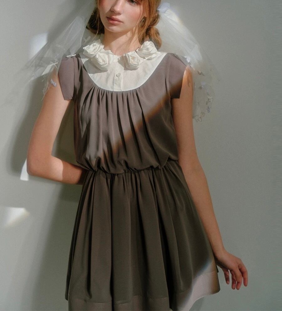バラ 薔薇 カメリア ブラウス 茶色 グレー 制服 ワンピース ガーリー