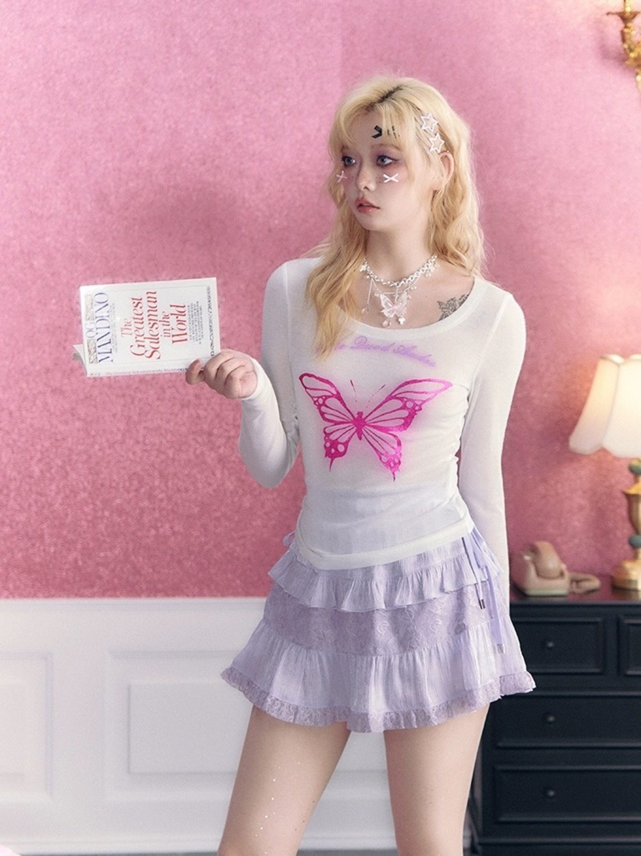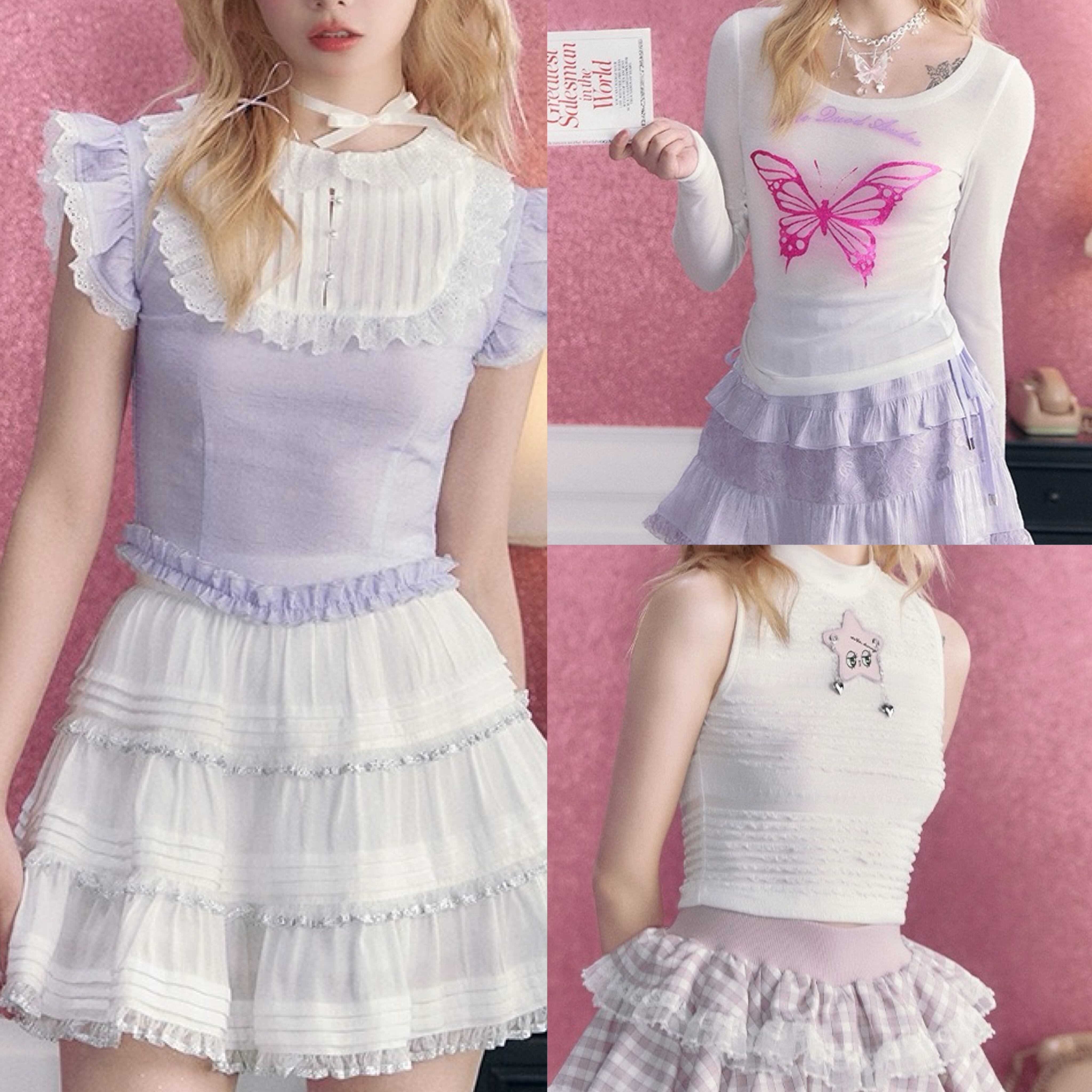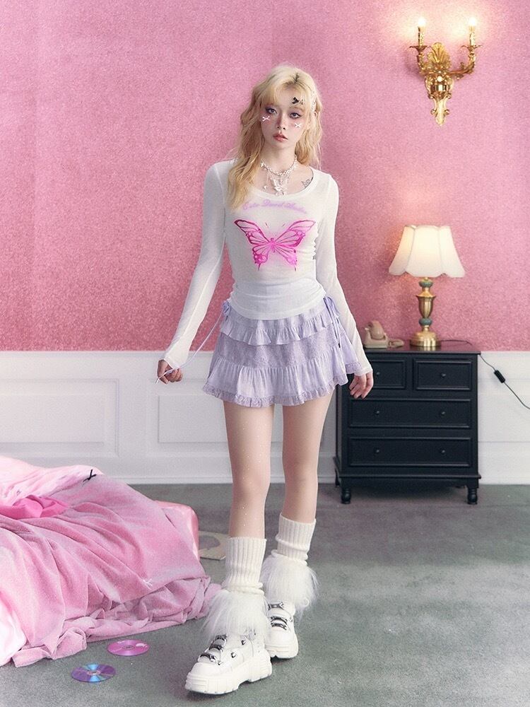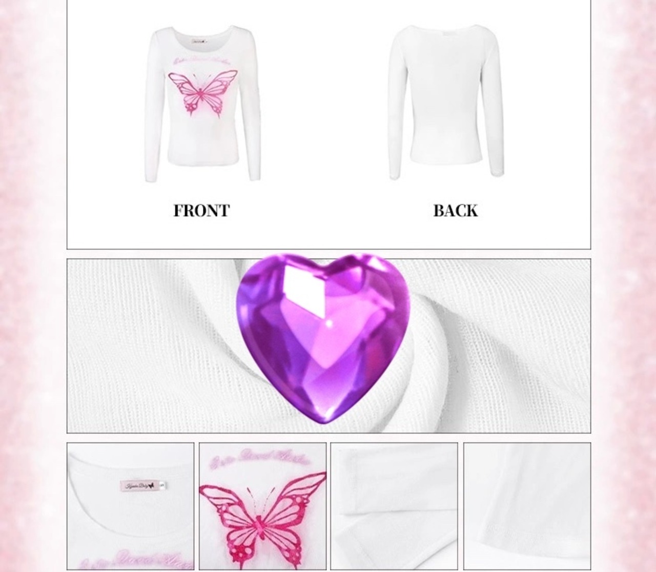 タンクトップ ブラウス Tシャツ ハート ピンク バタフライ 蝶々