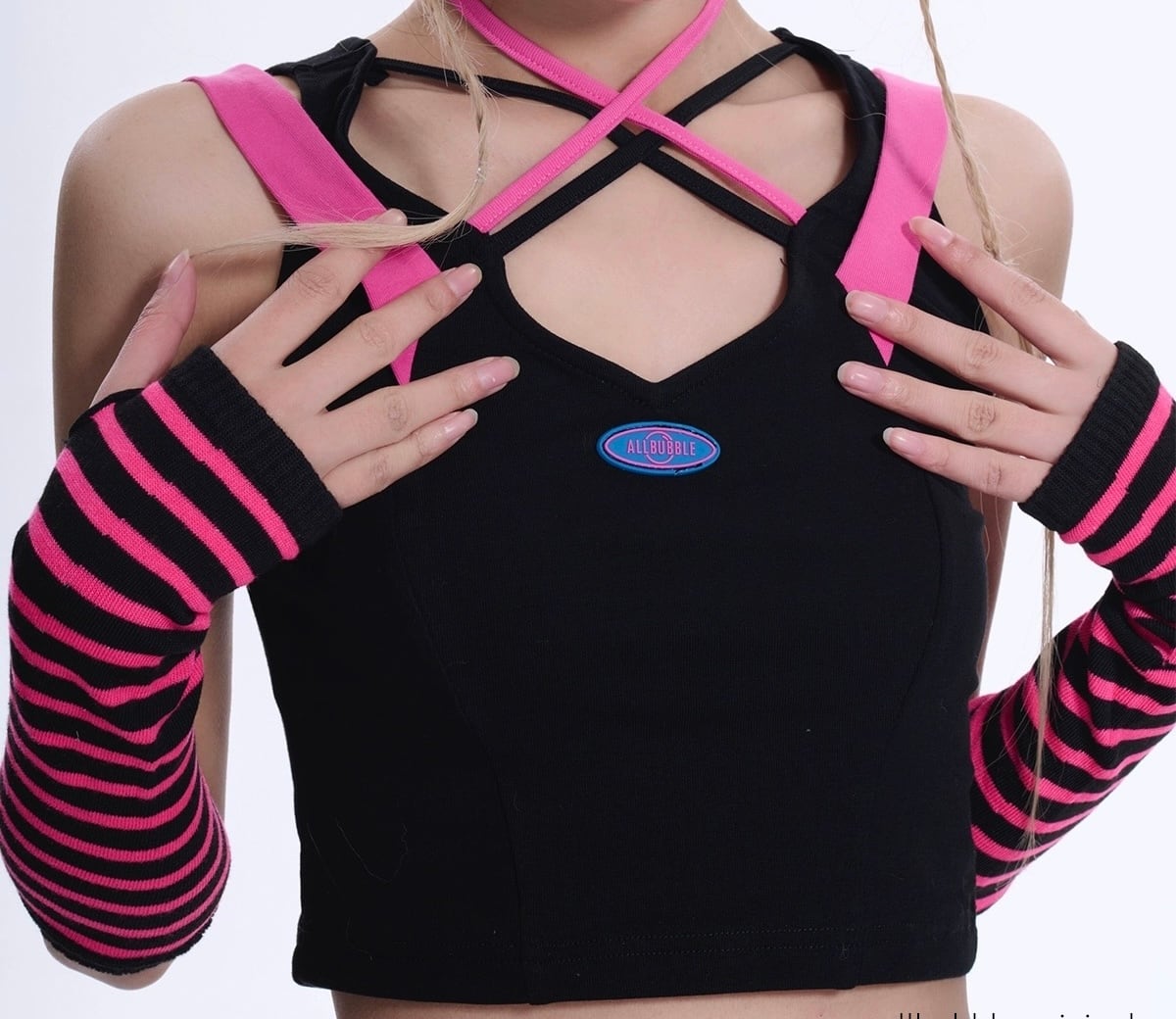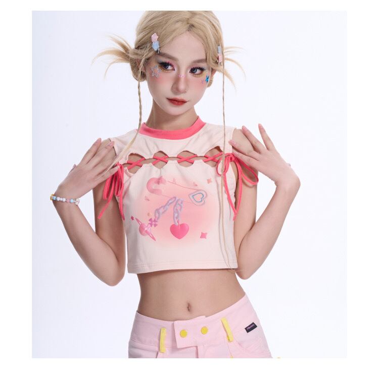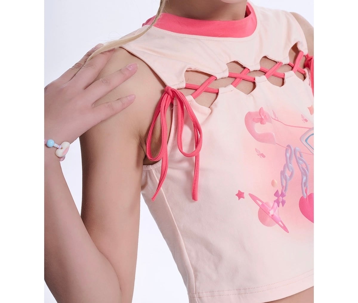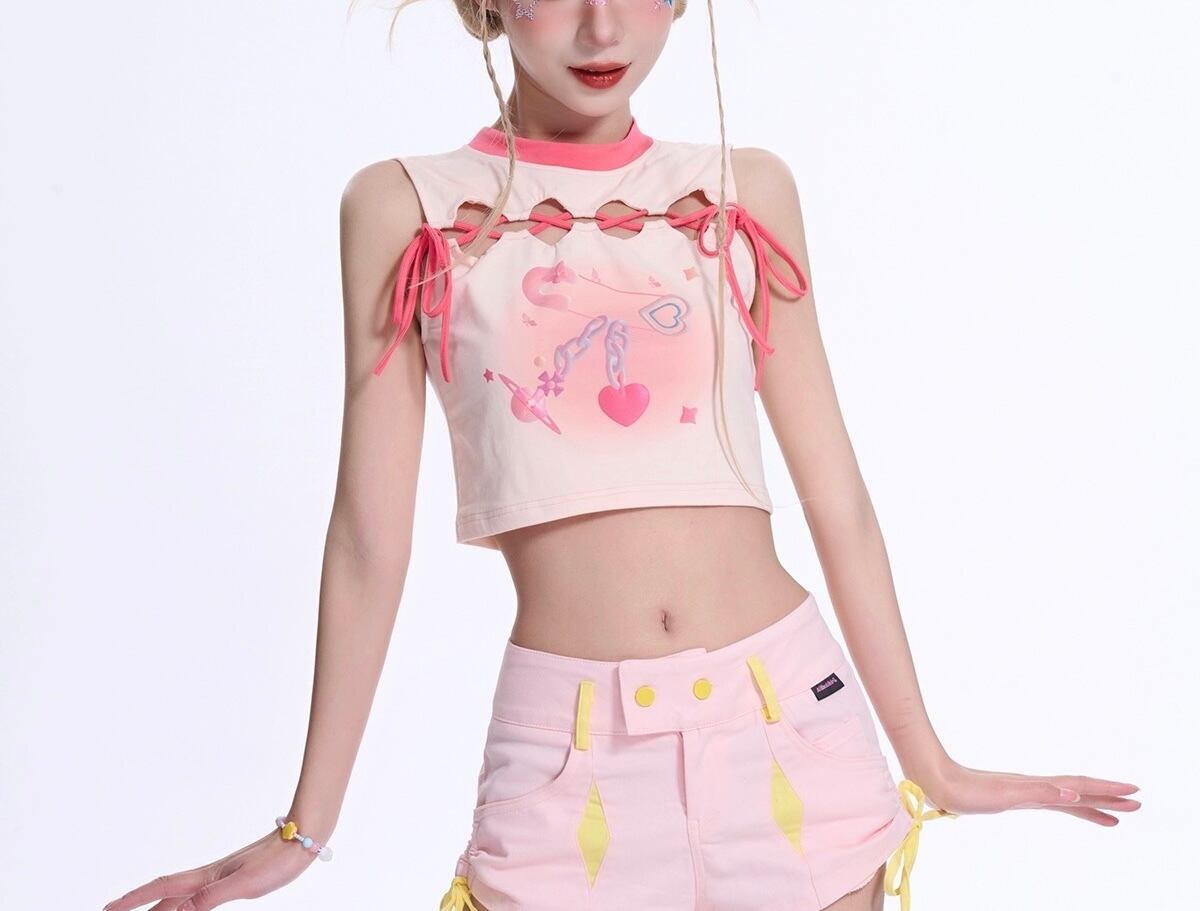 青 リボン ピンク 白 キャミソール ブラウス トップス バタフライ タンクトップ リボン