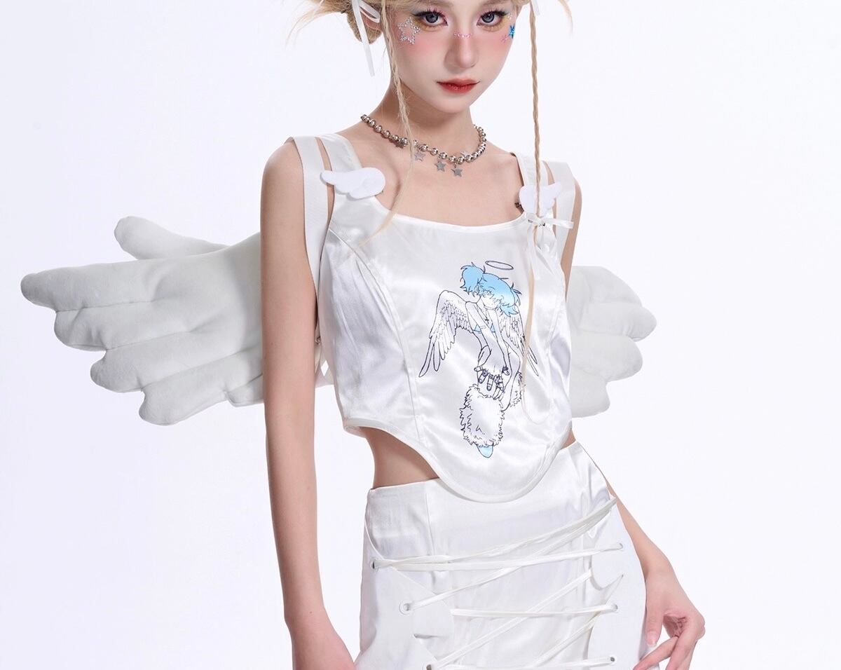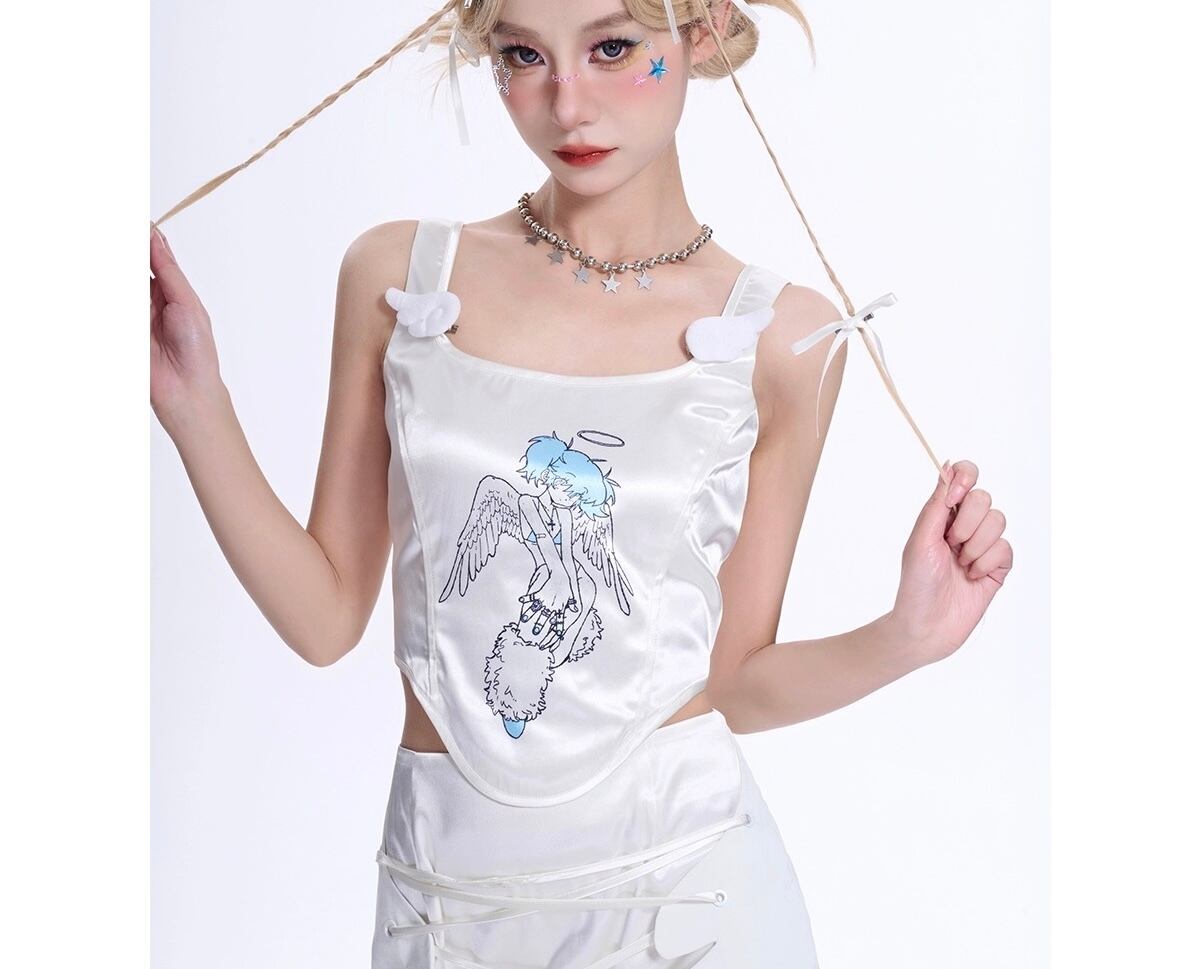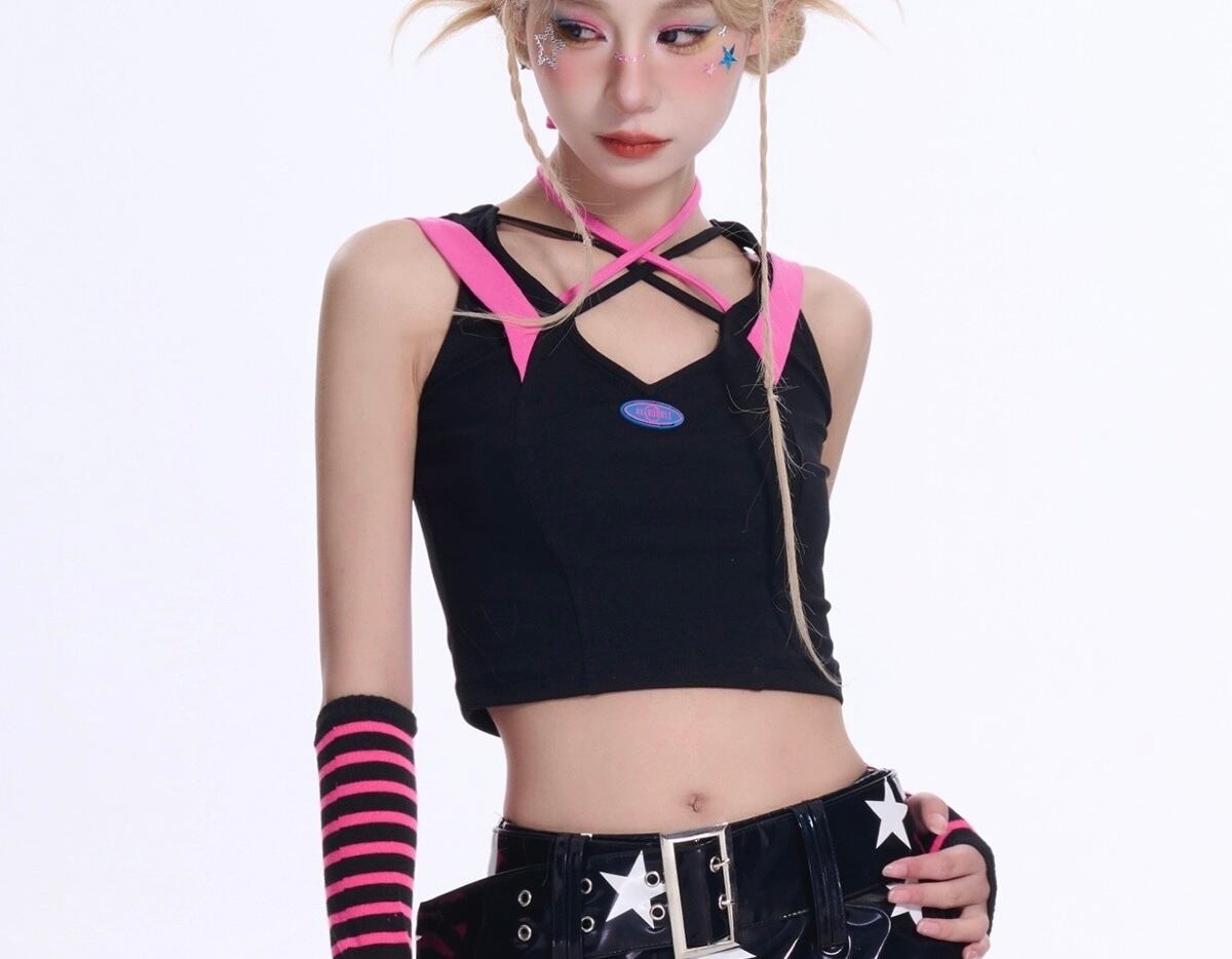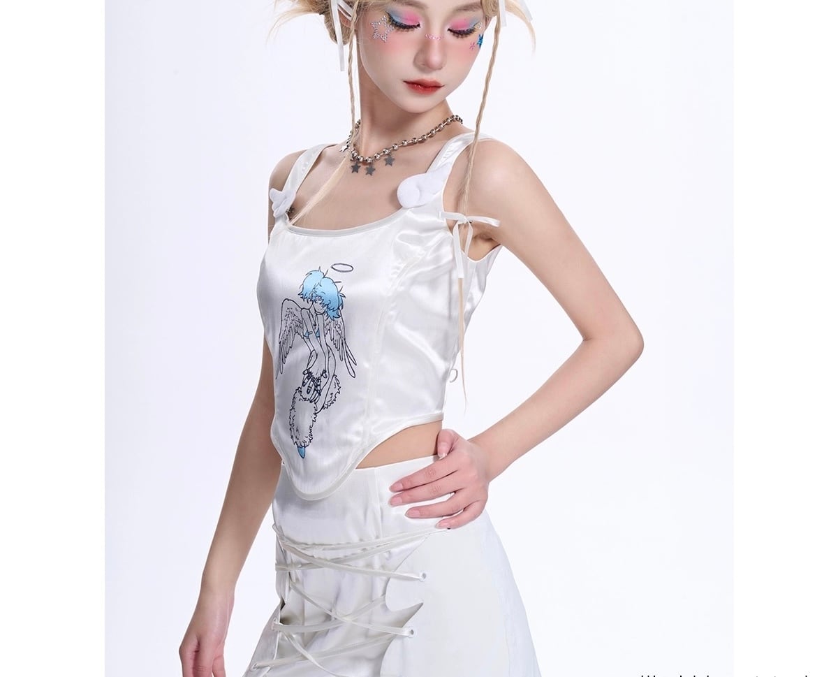 青 リボン ピンク 白 キャミソール ブラウス トップス バタフライ タンクトップ リボン