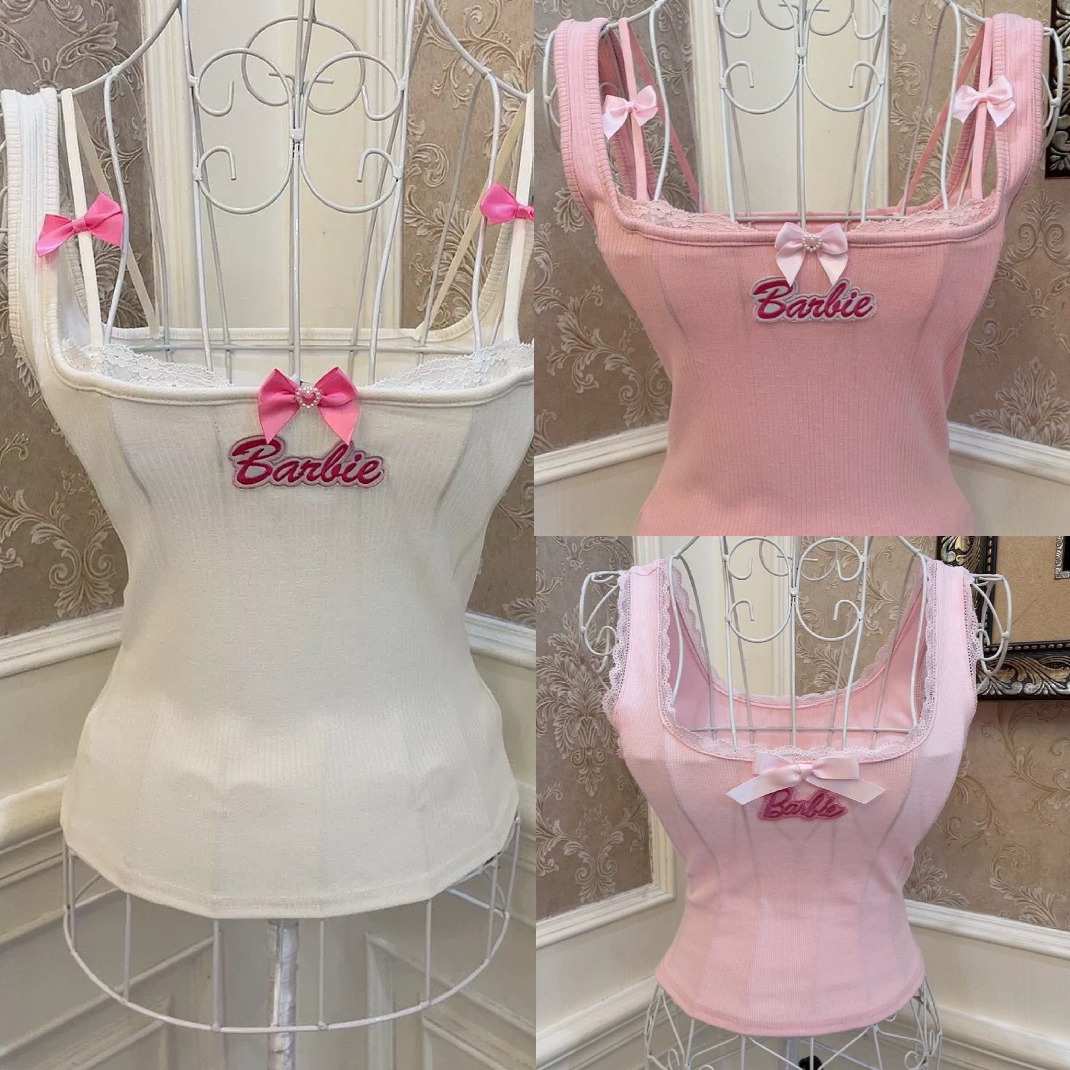 ピンク 白 リボン タンクトップ ガーリー 黒 白 リボン キャミソール ブラウス 姫 トップス ガーリー コスプレ ハート ロリータ 姫 コスプレトップス 可愛い 姫 ブラウス 原宿 ホルダーネック キャミソール ブラウス
