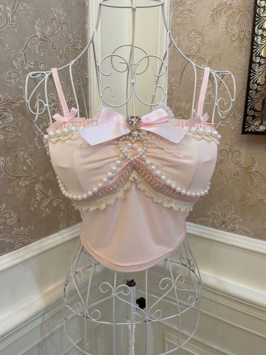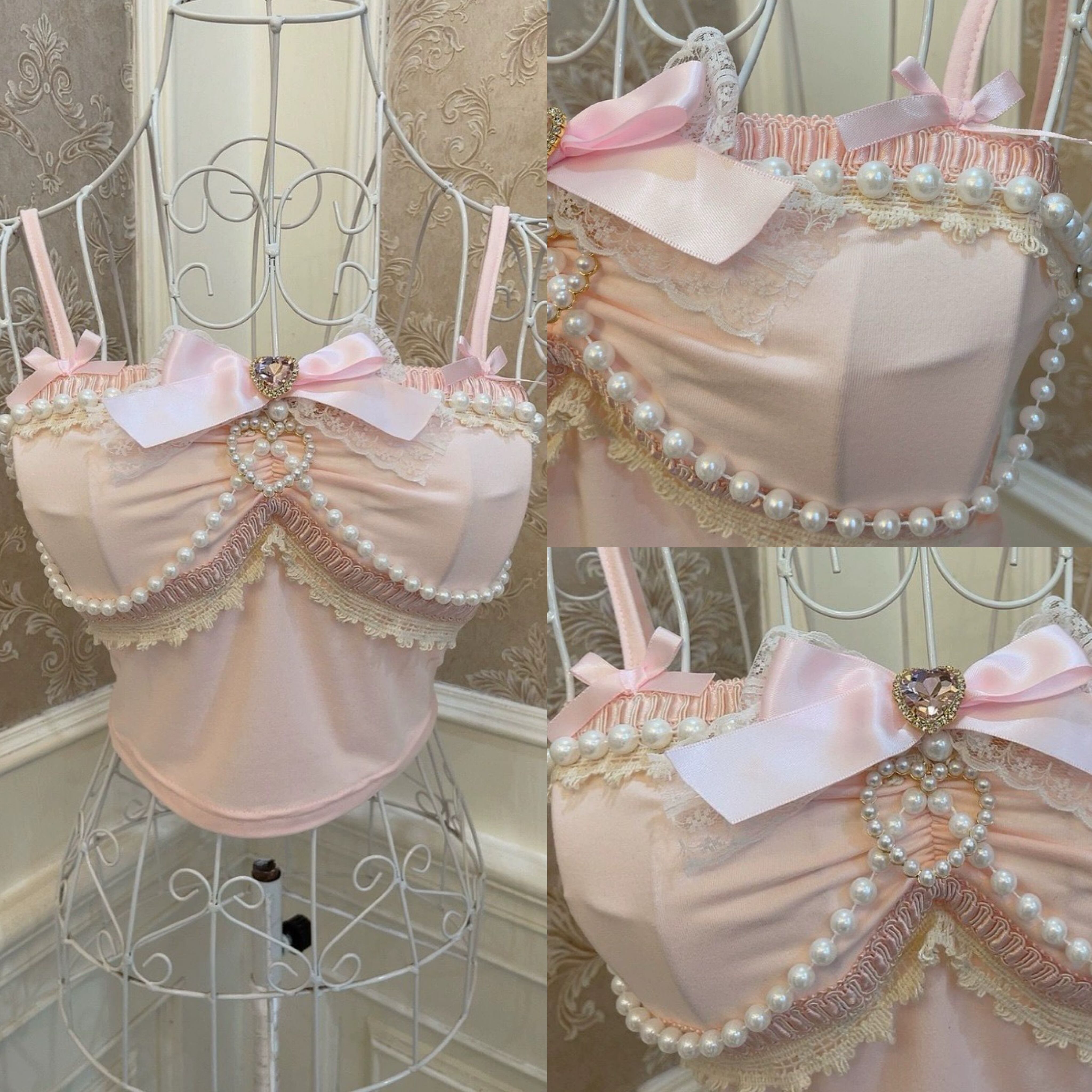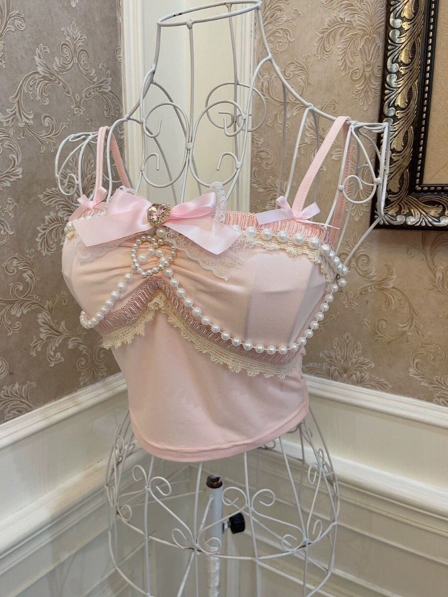 ピンク パール キャミソール トップス 黒 白 リボン キャミソール ブラウス 姫 トップス ガーリー コスプレ ハート ロリータ 姫 コスプレトップス 可愛い 姫 ブラウス 原宿 ホルダーネック
