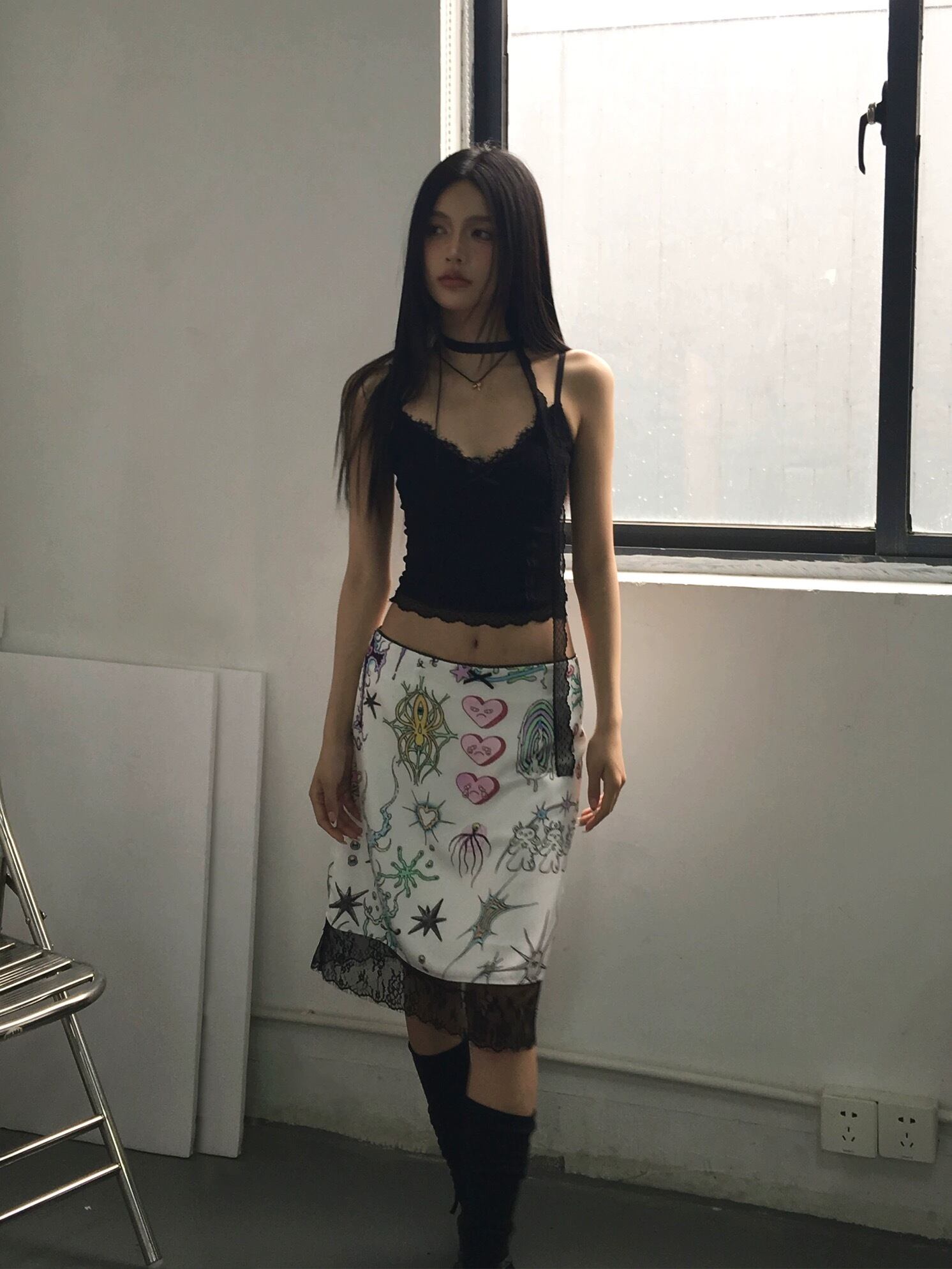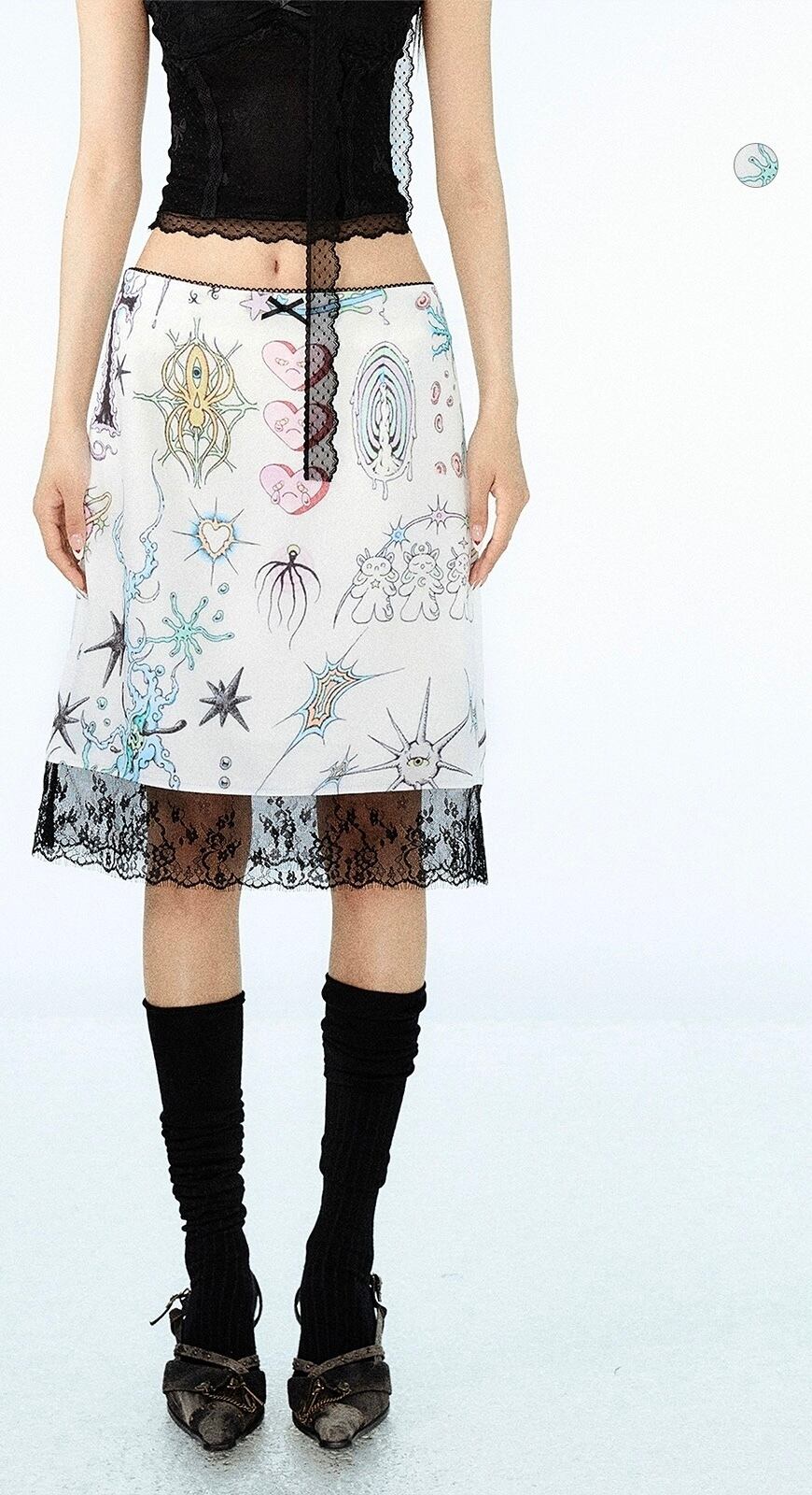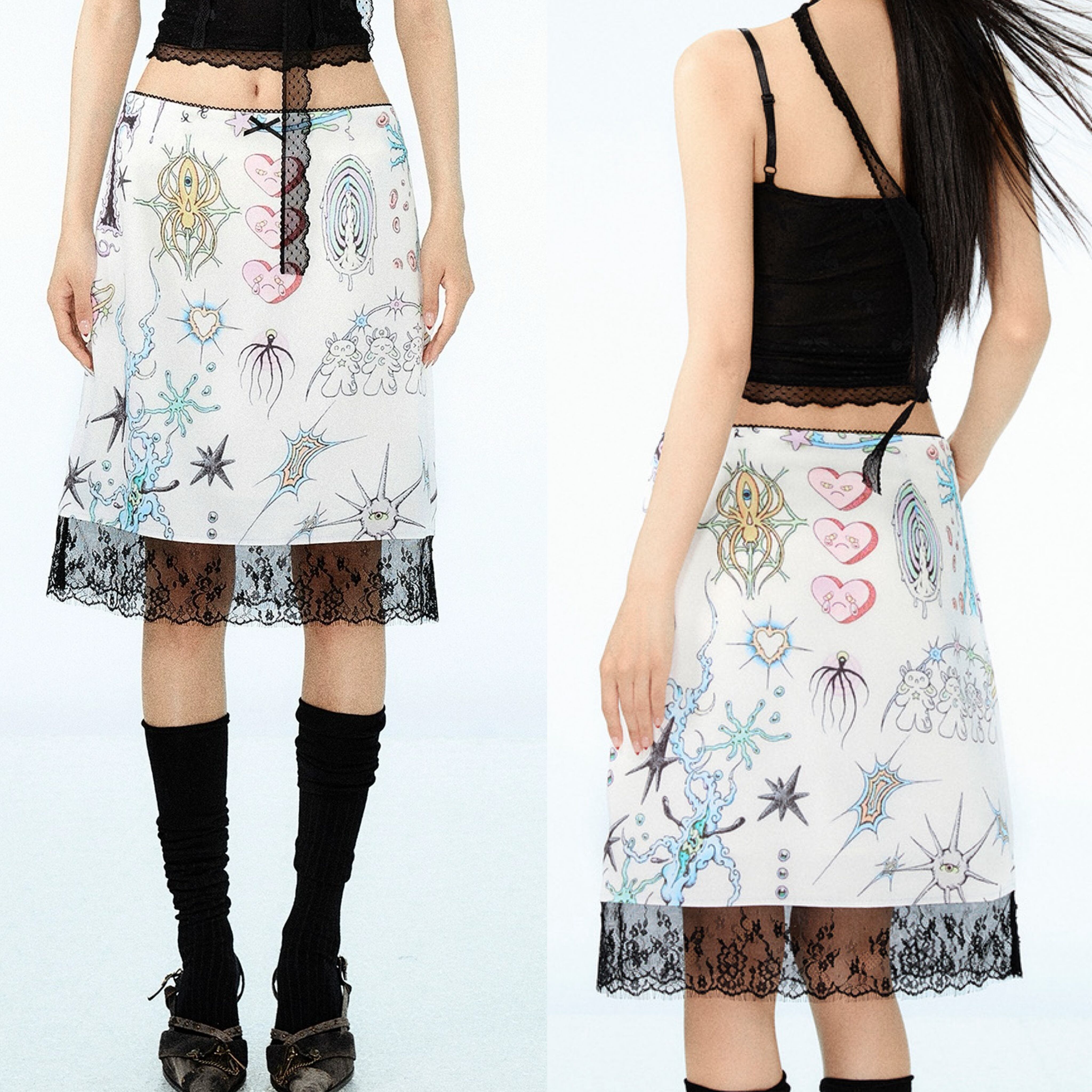 ハート 落書き スカート ボトムス ガーリー 白 カラフル