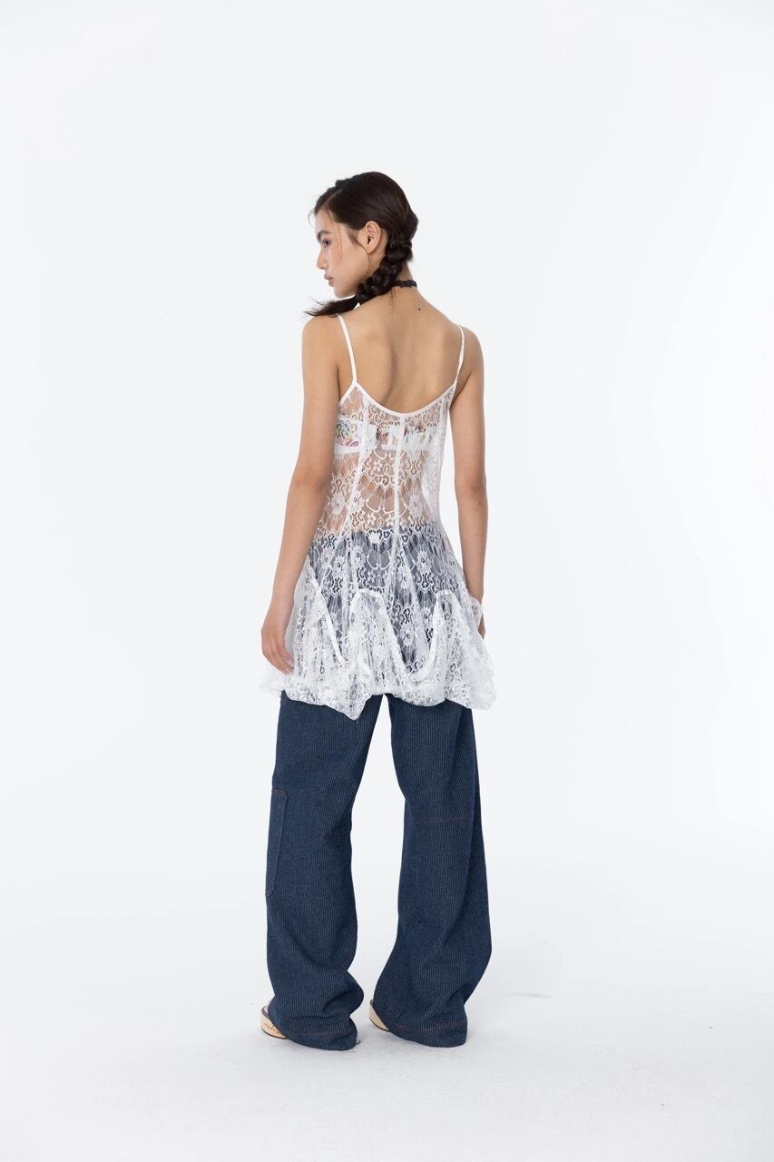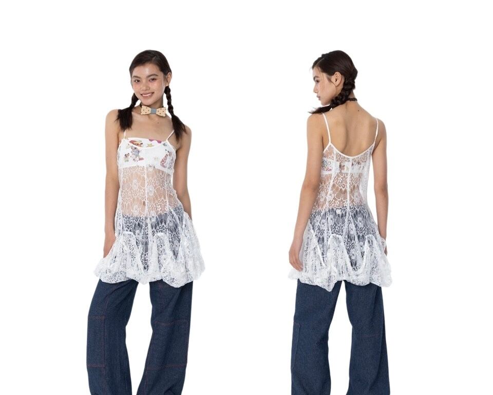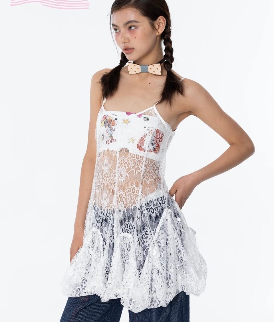 白 ホワイト キャミソール ガーリー 可愛い ワンピース ブラウス チュニック シースルー