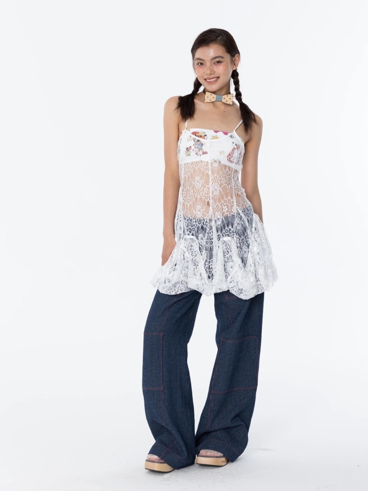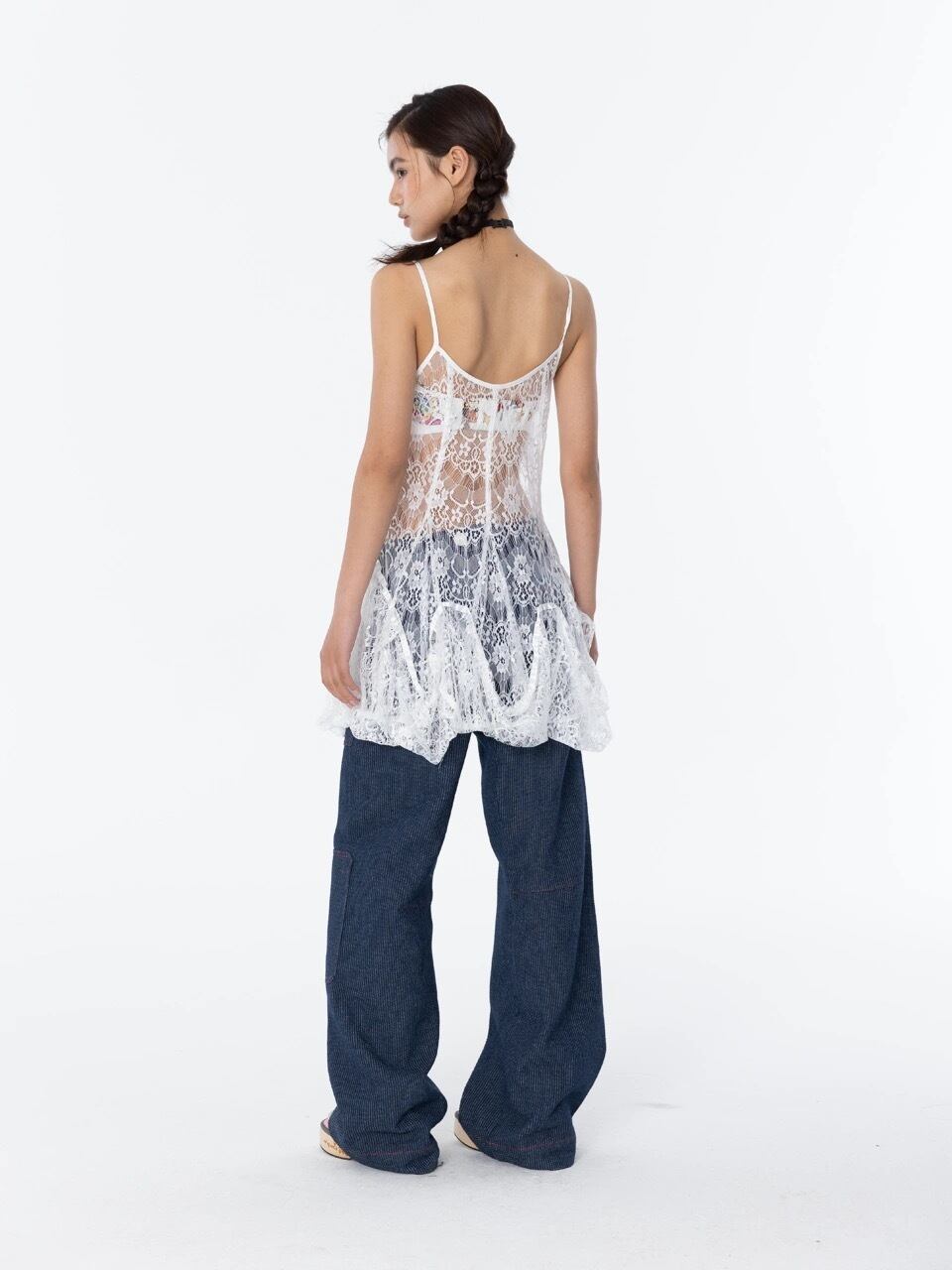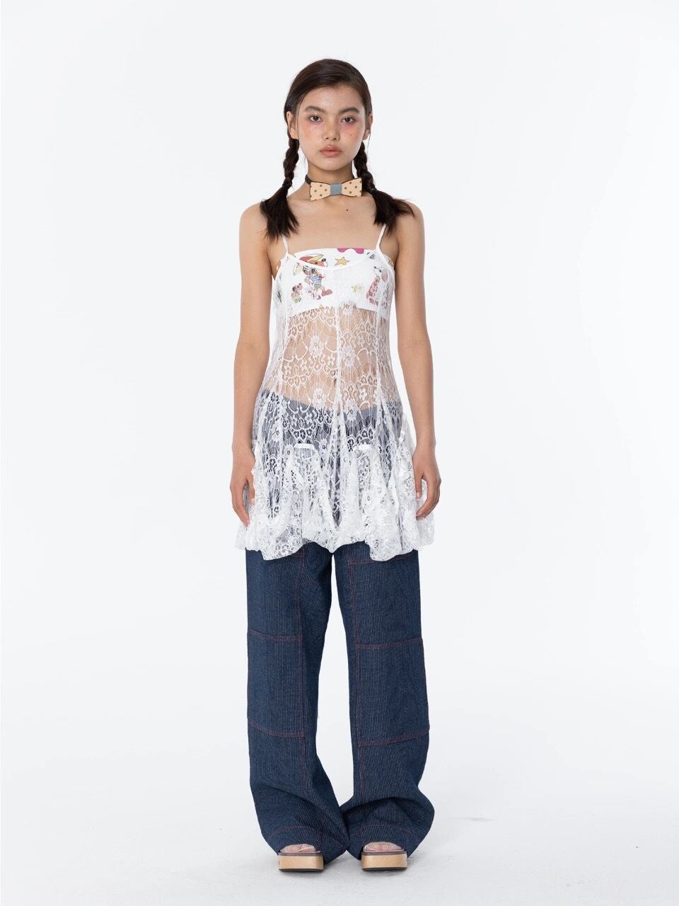 白 ホワイト キャミソール ガーリー 可愛い ワンピース ブラウス チュニック シースルー