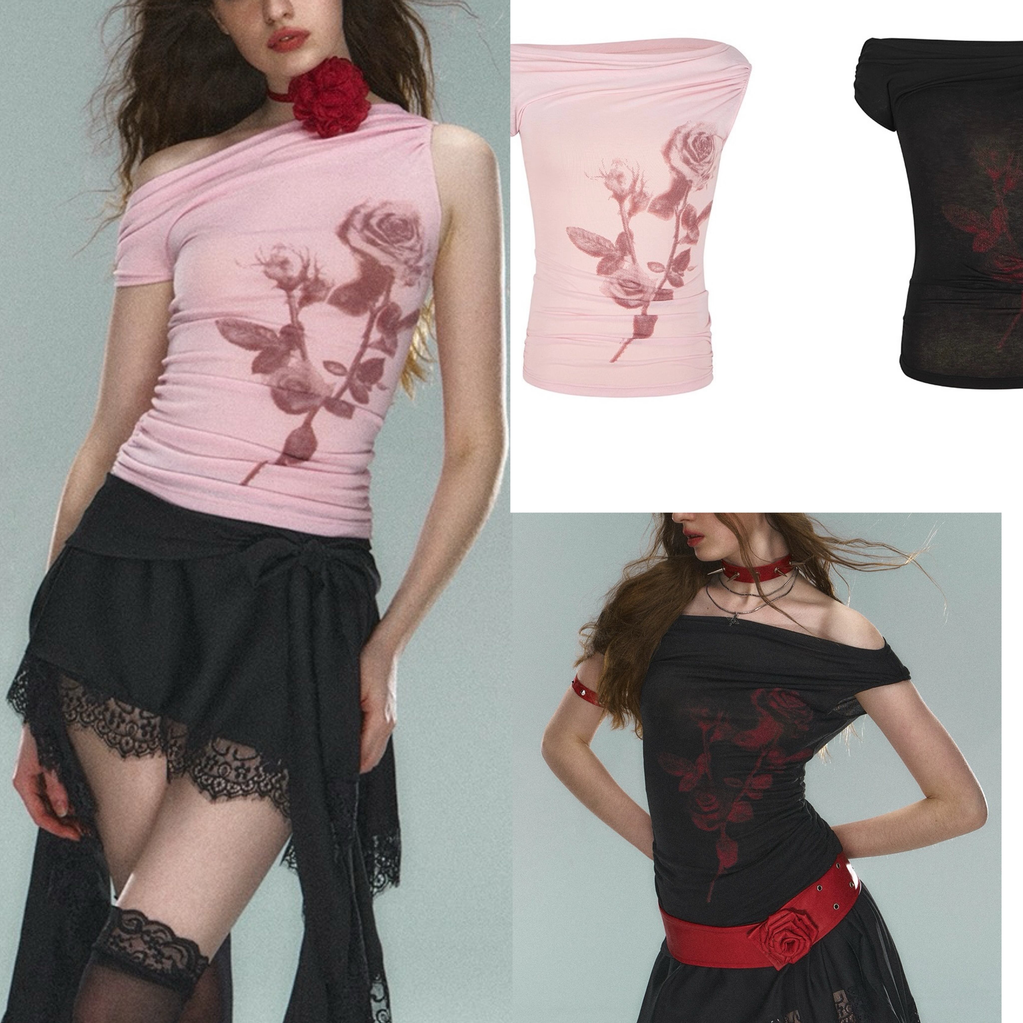 タンクトップ ブラウス ピンク 黒 赤 フラワー トップス