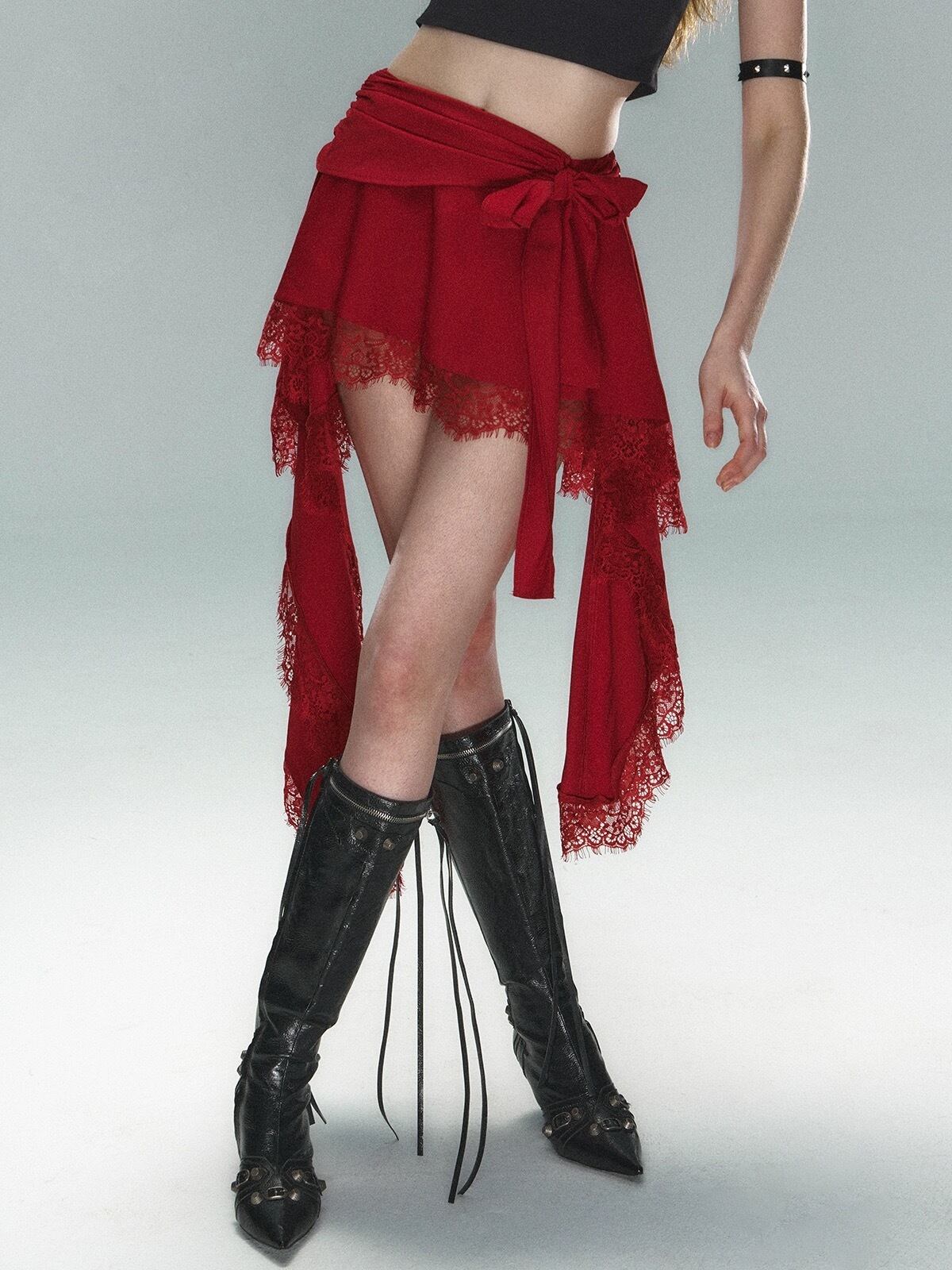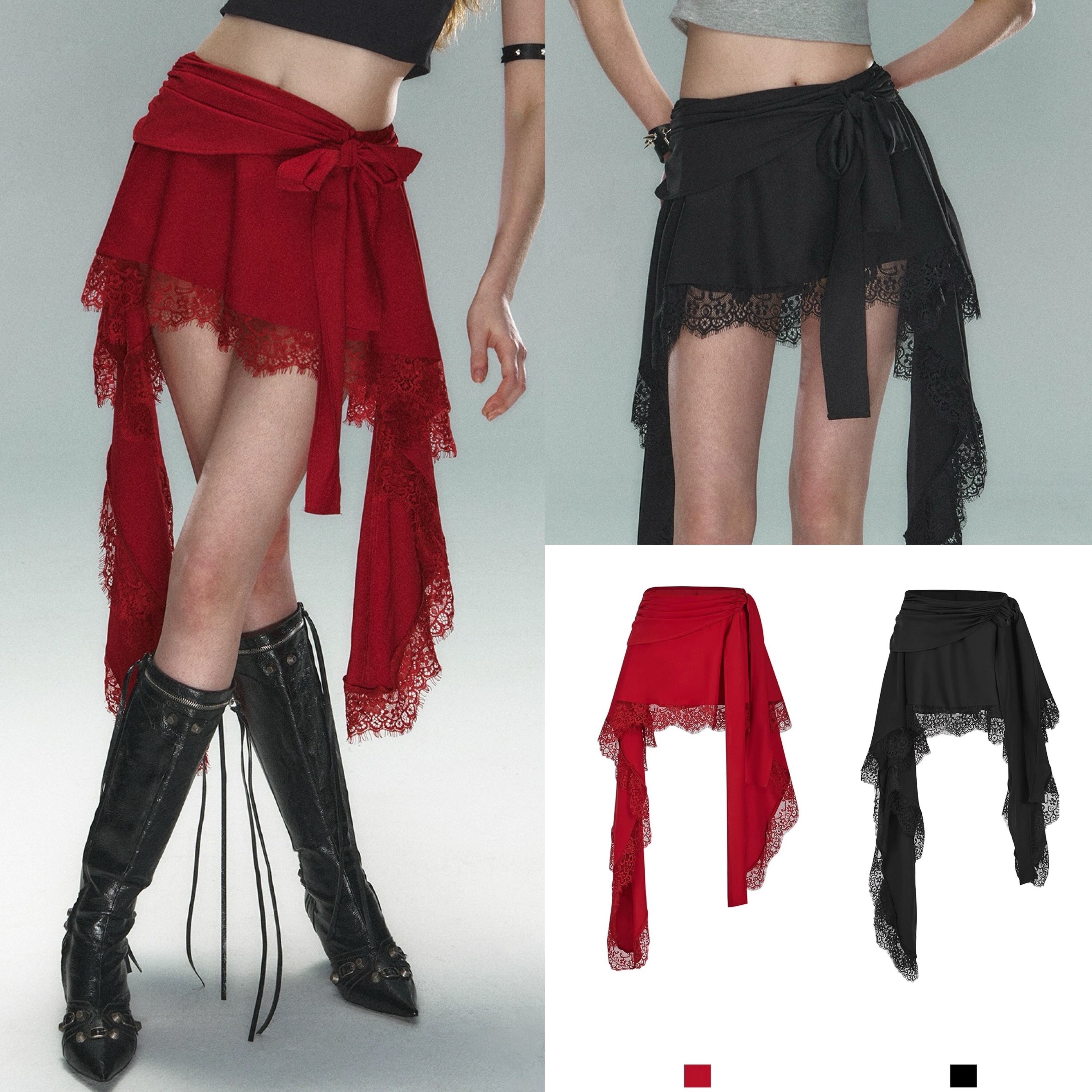 ミニスカート 黒 赤 ボトムス エレガント リボン