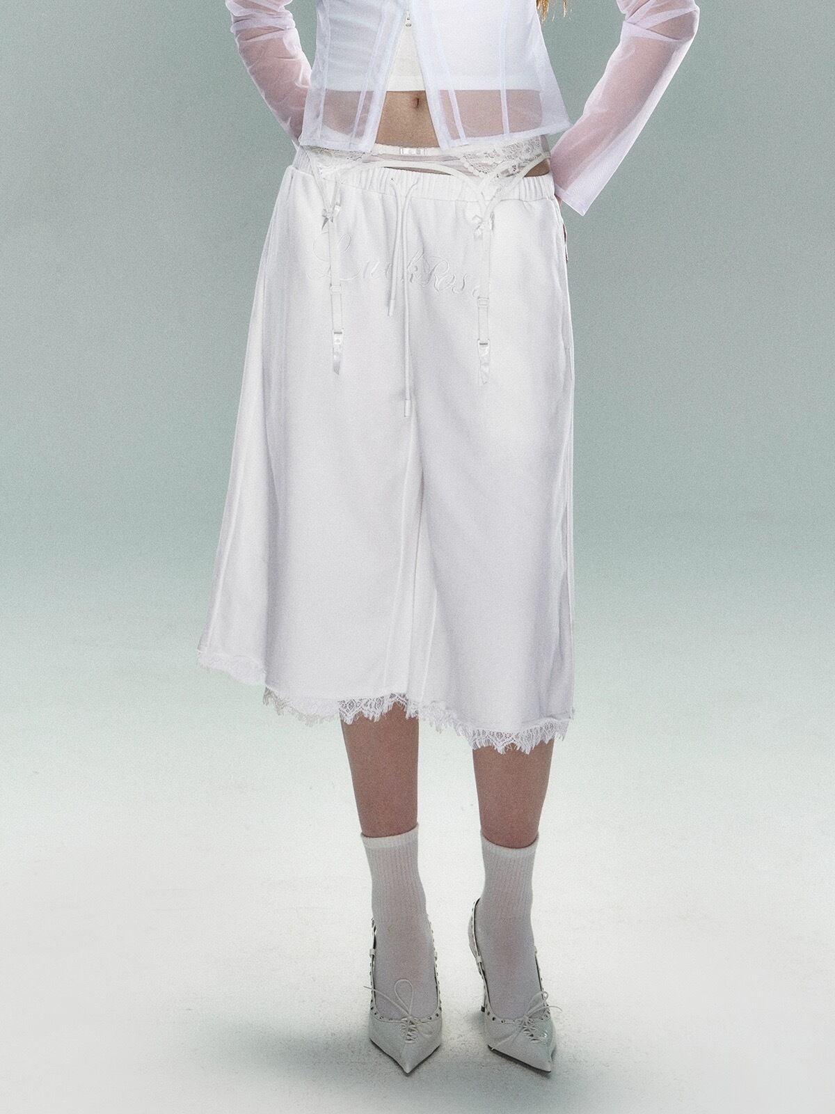 白 黒 スウェット パンツ リボン カジュアル ボトムス