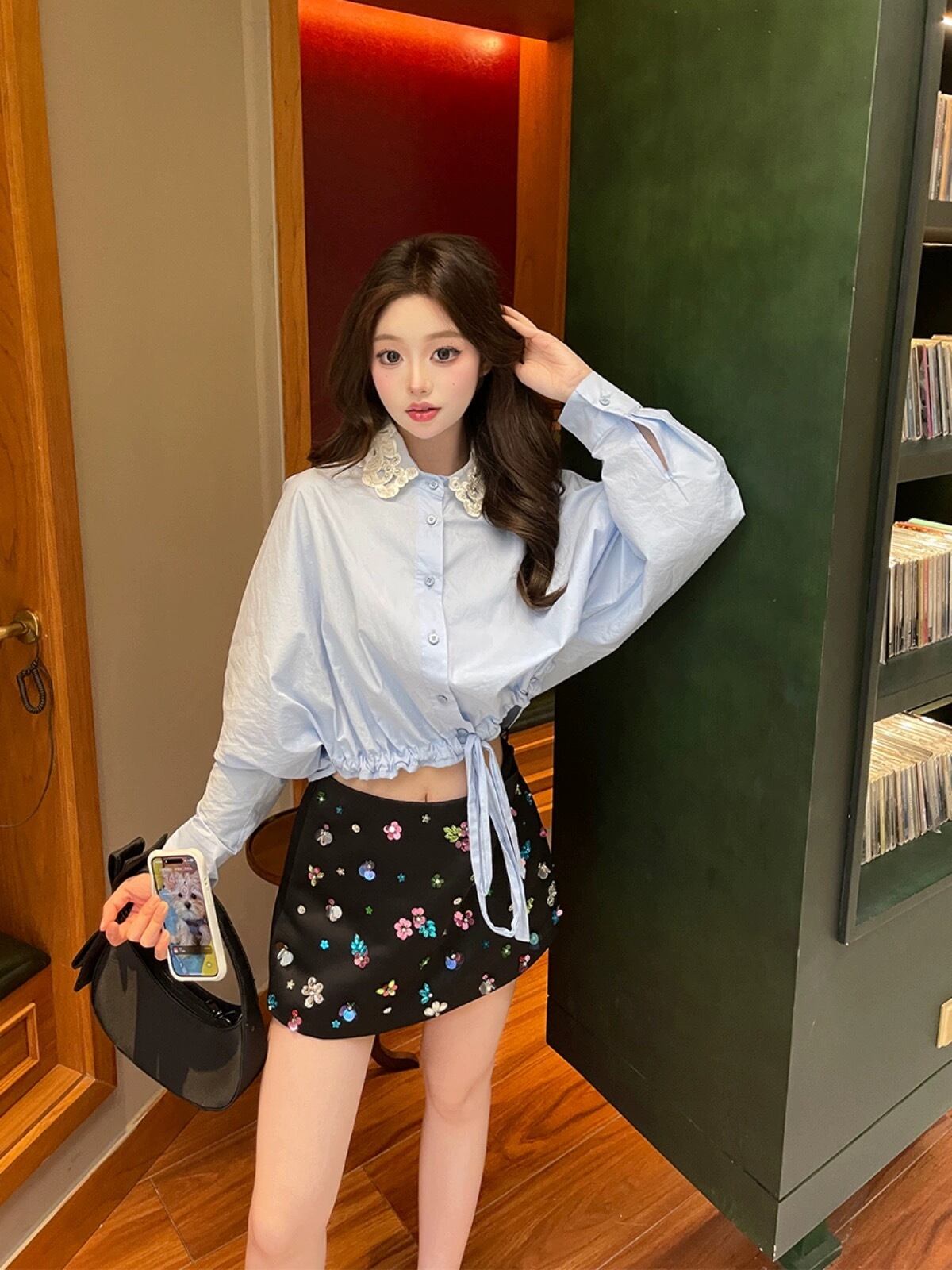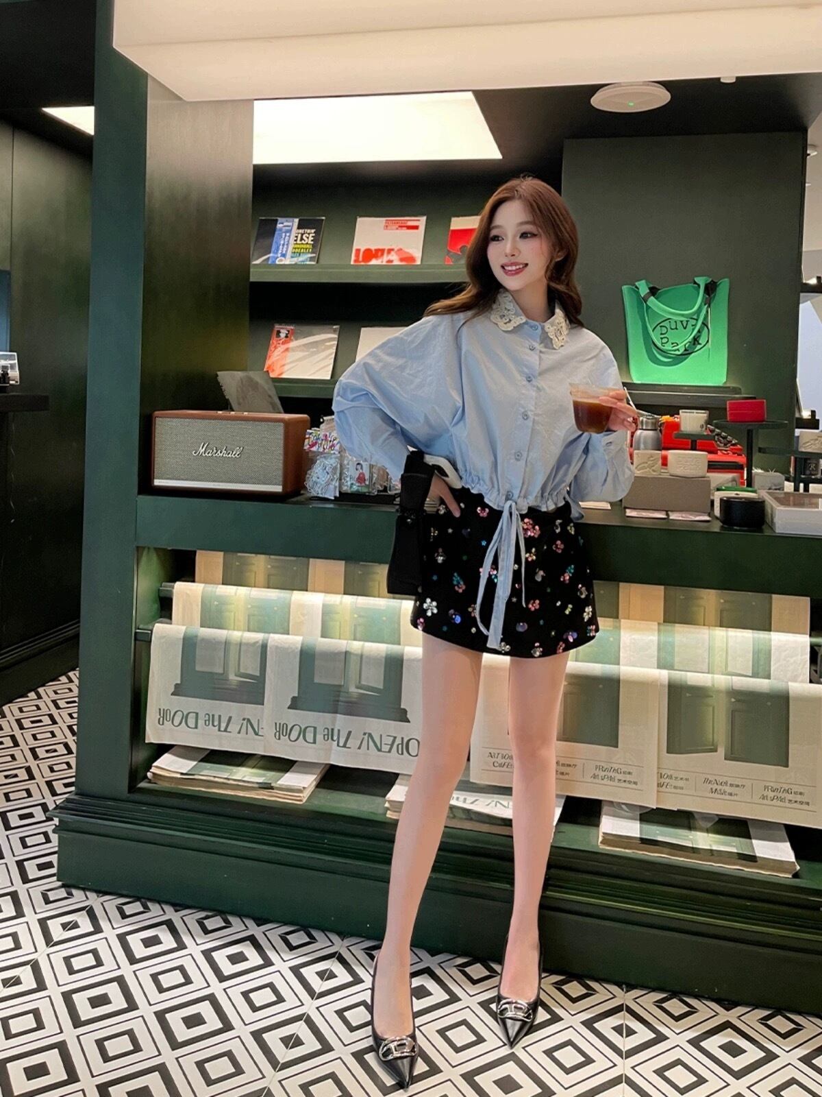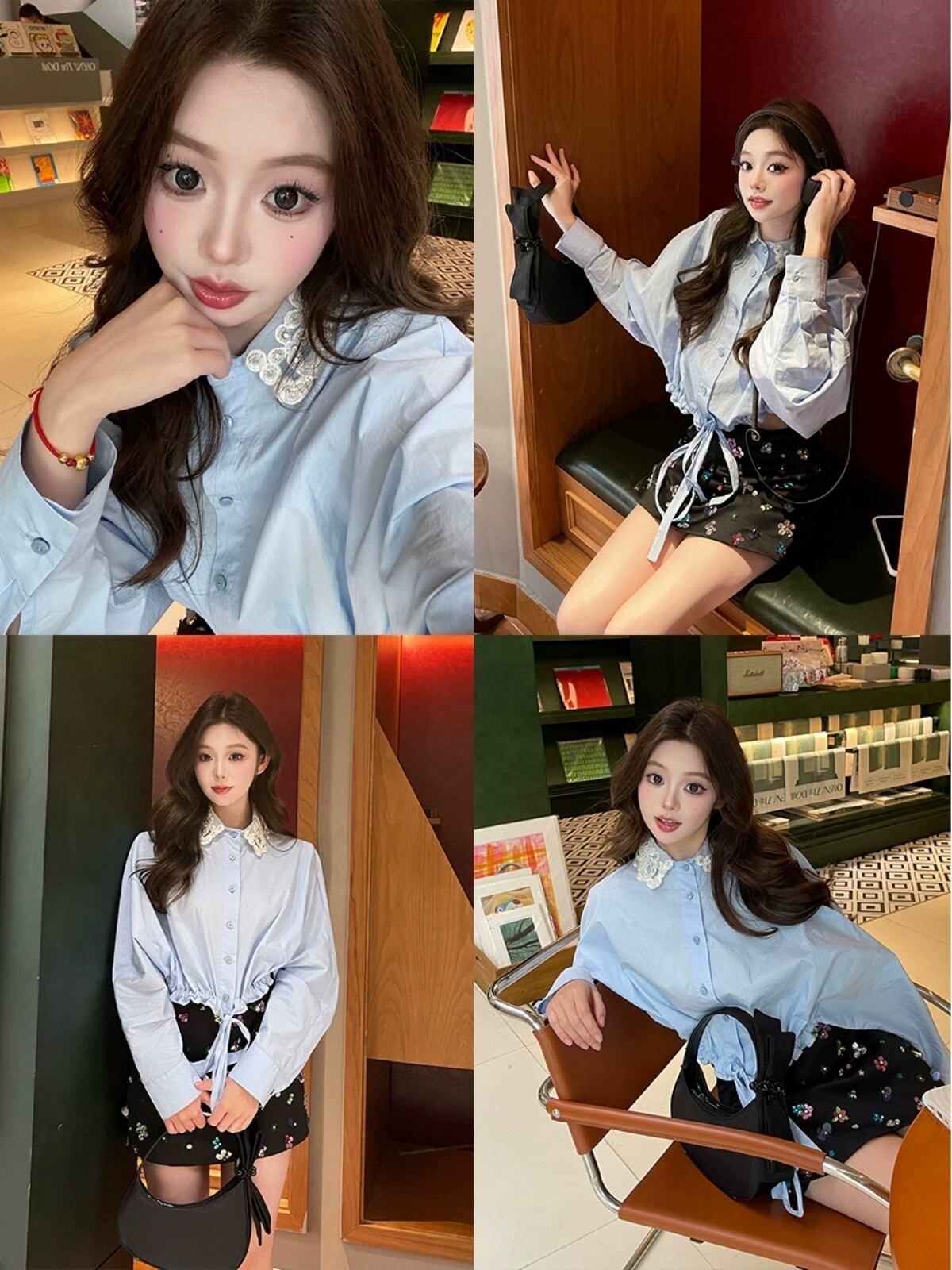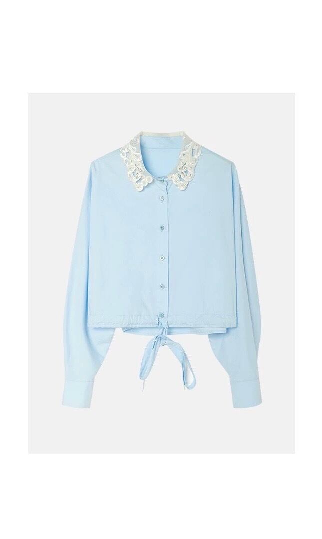【ブラウス】エレガント 水色 ガーリー トップス シャツ リボン