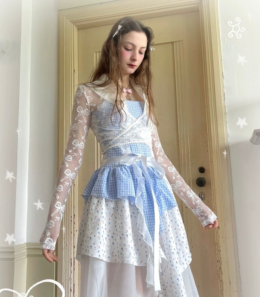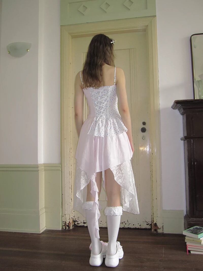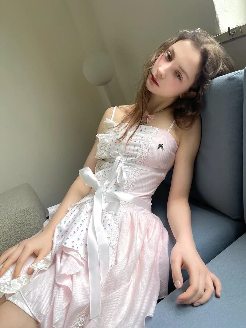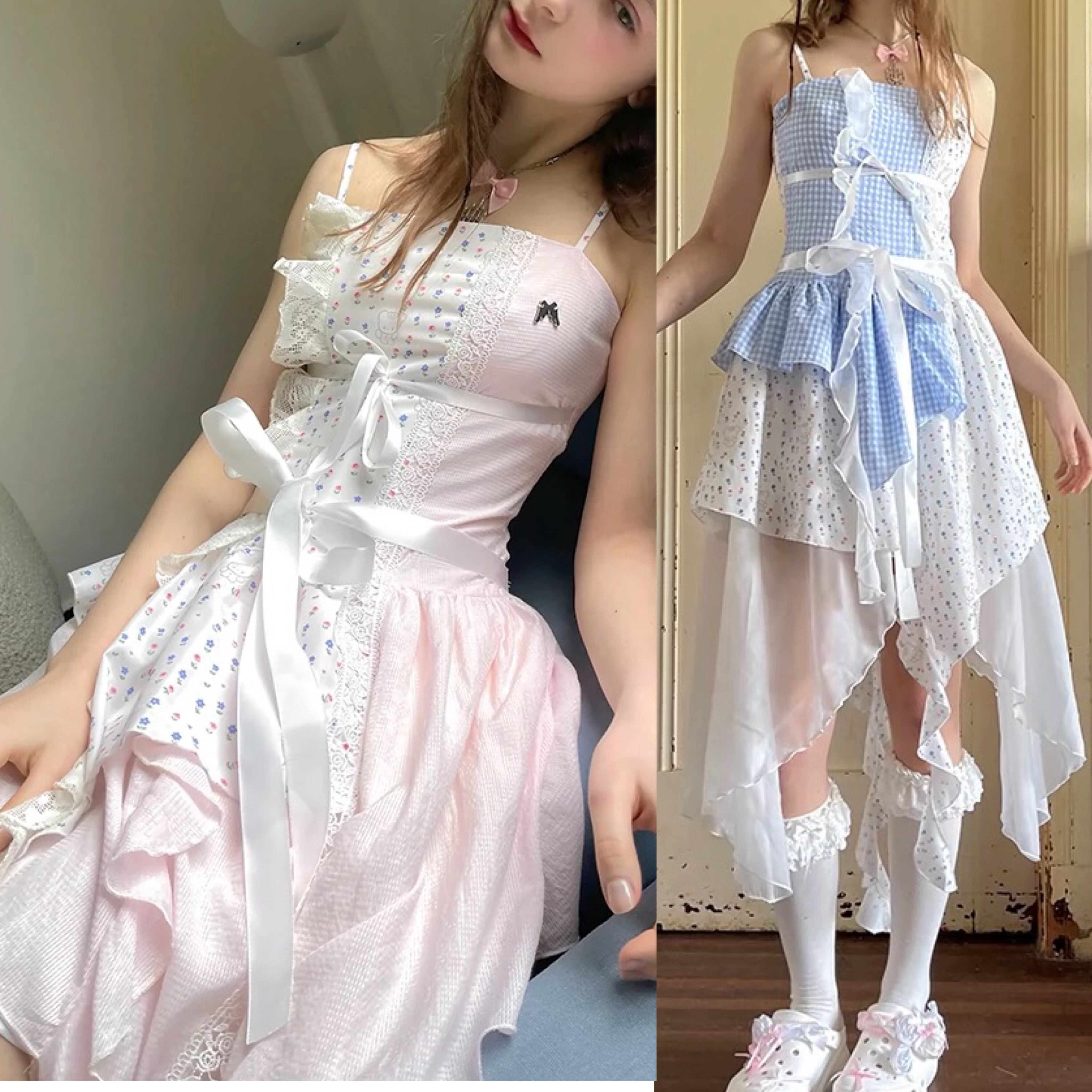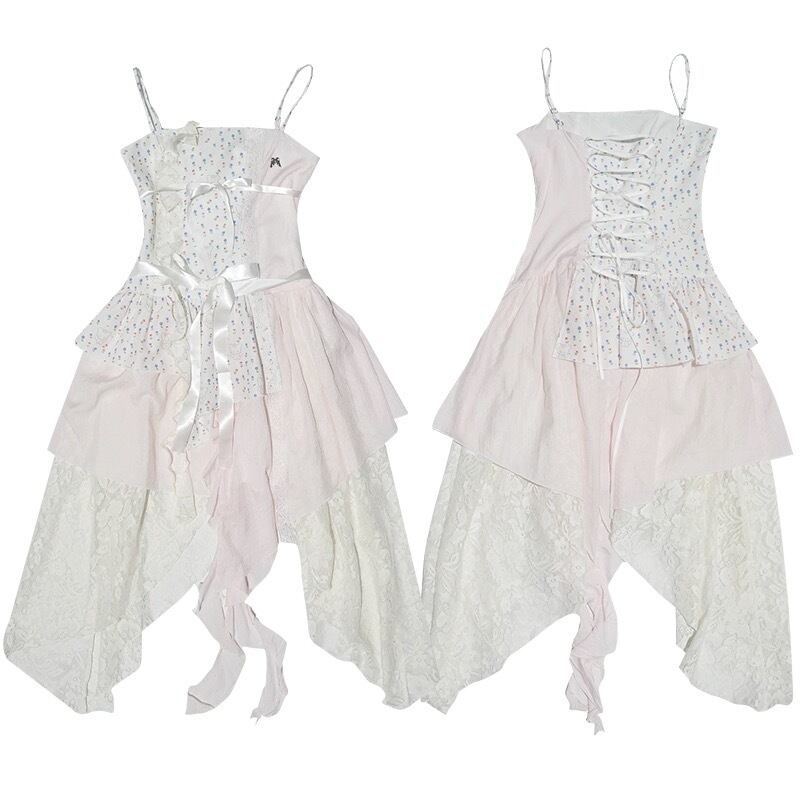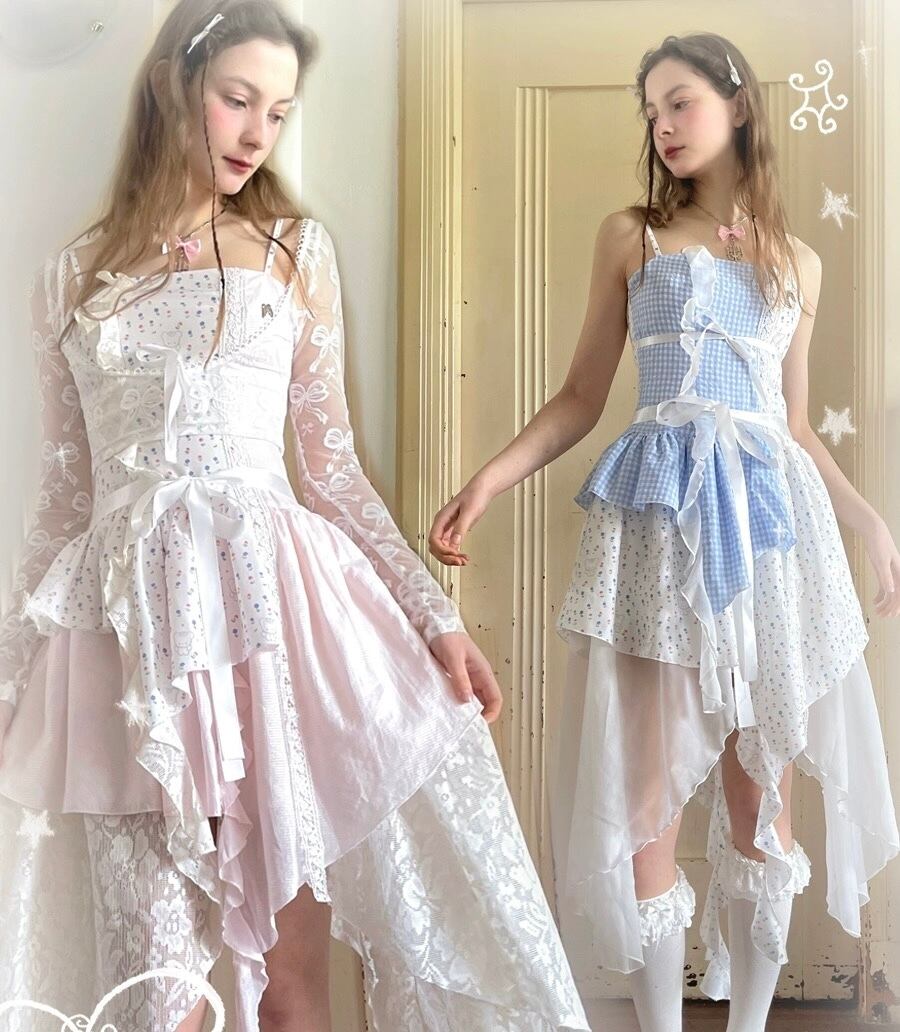 水色 ピンク ガーリー リボン キャミソール ワンピース 姫 スカート