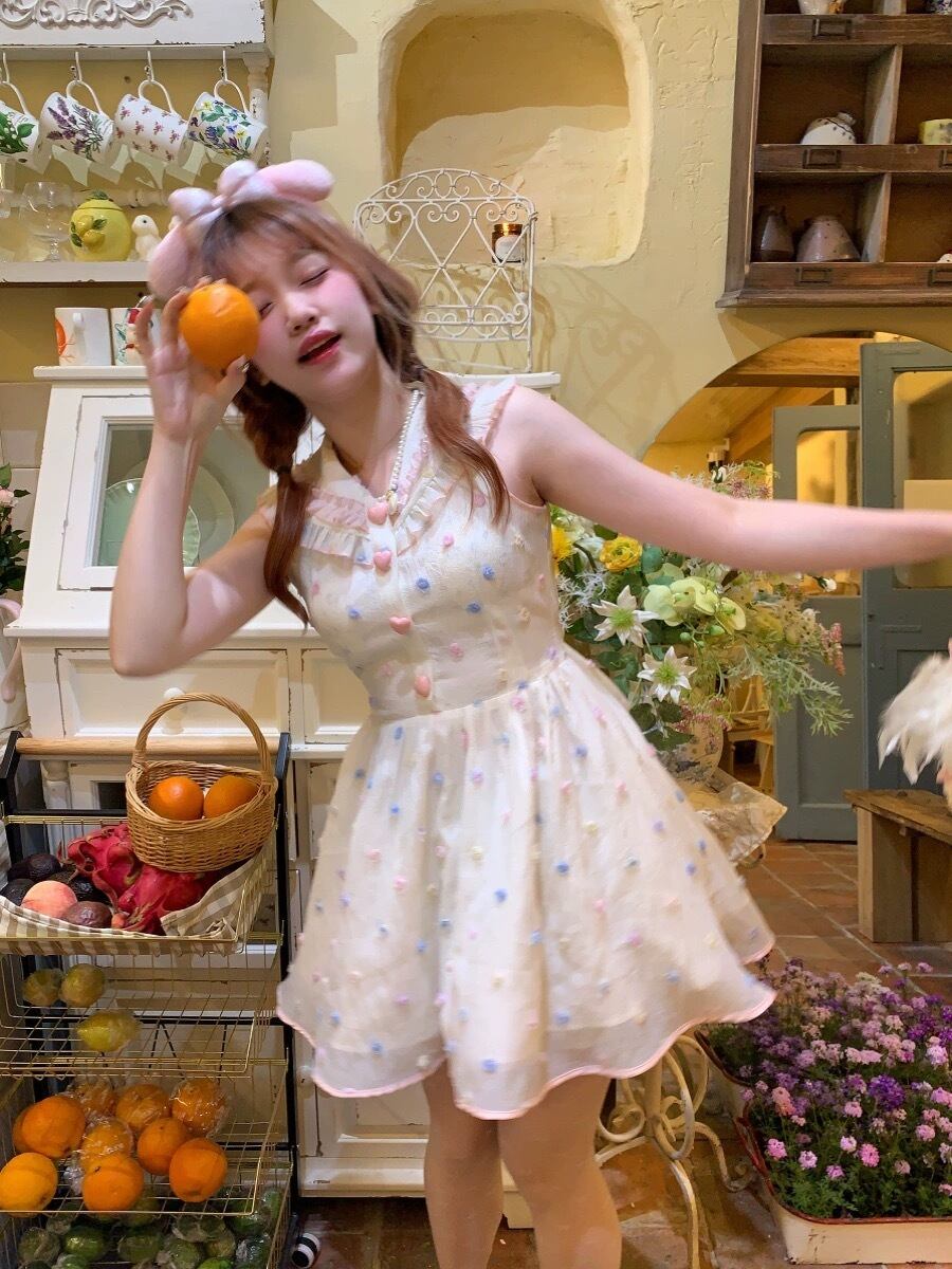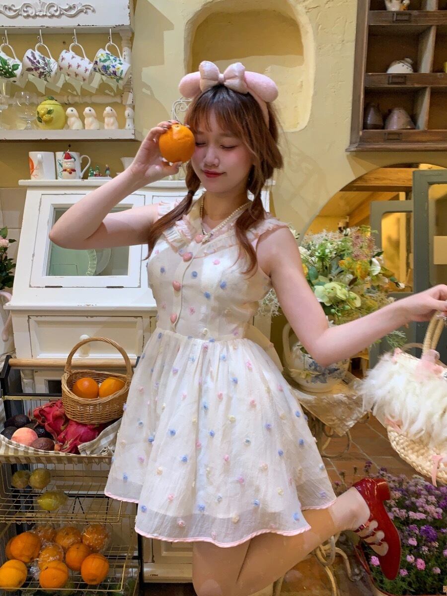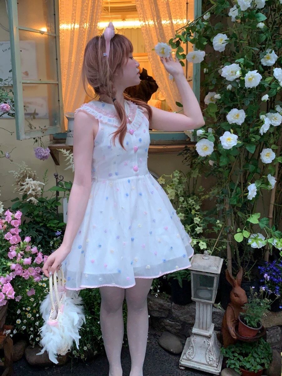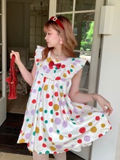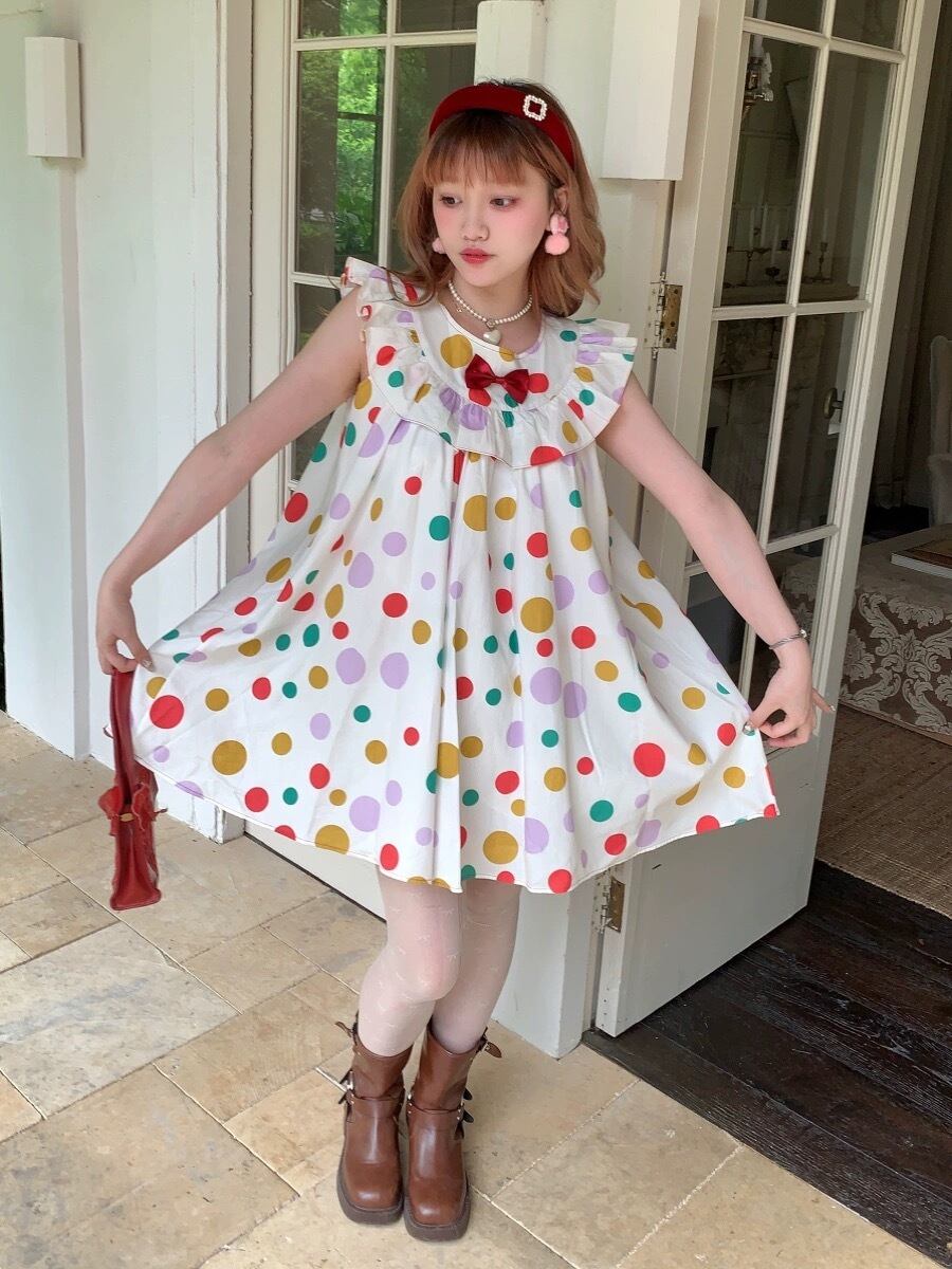 水玉 カラフル ワンピース ドット ブラウス ガーリー 姫 リボン