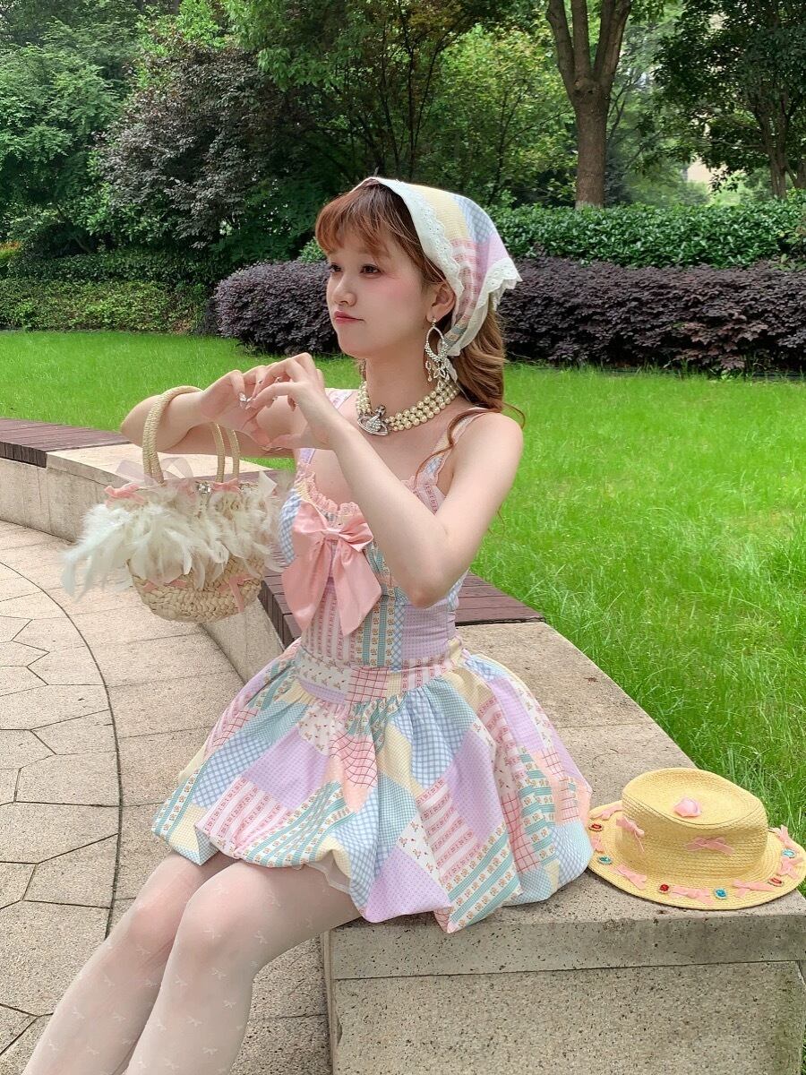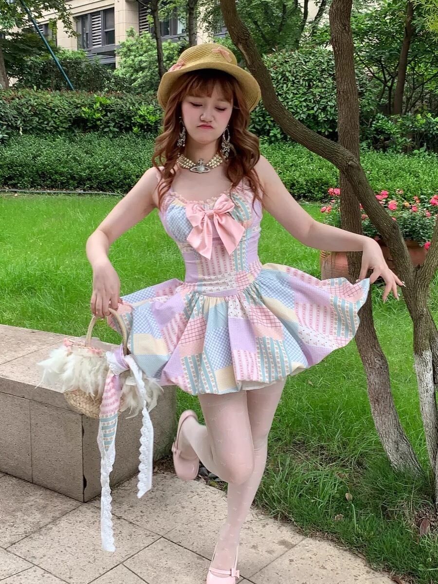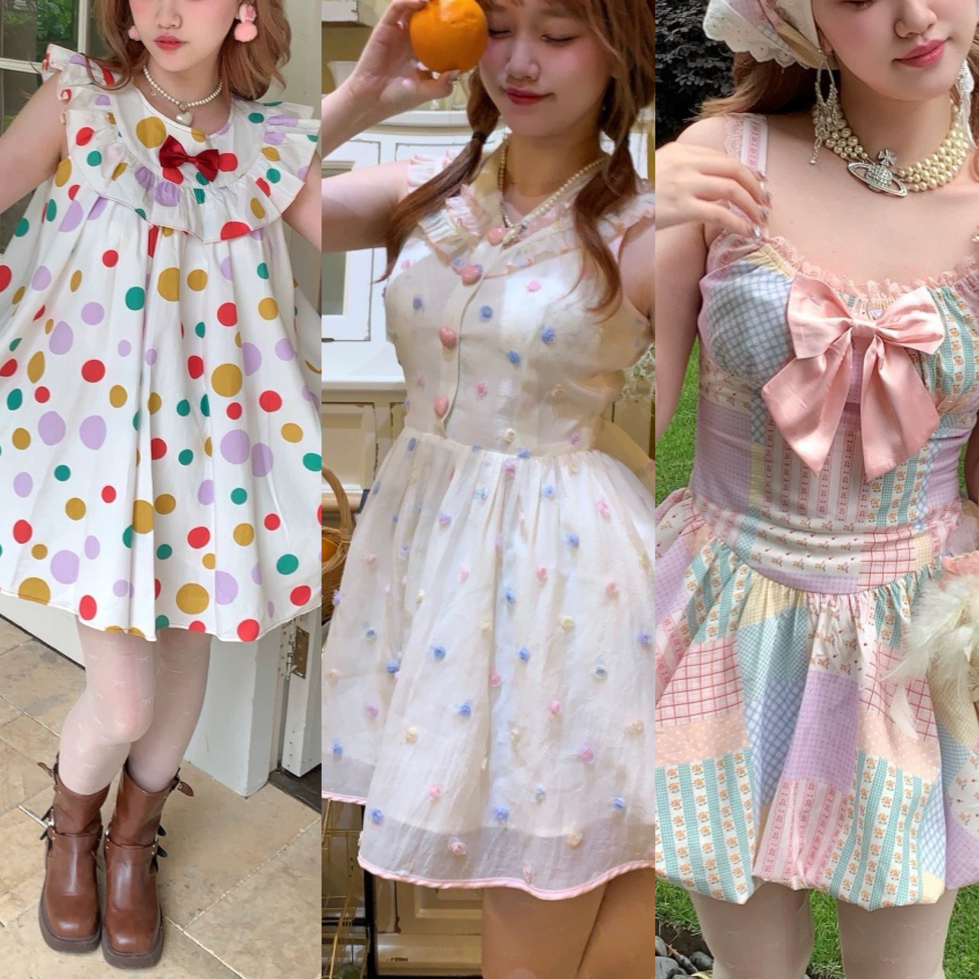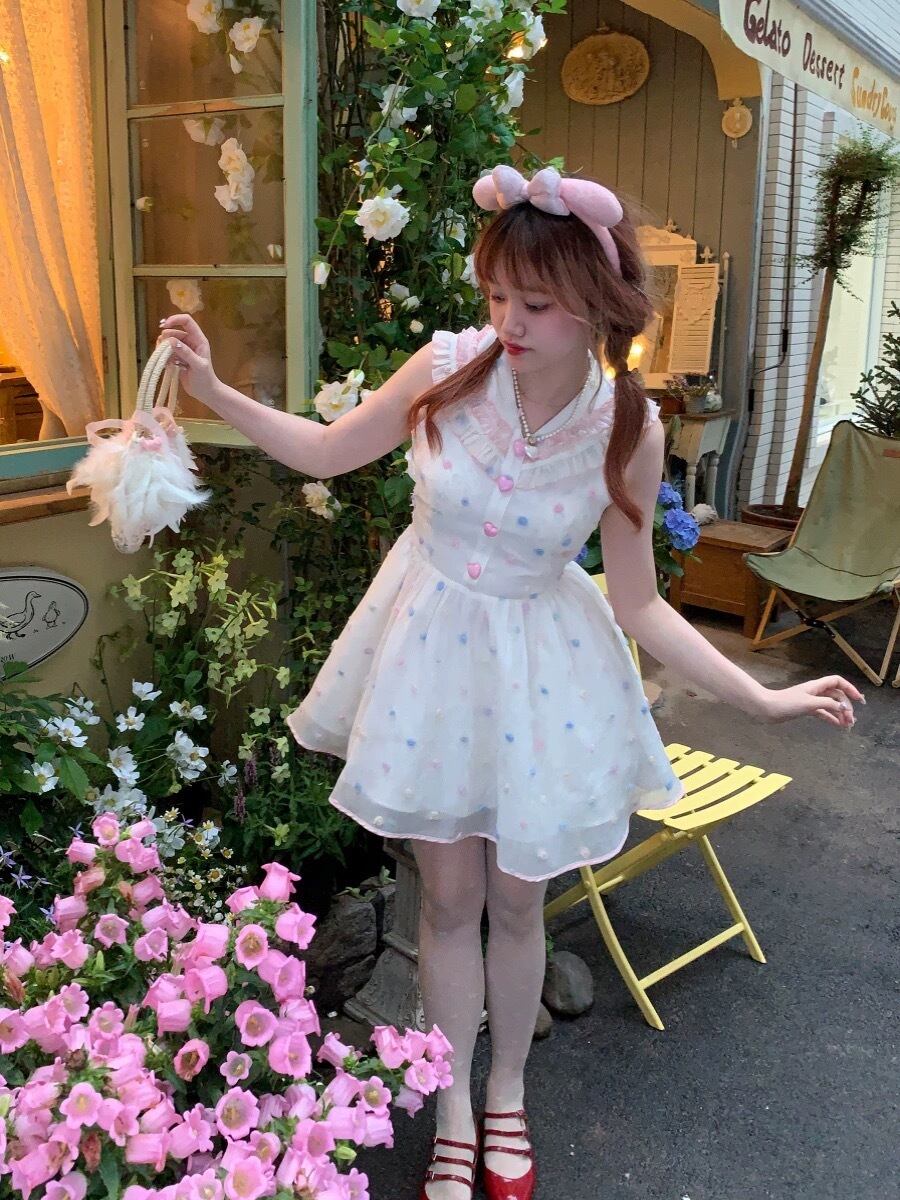 水玉 カラフル ワンピース ドット ブラウス ガーリー 姫 リボン