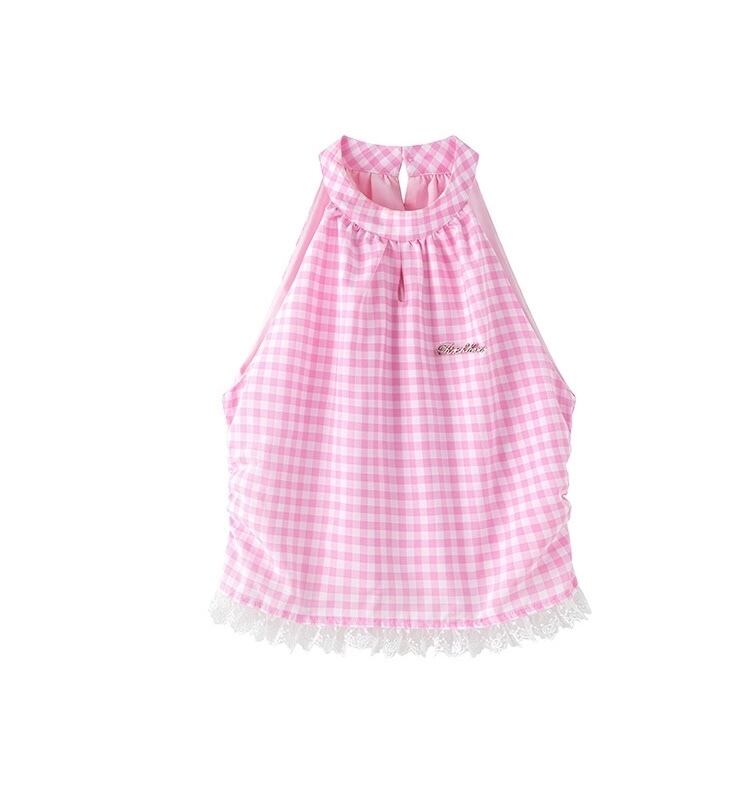 【ブラウス】チェック ピンク ブラウス トップス ガーリー