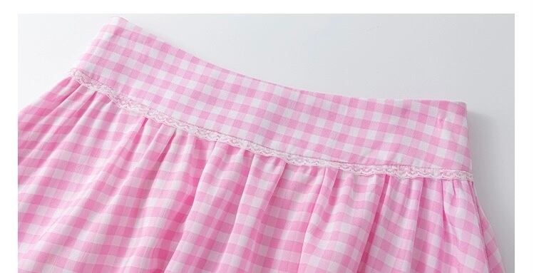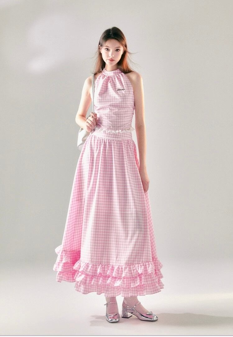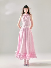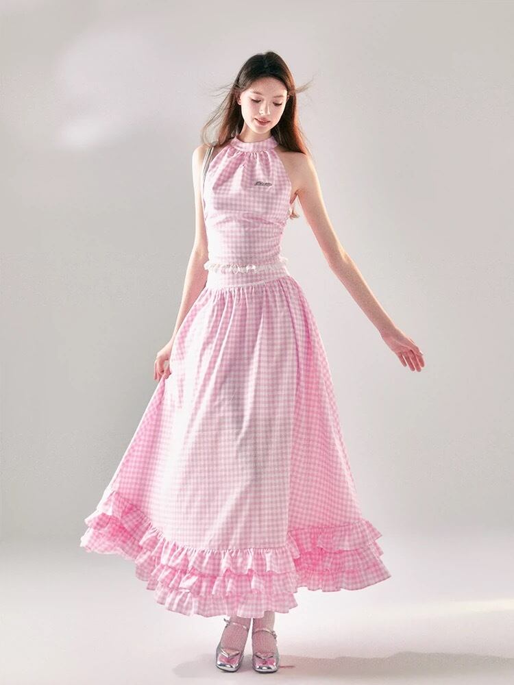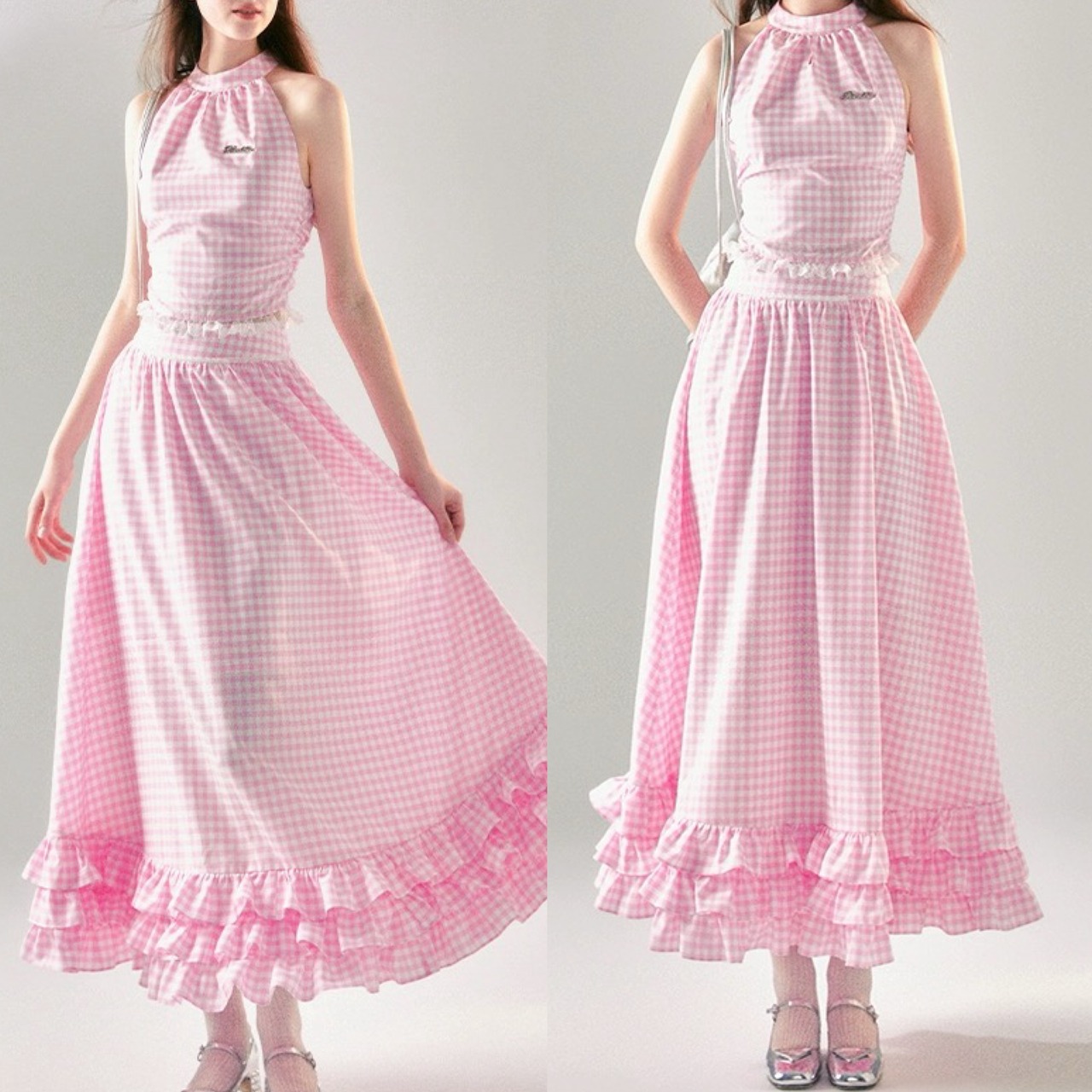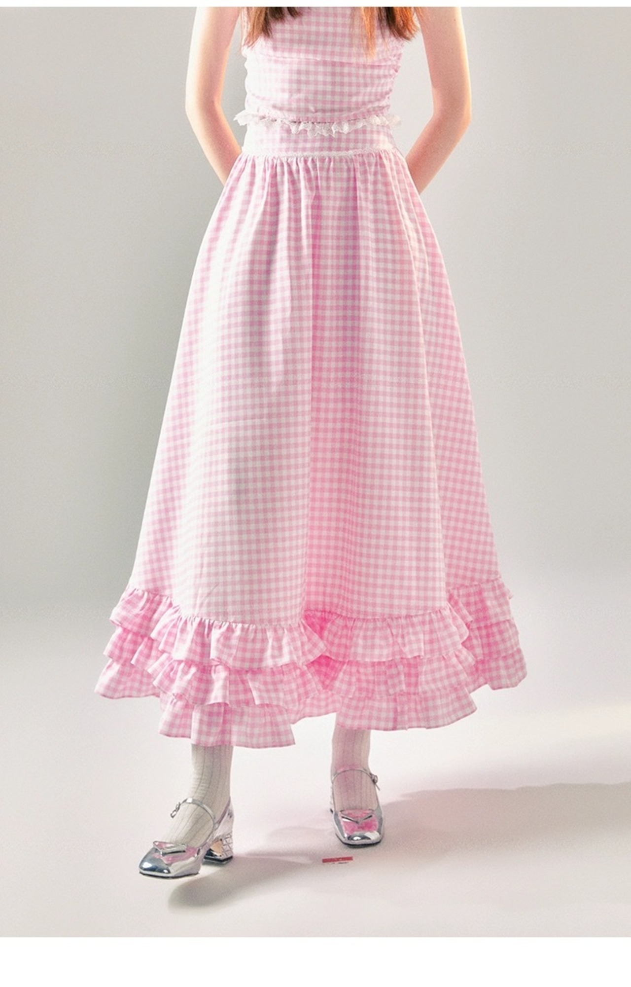 【スカート】ピンク チェック ボトムス ガーリー マキシ