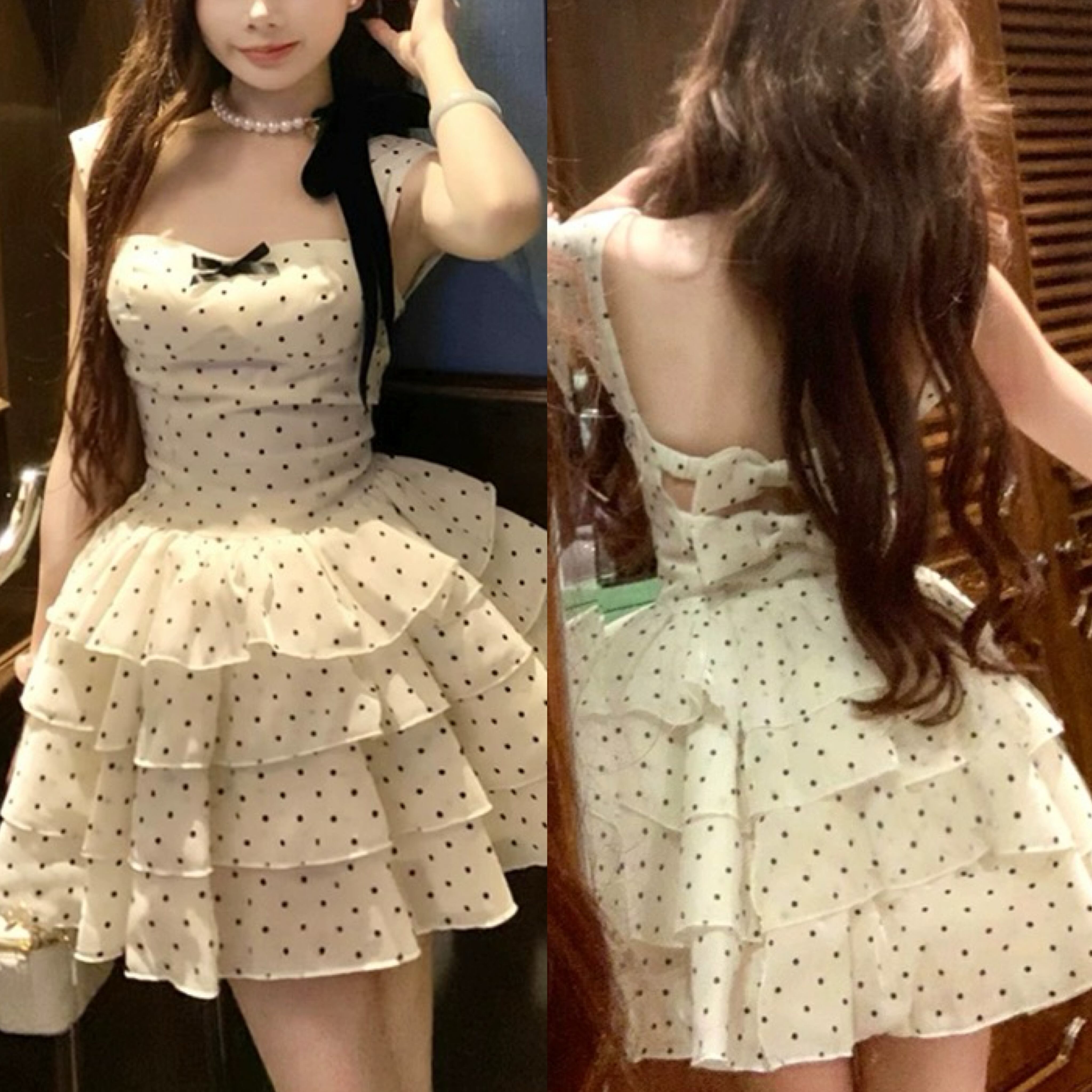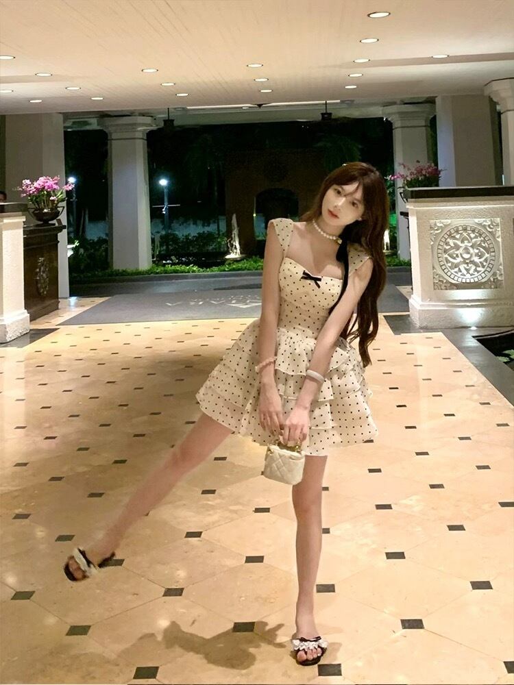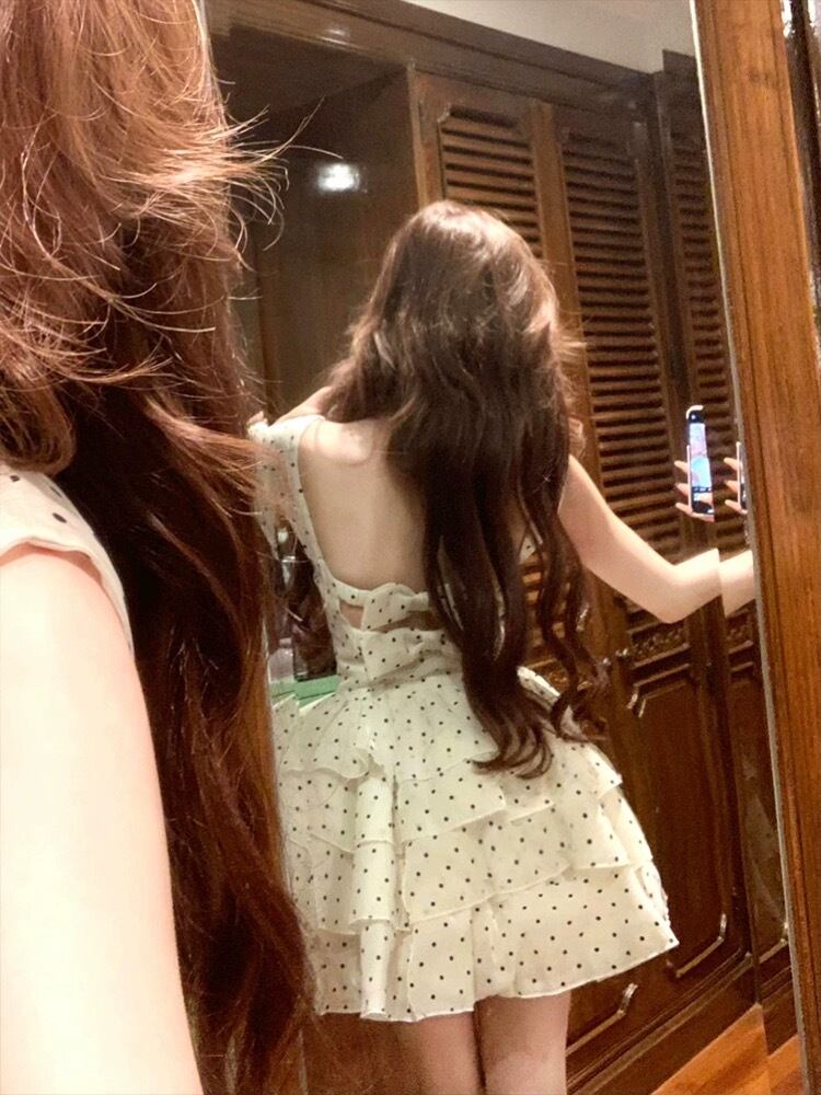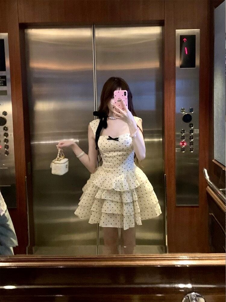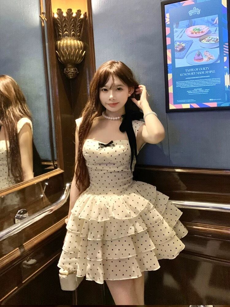白 水玉 ドット ワンピース ミニスカート ガーリー 可愛い