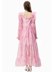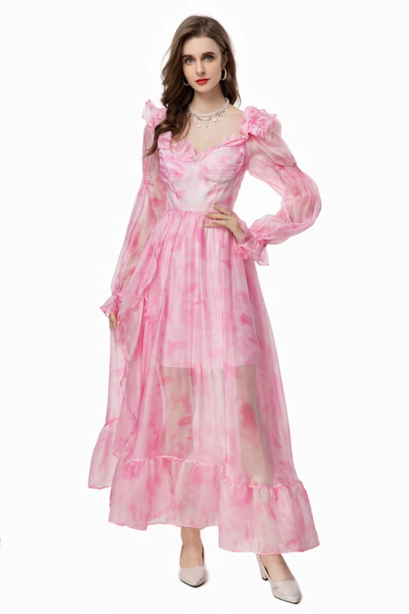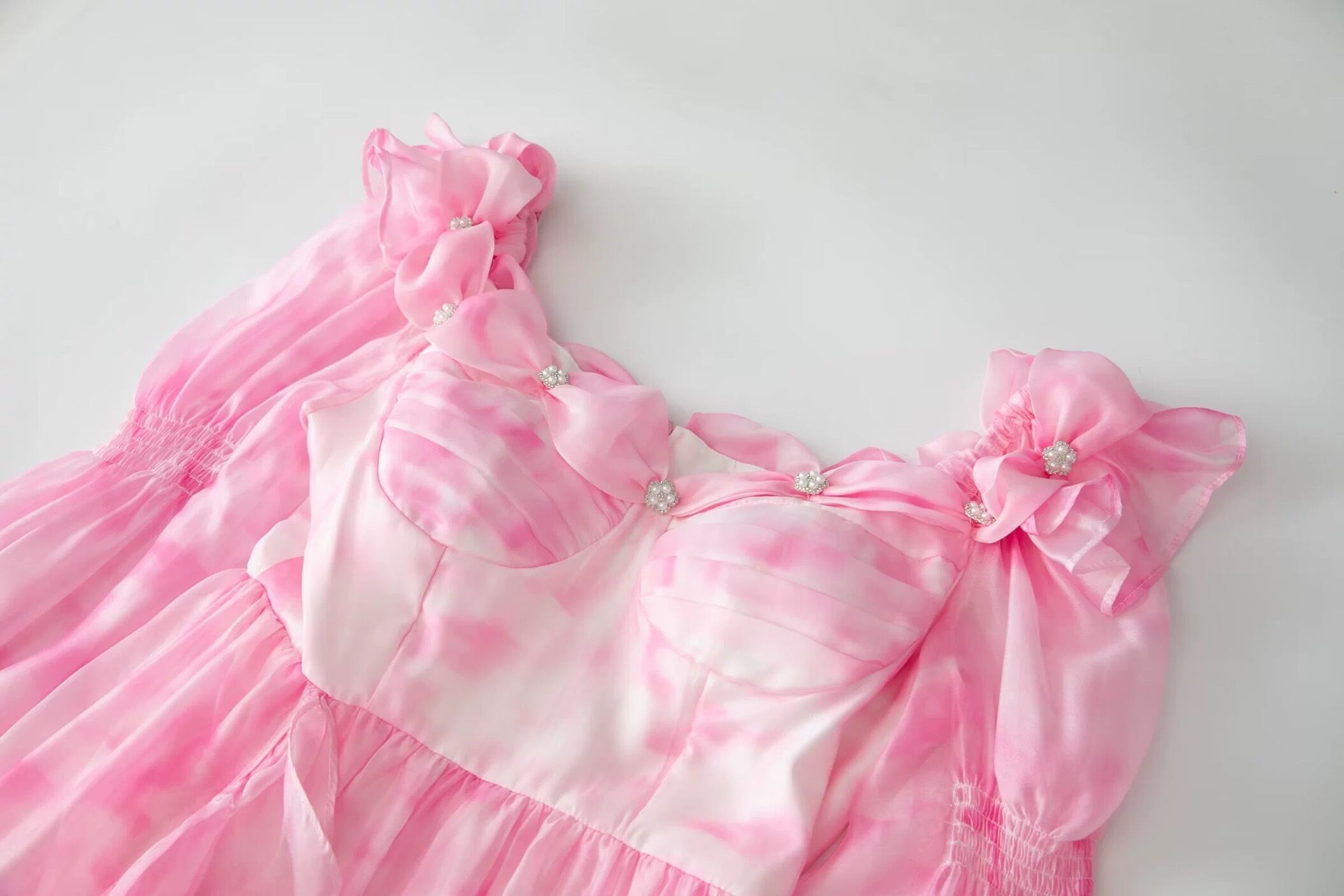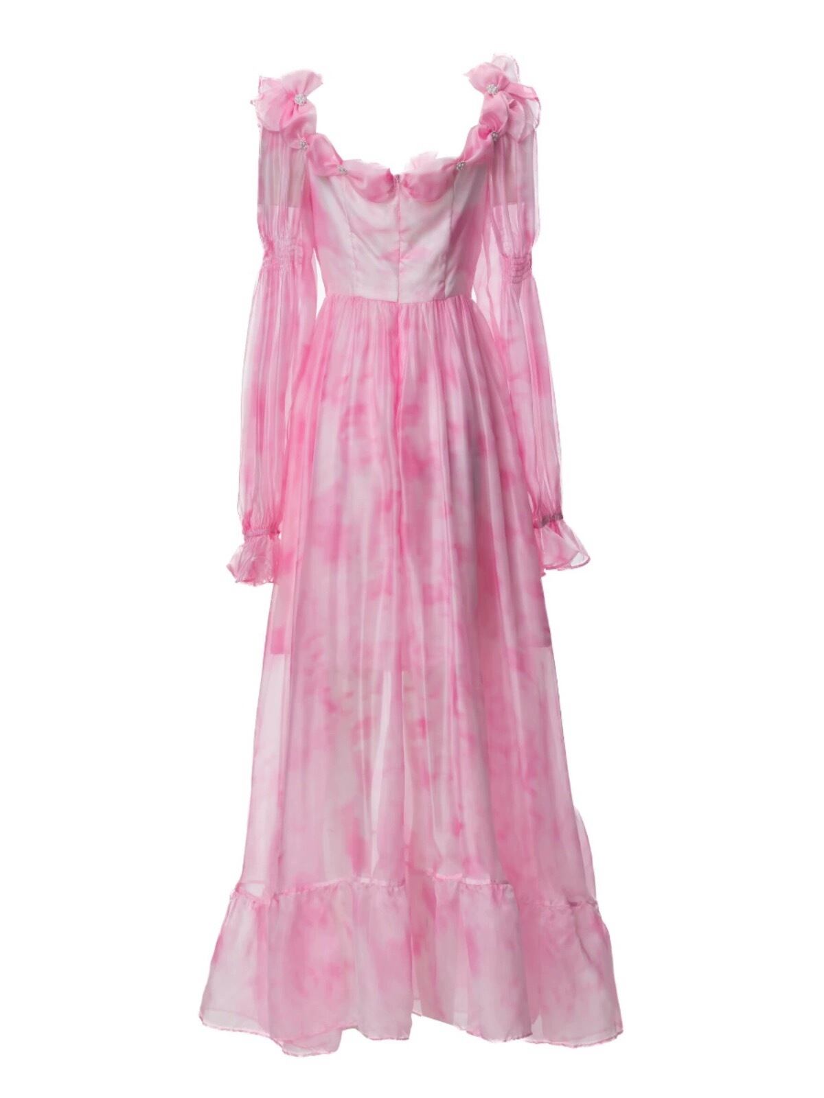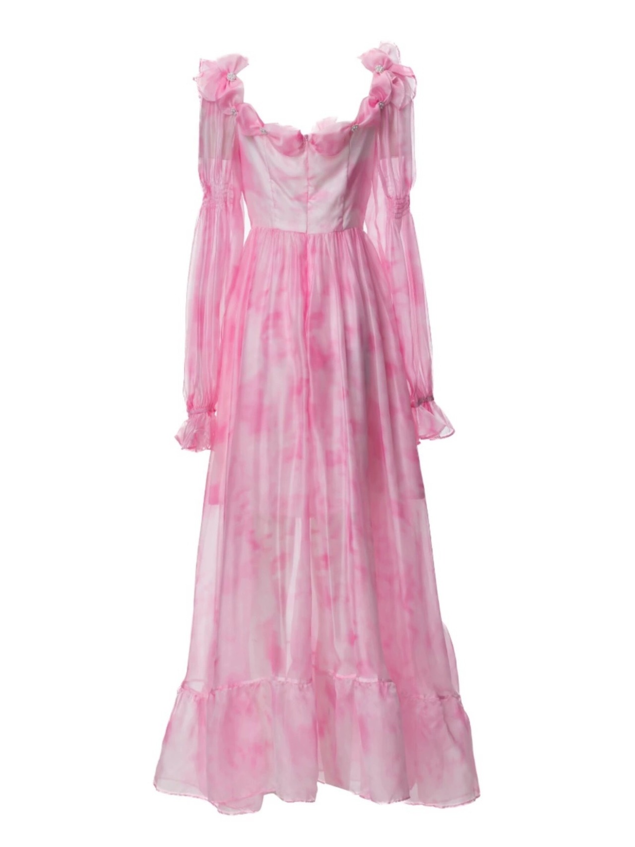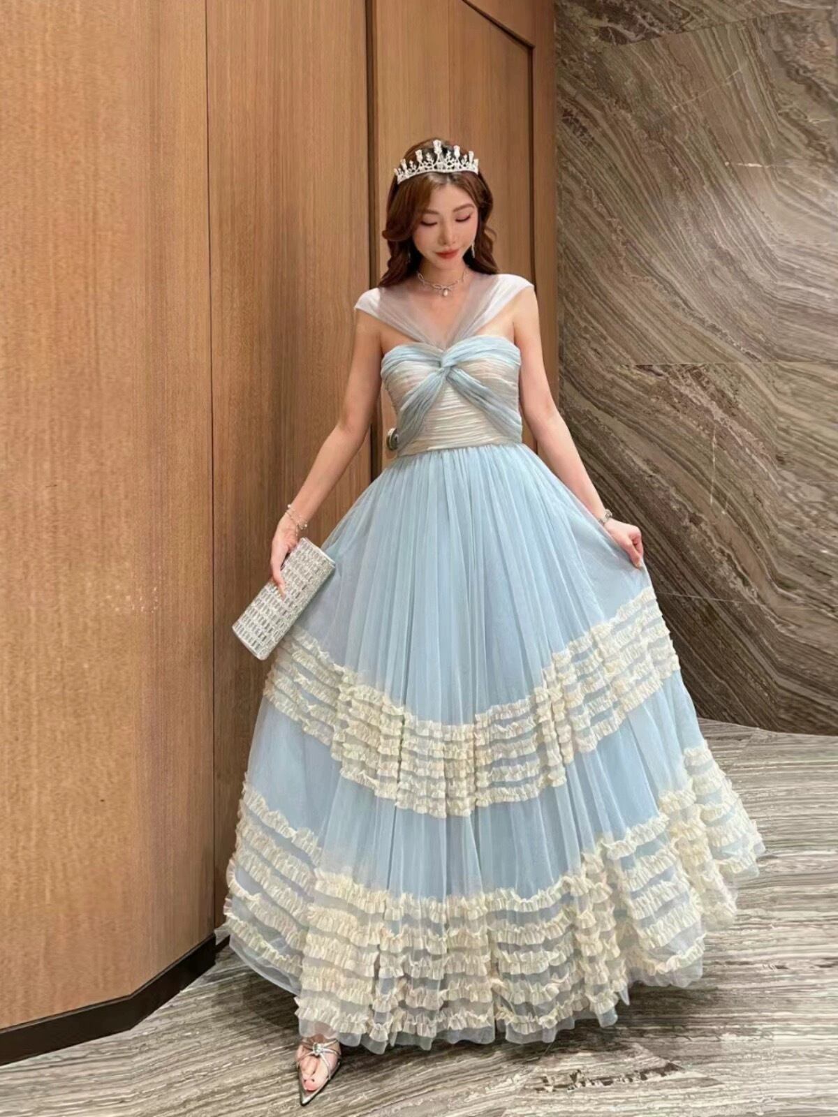 ピンク 黒 水色 エレガント マキシ ワンピース