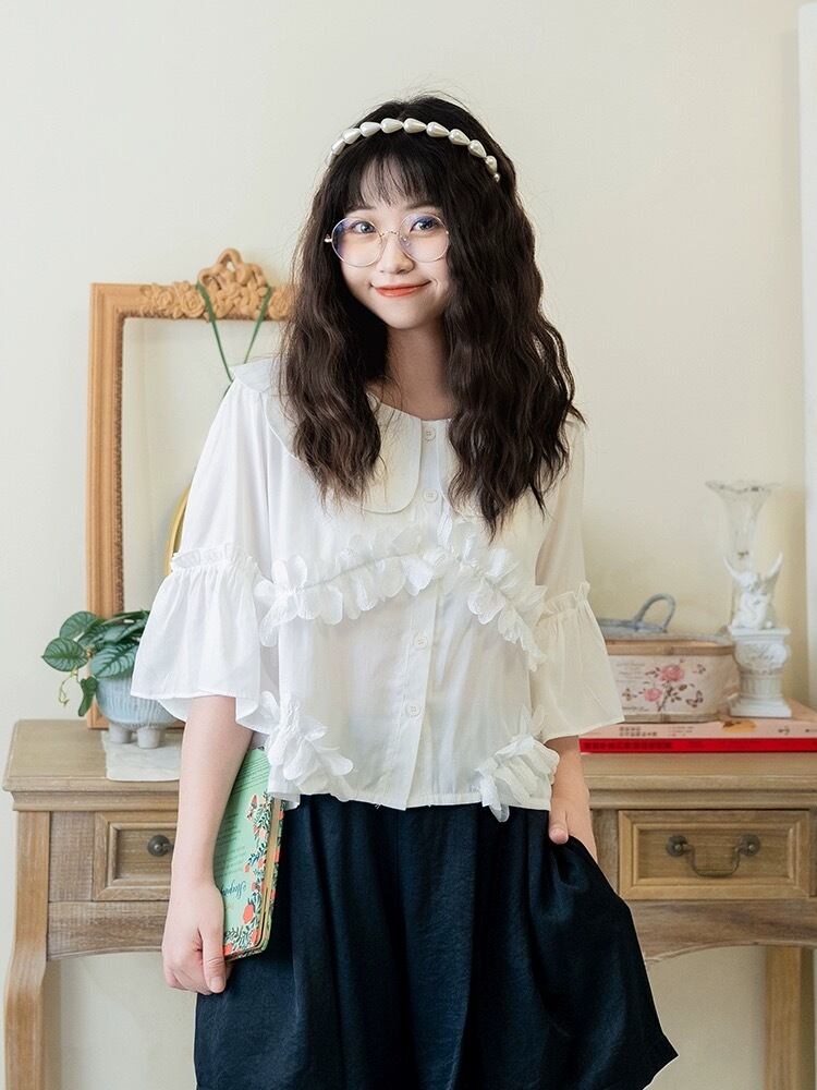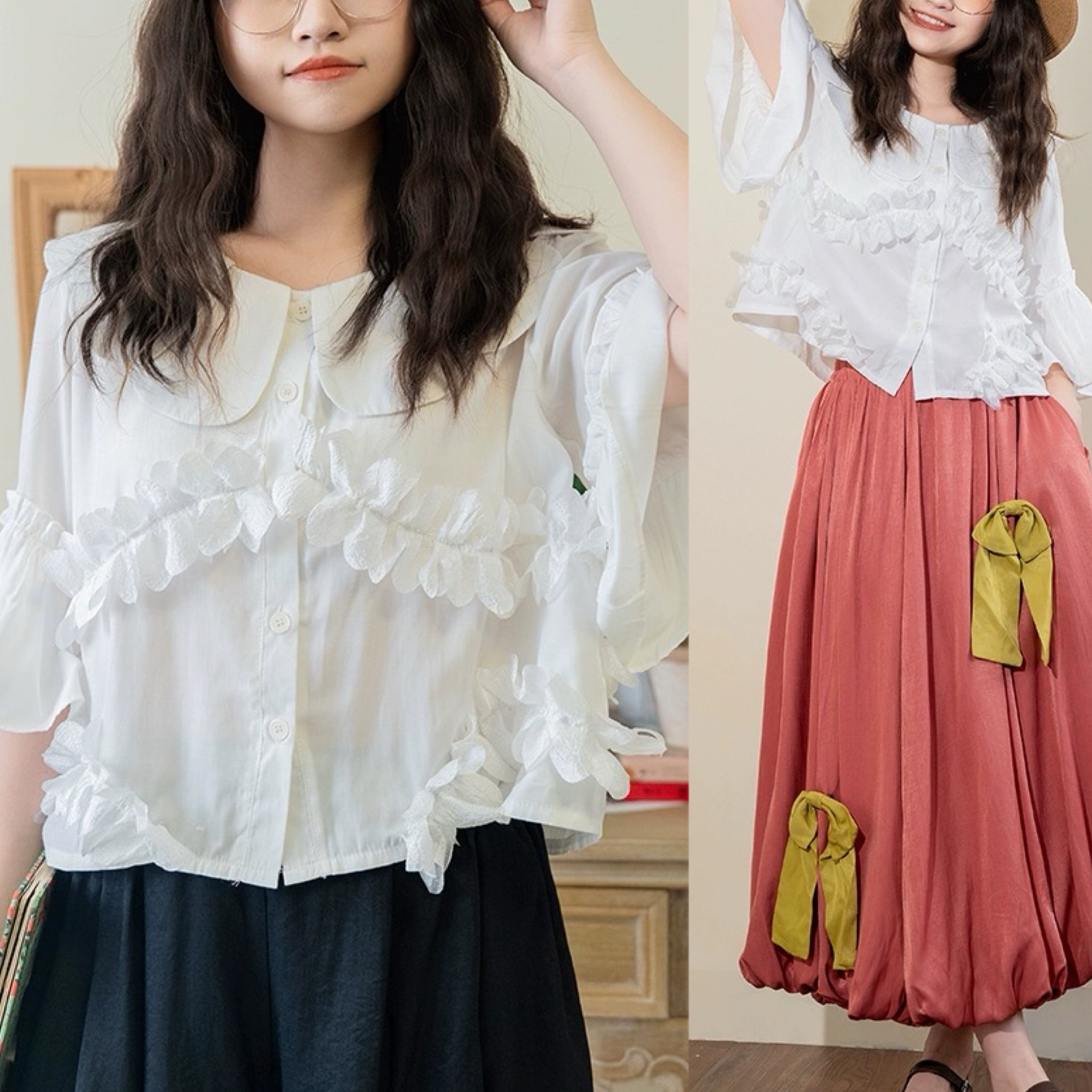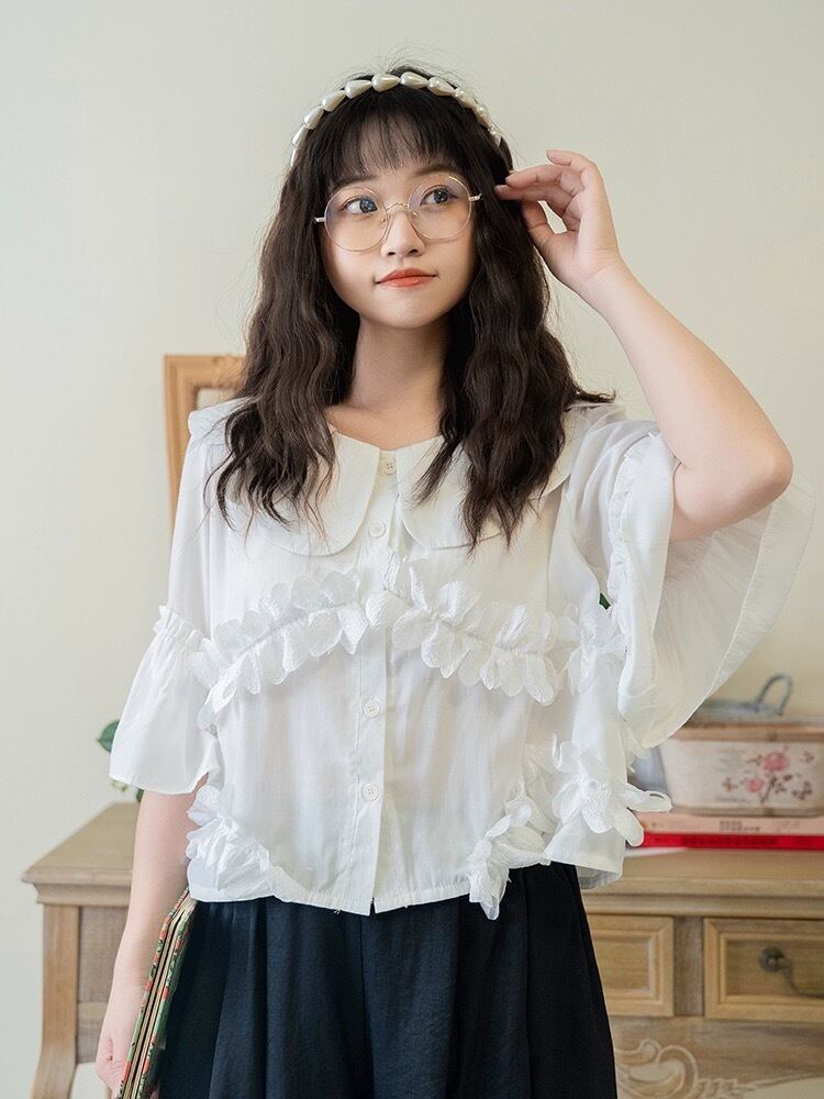 ブラウス カジュアル ガーリー 原宿 可愛い 白 ホワイト