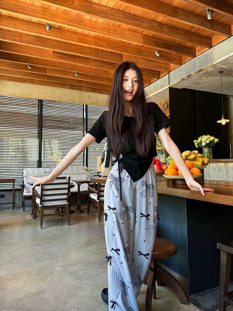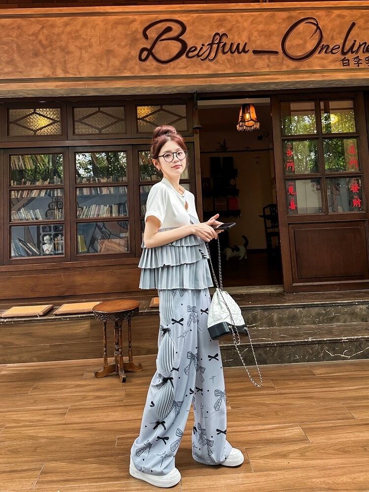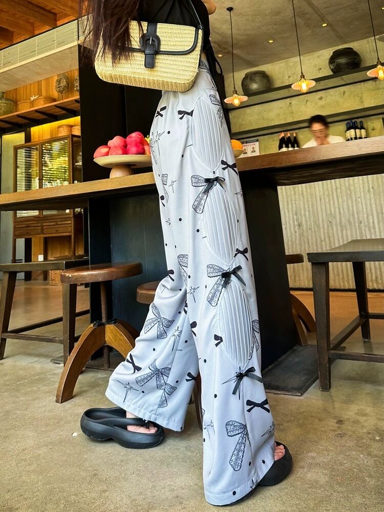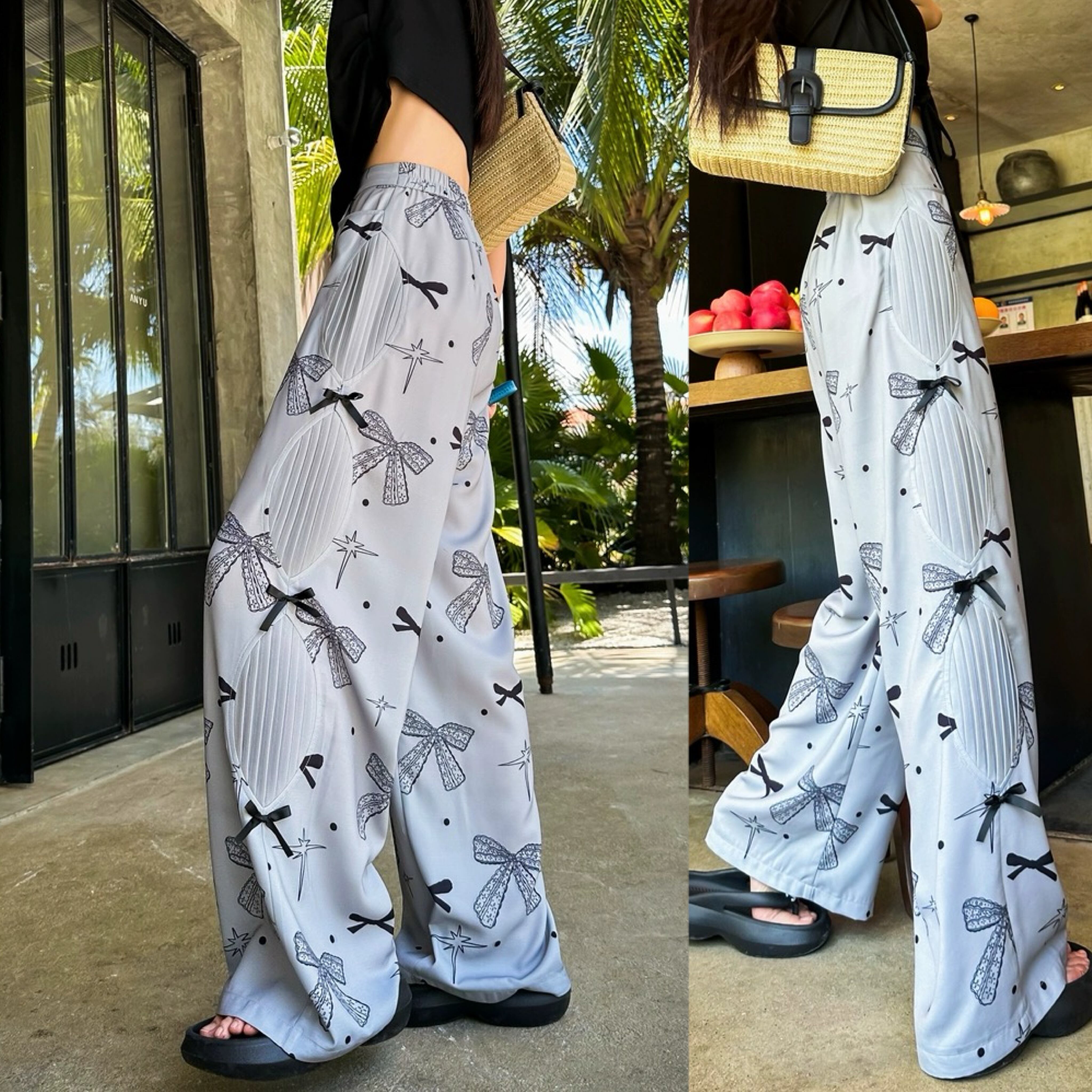 パンツ ズボン 水色 グレー ボトムス XL リボン カジュアル