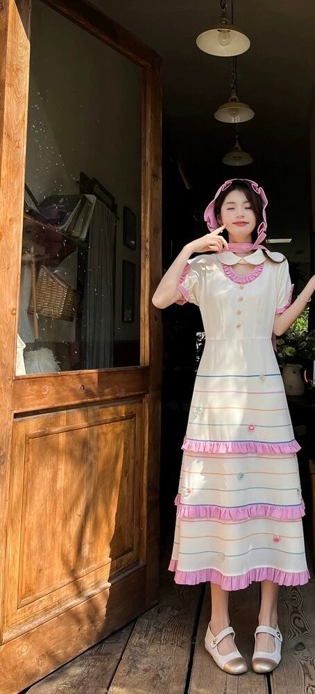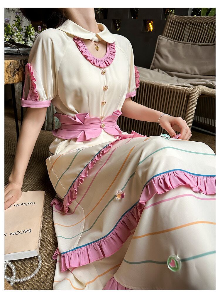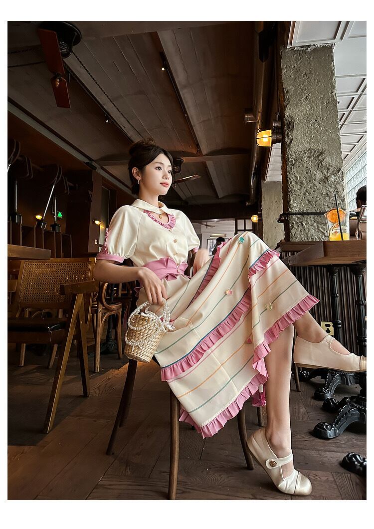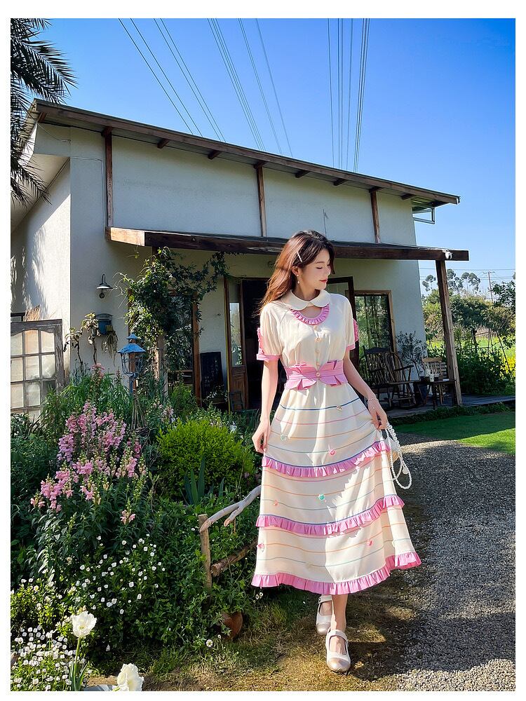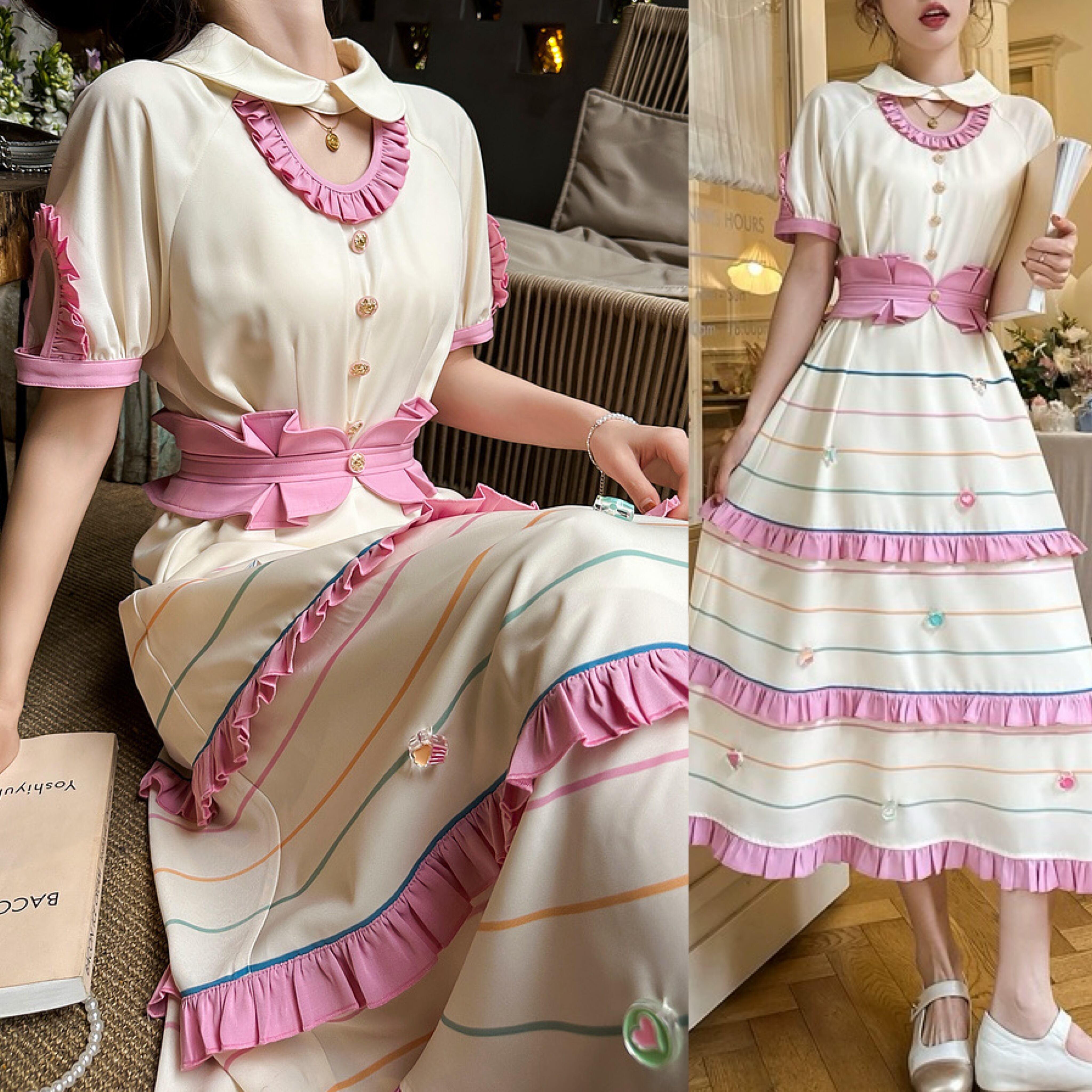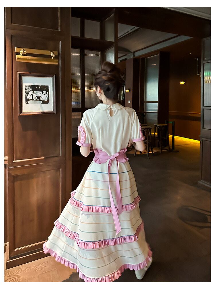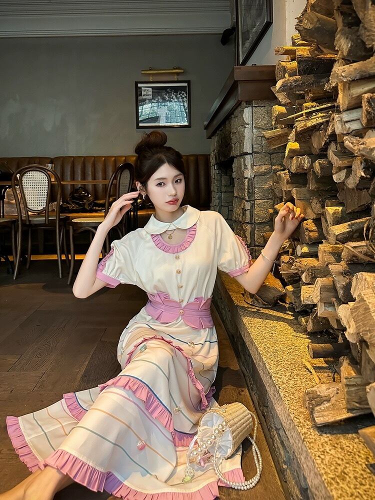可愛い ピンク 丸襟 ブラウス ワンピース ボーダー 可愛い 原宿