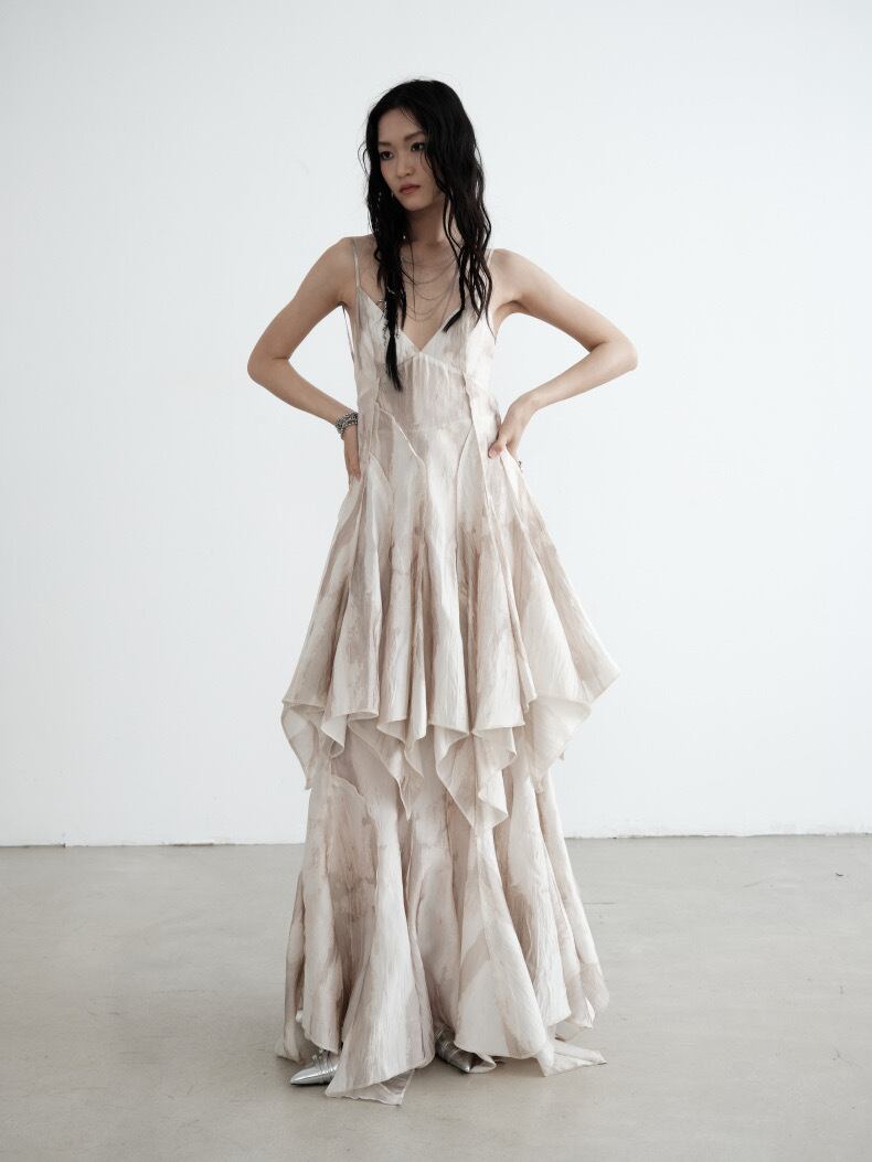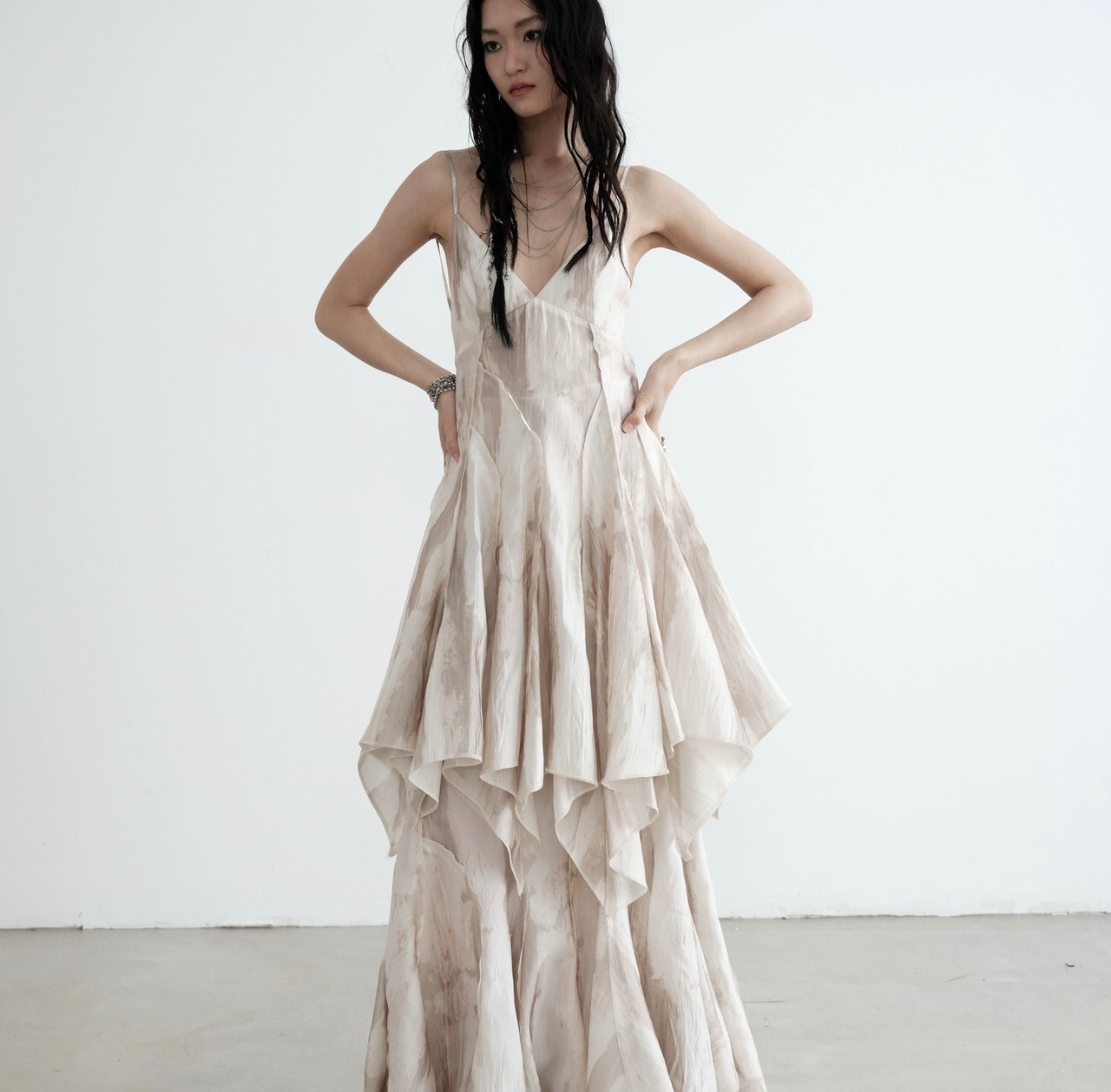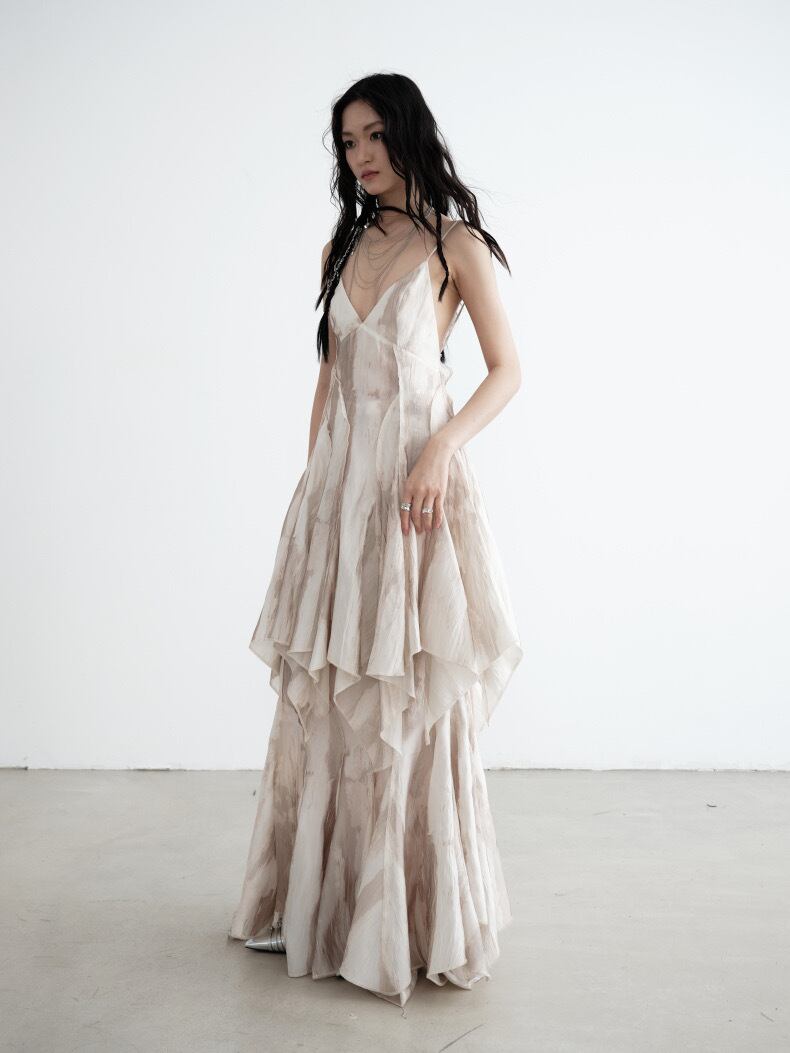 ベージュ ホルダーネック ワンピース スカート シンプル ブラウス
