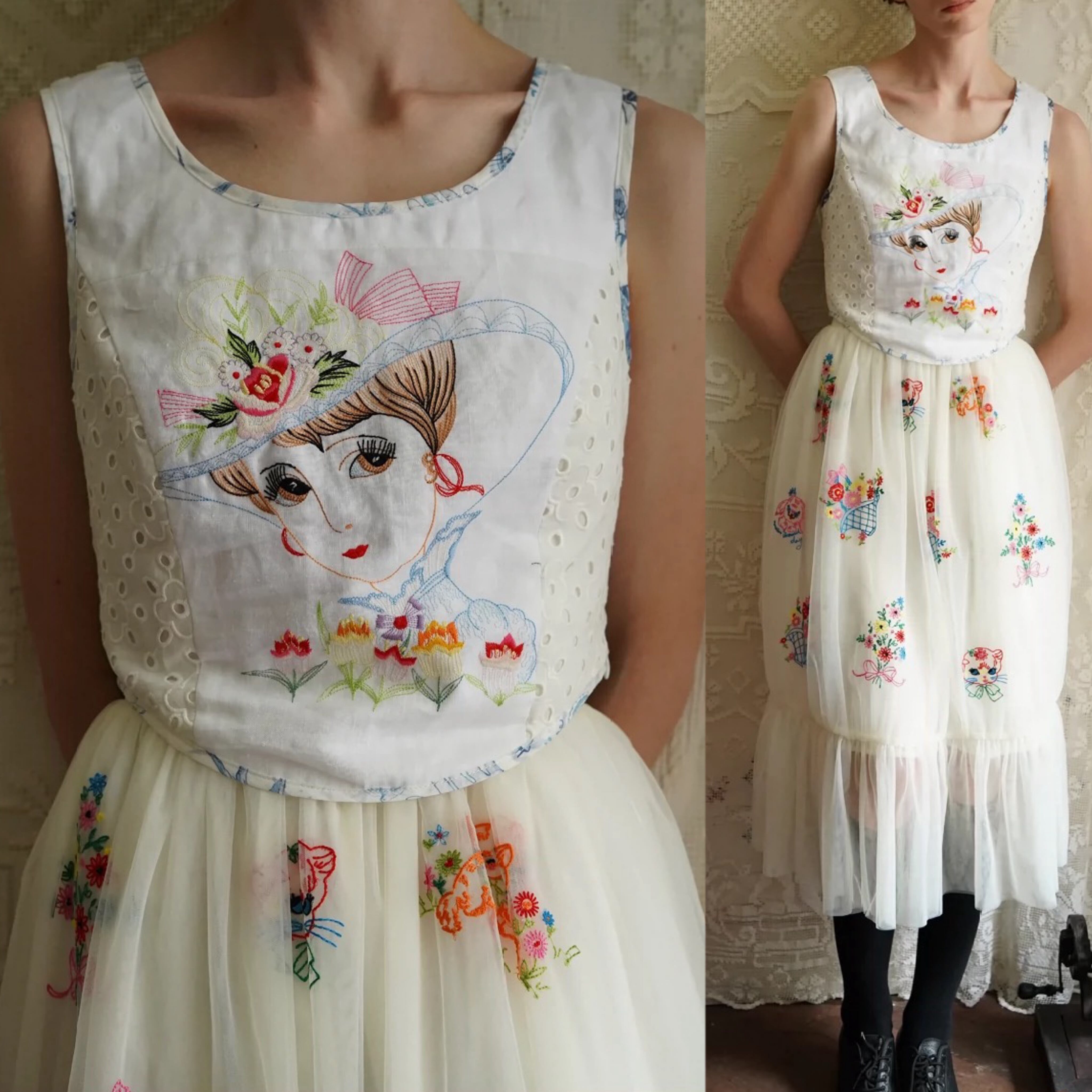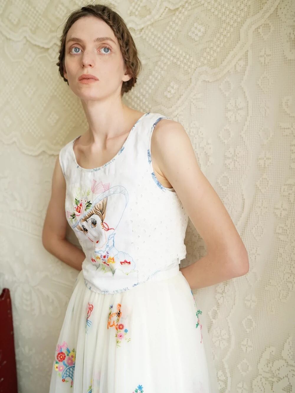 タンクトップ ノースリーブ 白 可愛い 花柄 ブラウス 花柄 フラワー