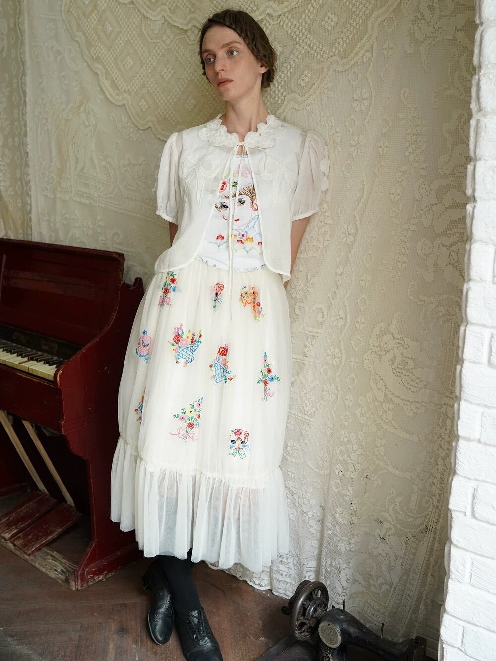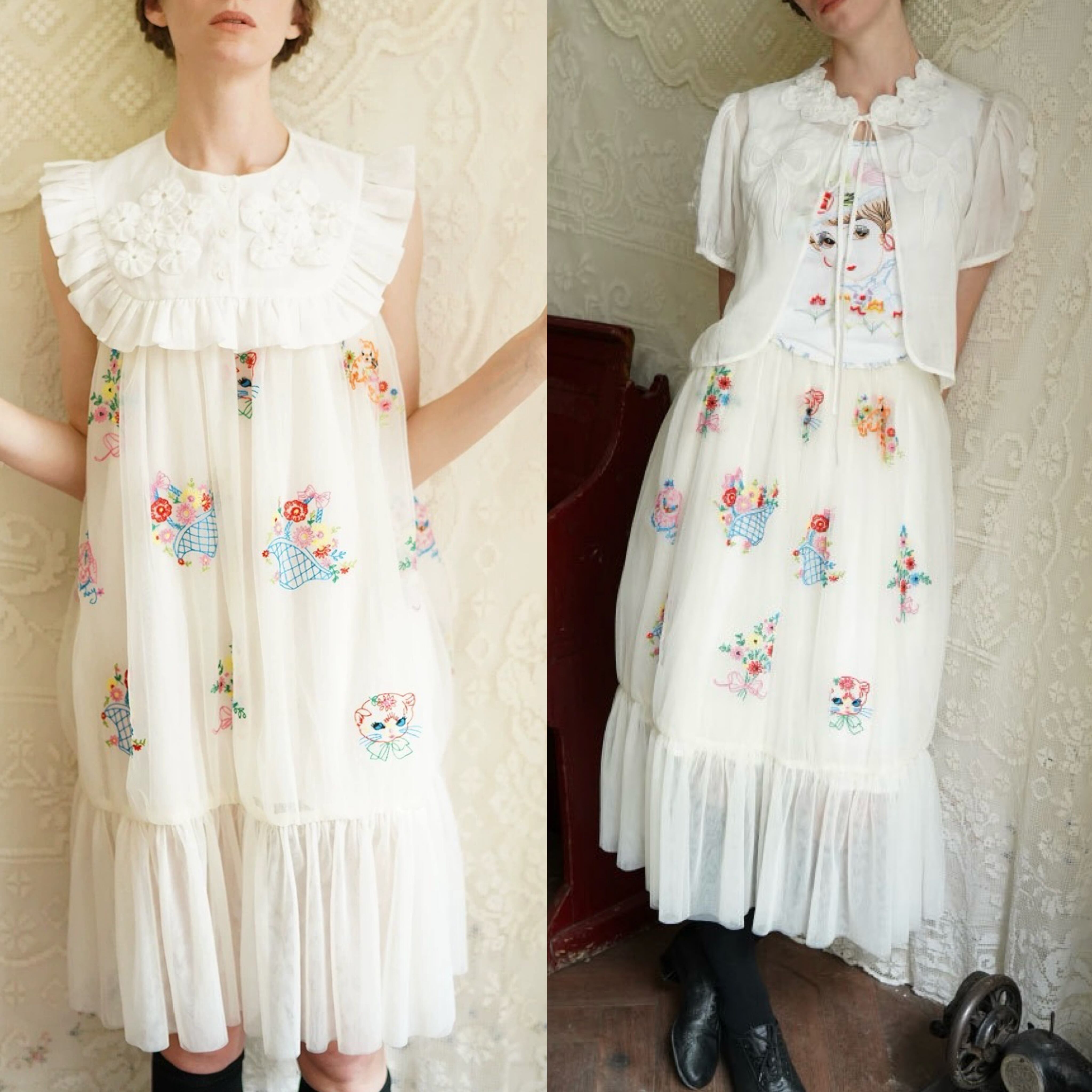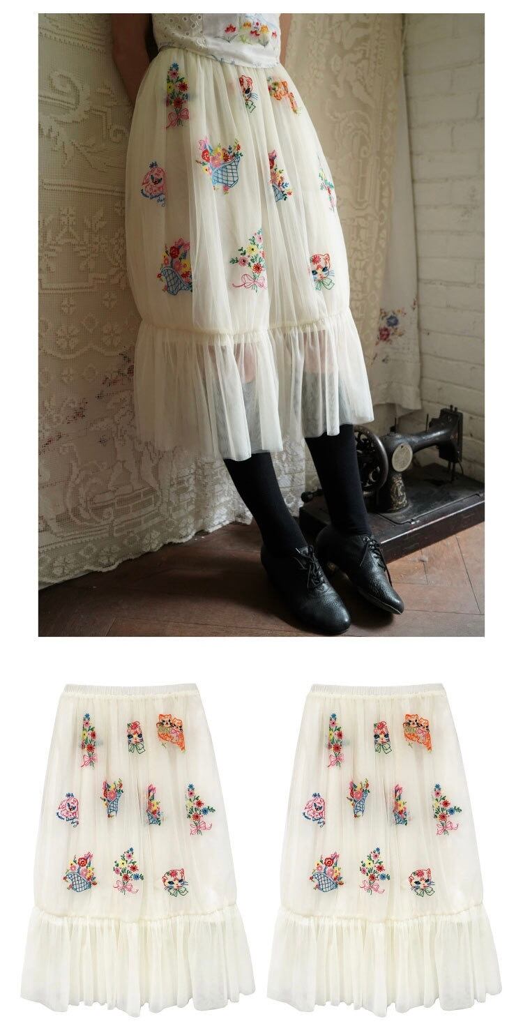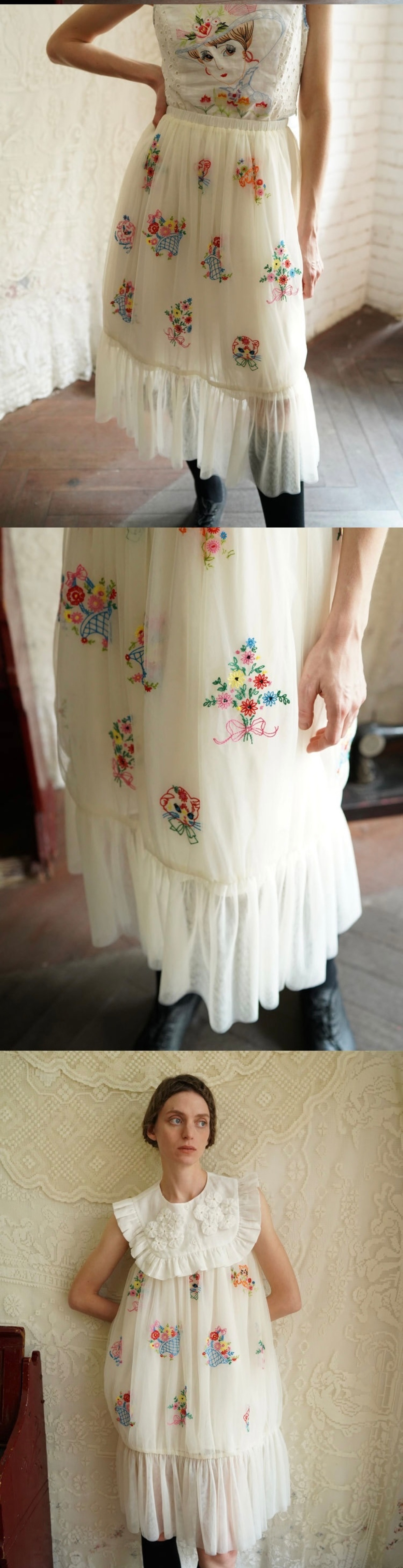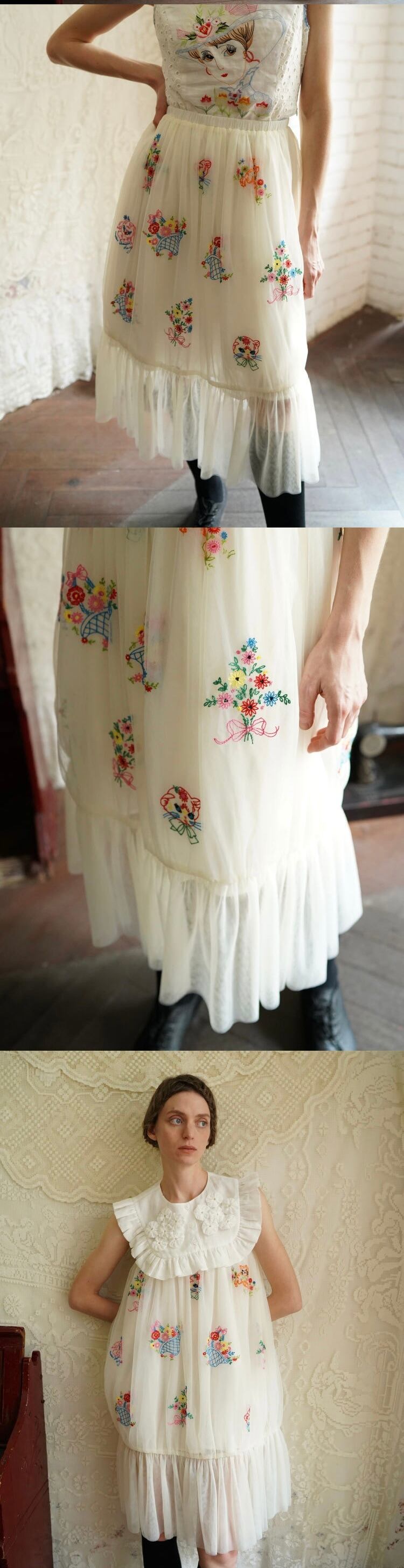 【2way】刺繍 スカート ワンピース 花柄 フラワー 白 ホワイト