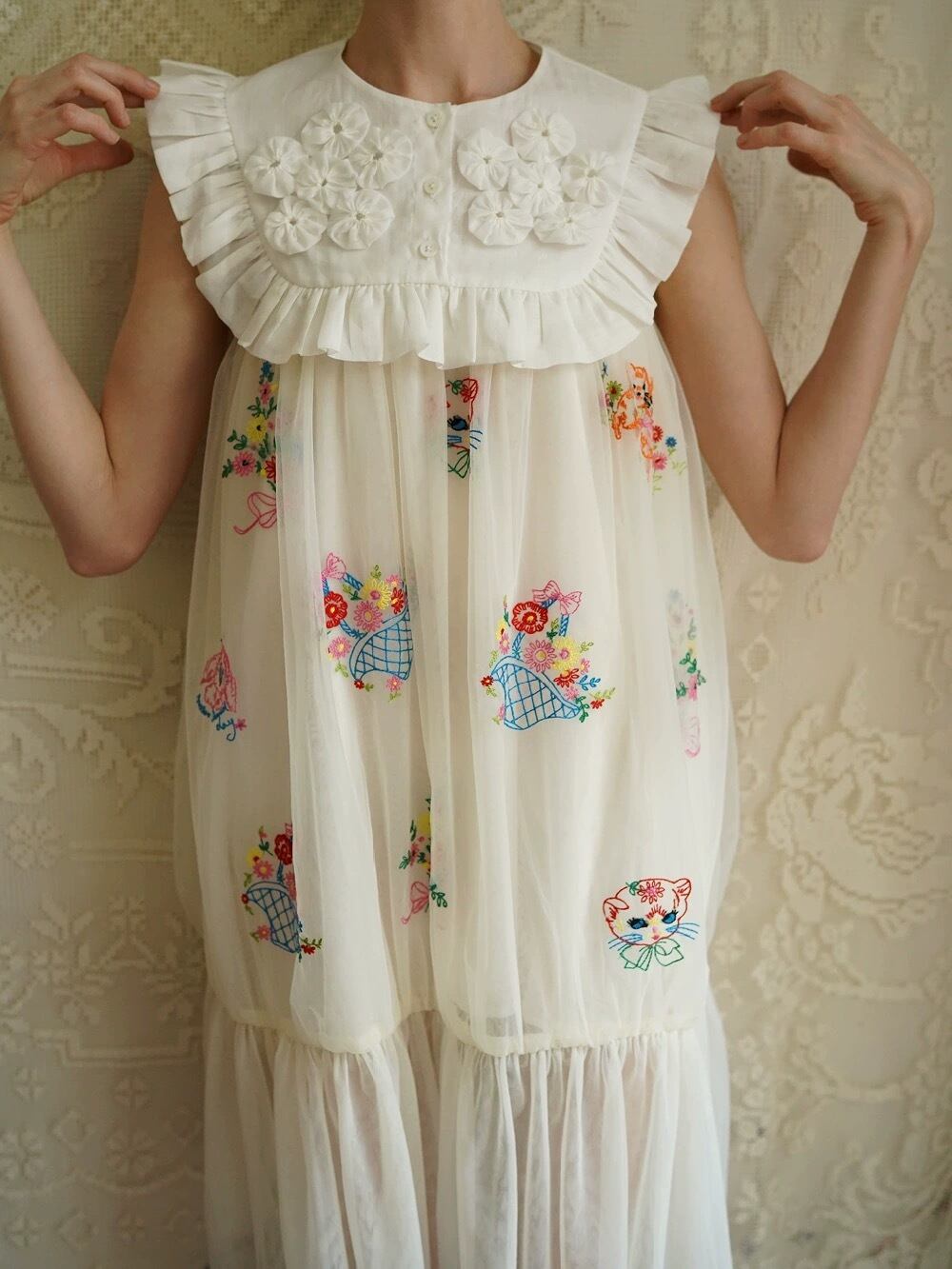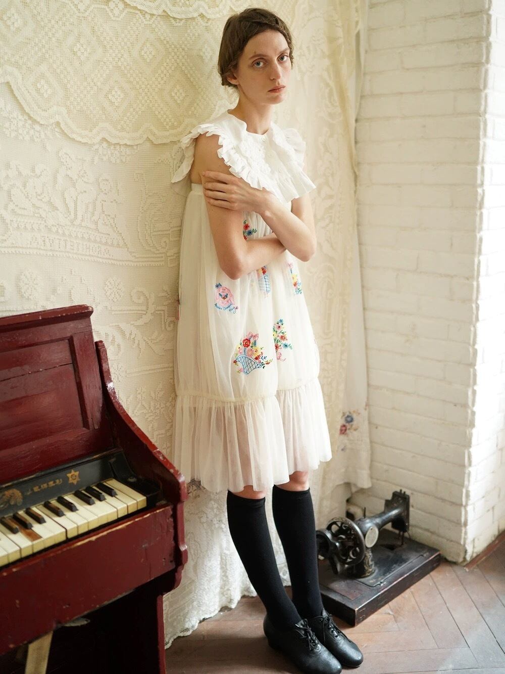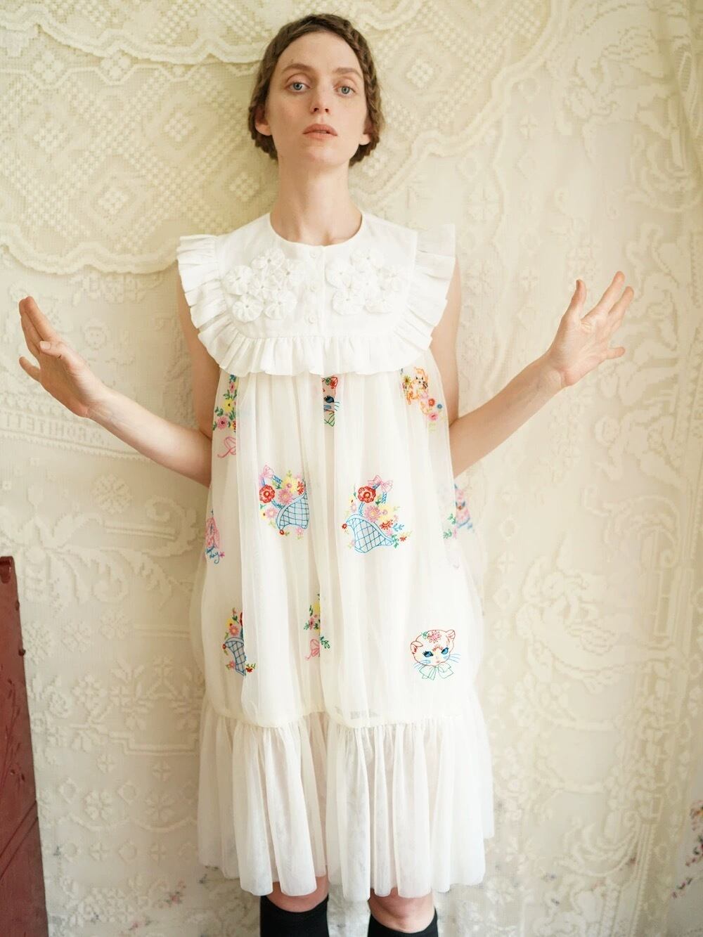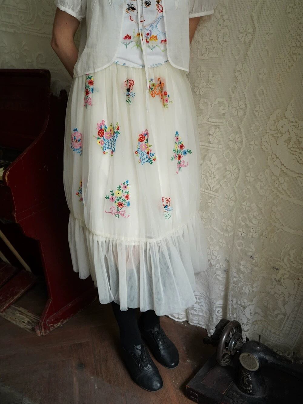 【2way】刺繍 スカート ワンピース 花柄 フラワー 白 ホワイト
