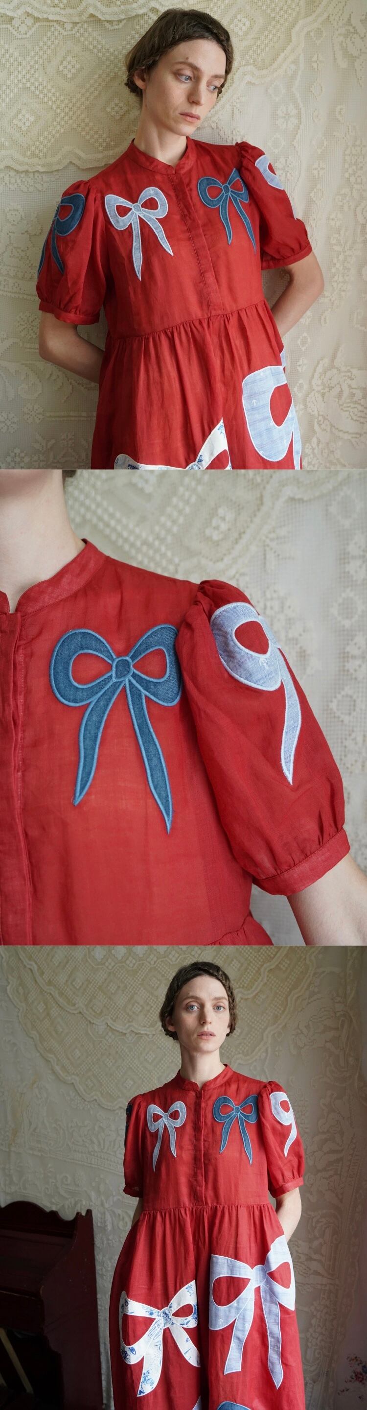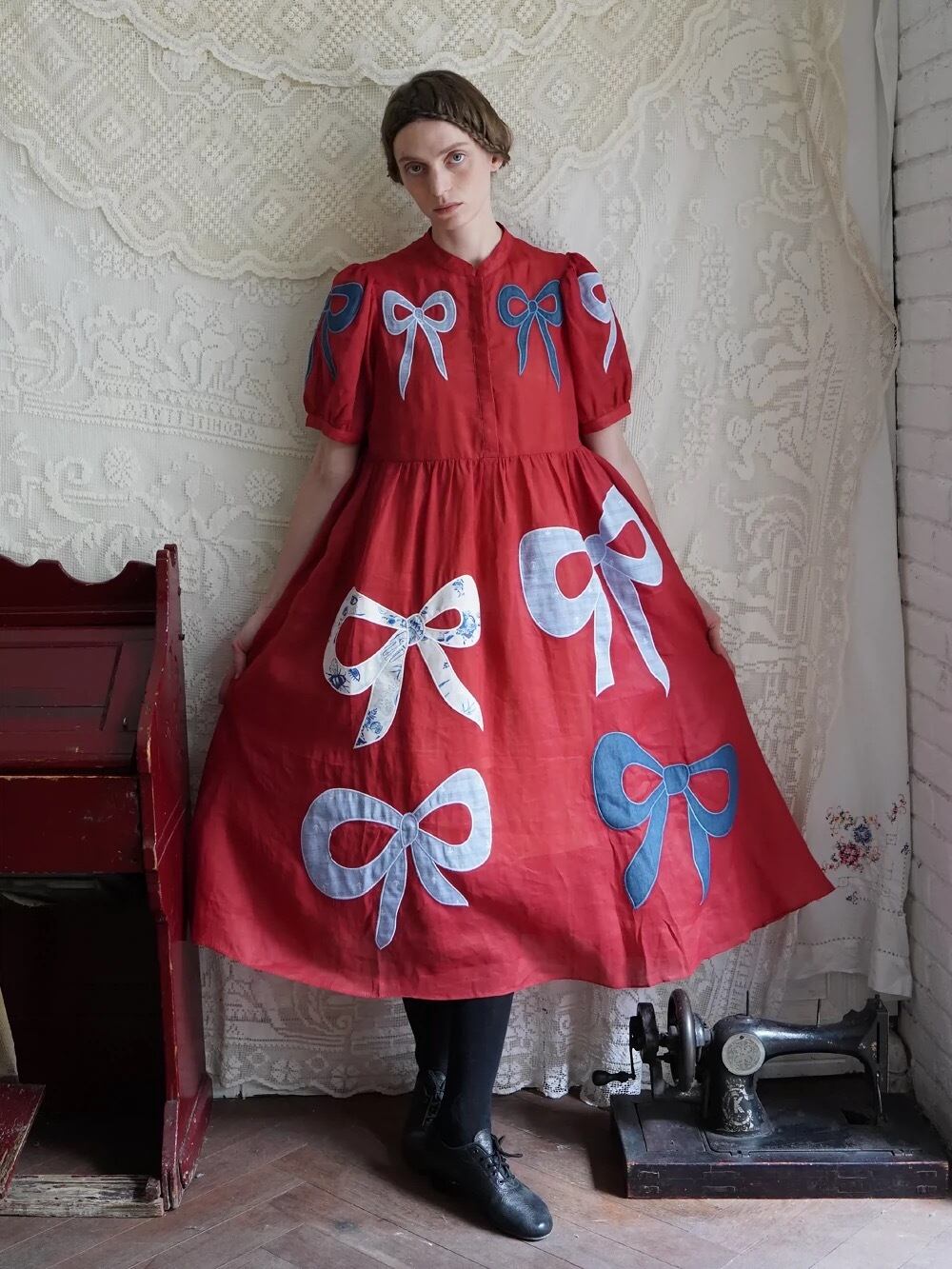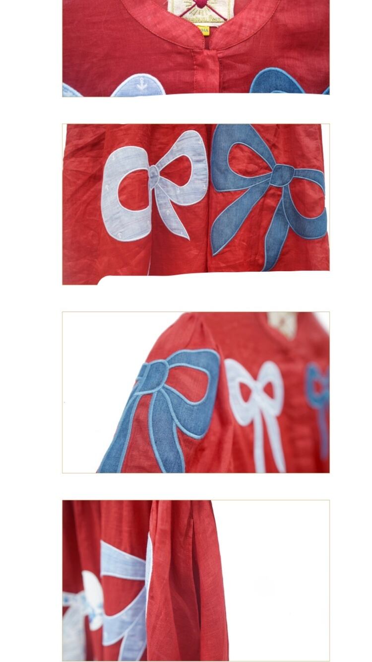 赤 リボン ゆったり ワンピース ガーリー 水色 可愛い カジュアル ブラウス