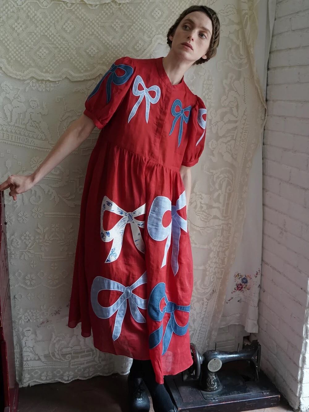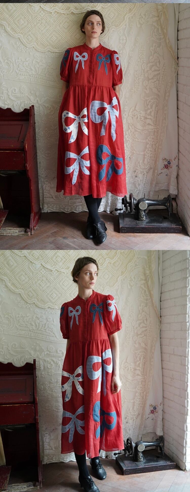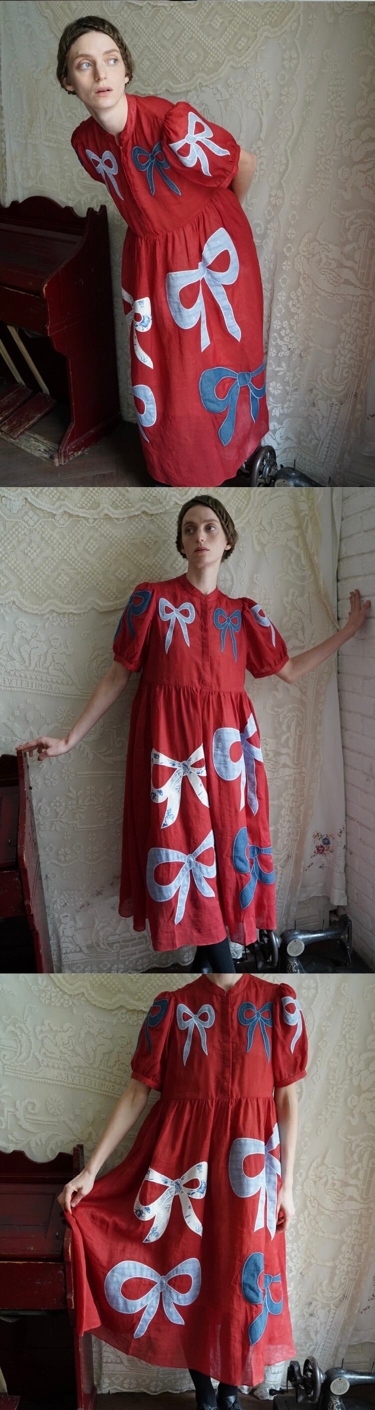 赤 リボン ゆったり ワンピース ガーリー 水色 可愛い カジュアル ブラウス