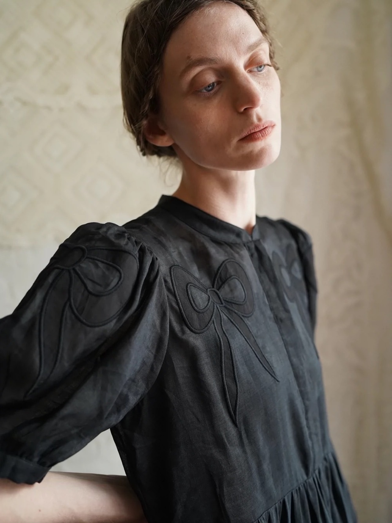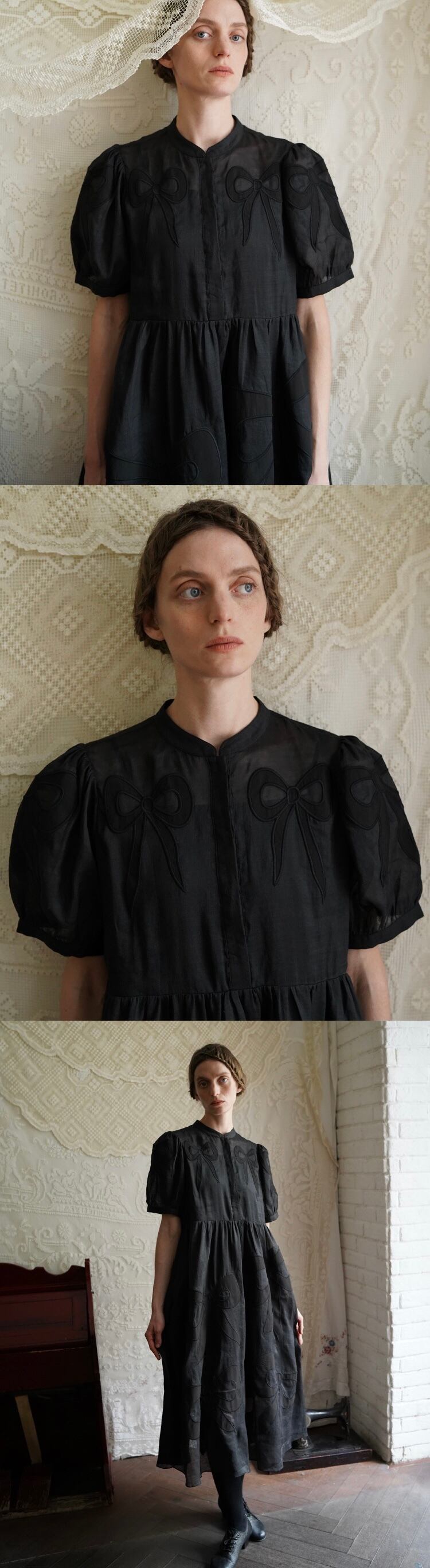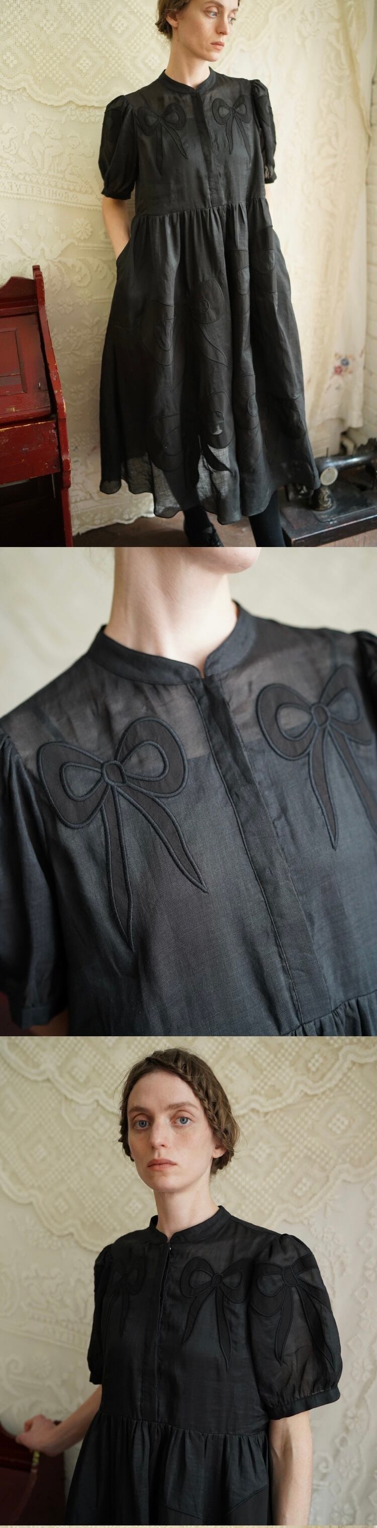 黒 リボン ゆったり ワンピース ガーリー 水色 可愛い カジュアル ブラウス