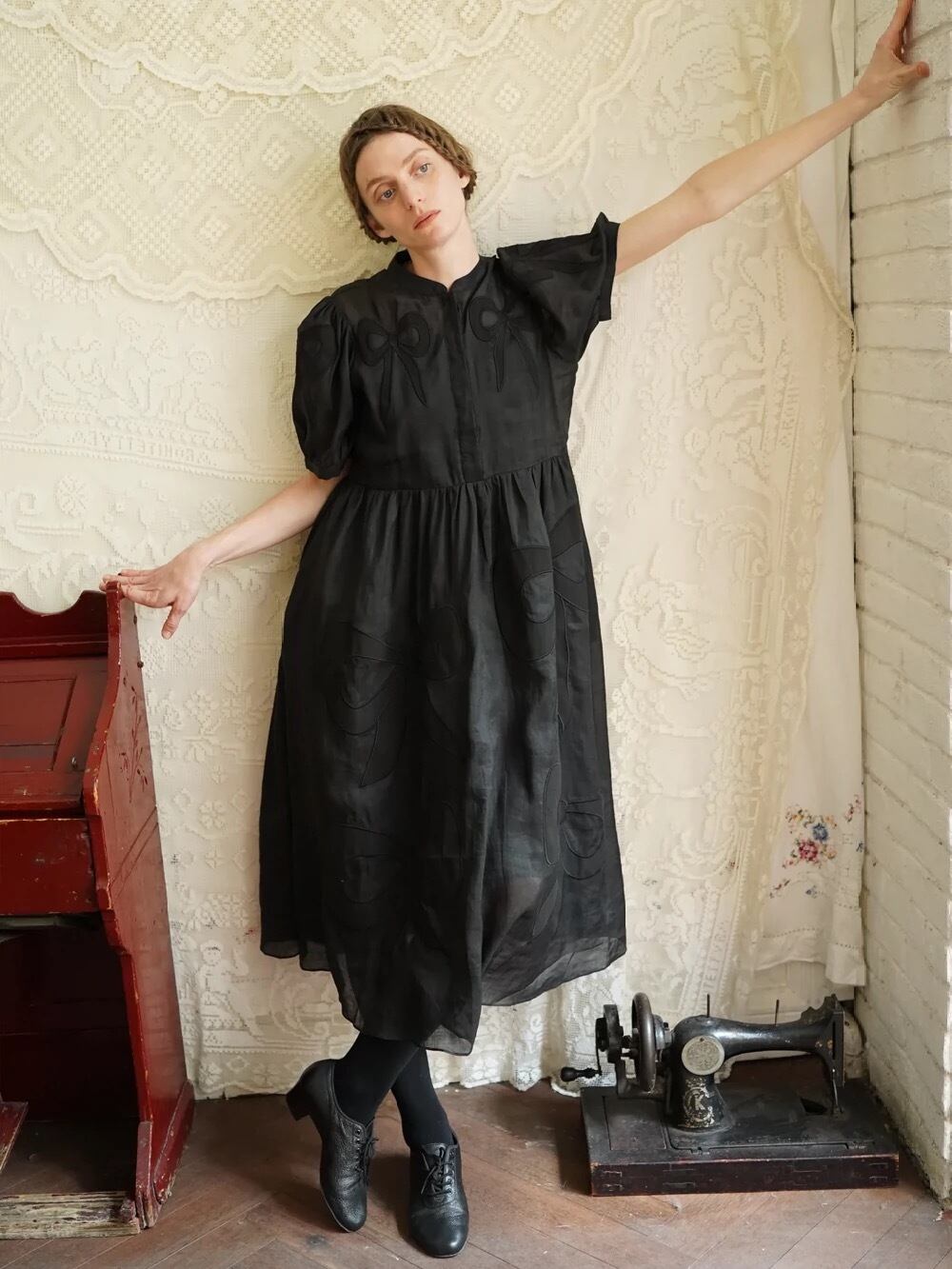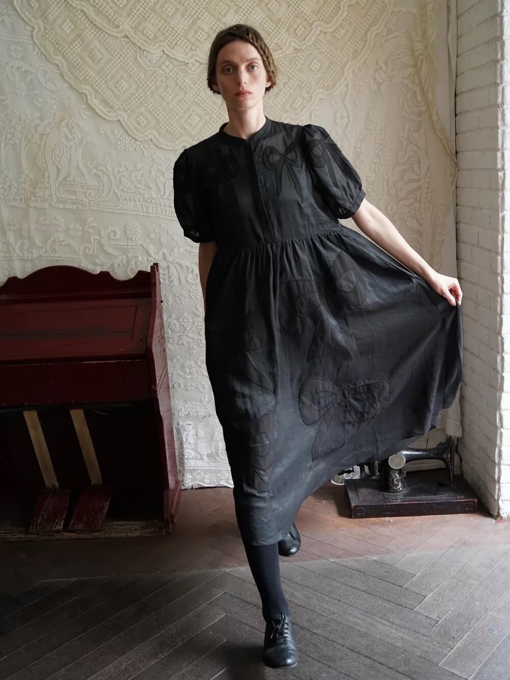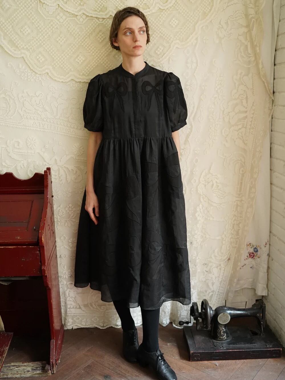黒 リボン ゆったり ワンピース ガーリー 水色 可愛い カジュアル ブラウス