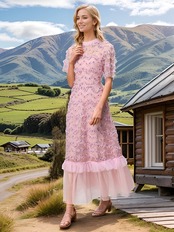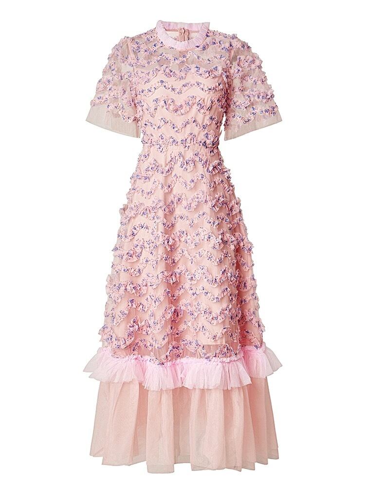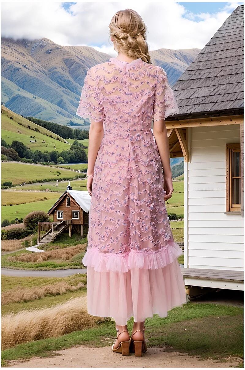 ピンク XL エレガント フラワー 花柄 ドレス ワンピース 花びら
